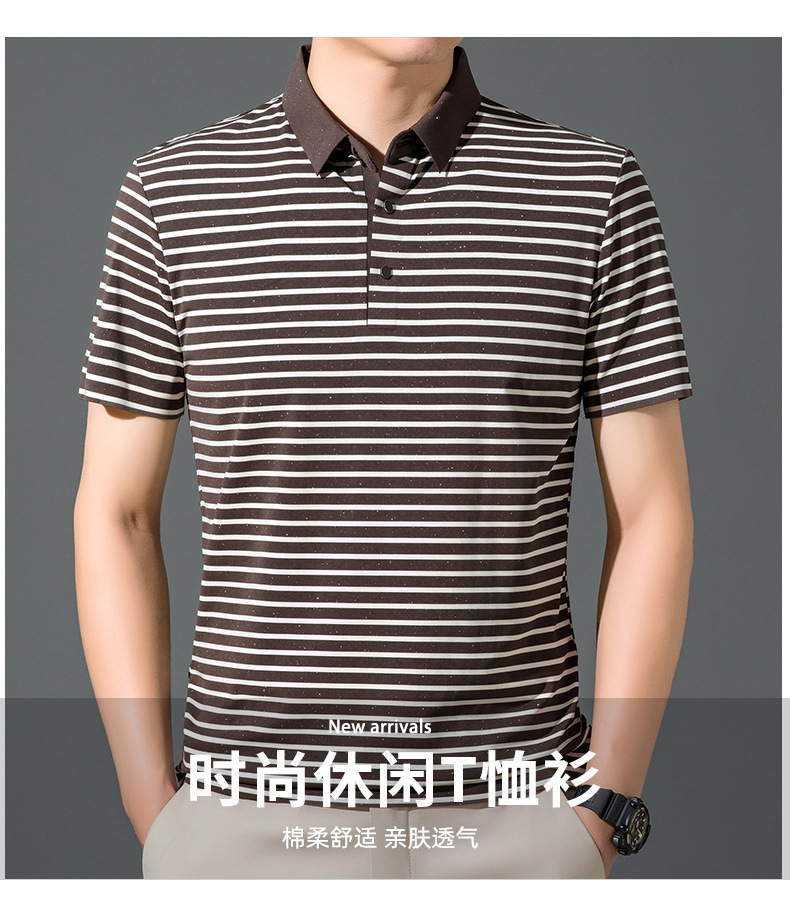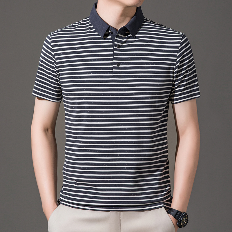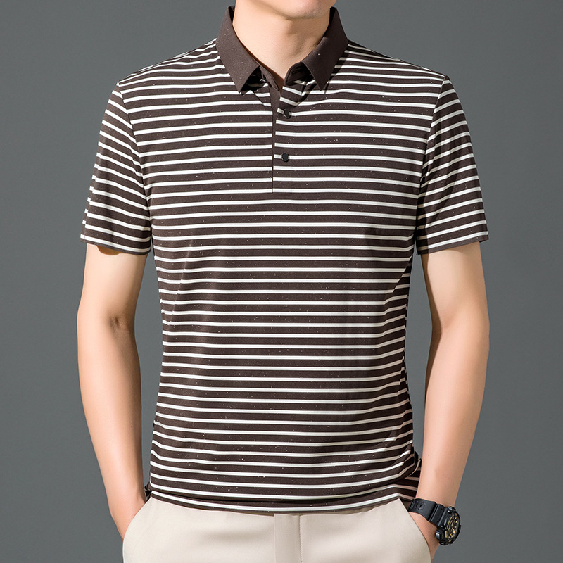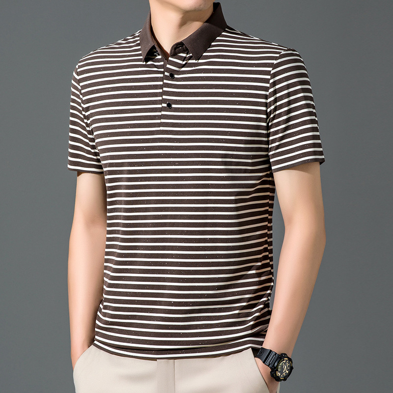 Áo thun cổ bẻ dành cho nam, kiểu dáng trẻ trung với họa tiết sọc nổi bật. Chất vải mềm mại, thoáng mát, thấm hút mồ hôi tốt, phù hợp cho những ngày hè oi bức. Sản phẩm mang phong cách năng động, dễ dàng phối cùng quần short hoặc quần jeans để tạo nên vẻ ngoài thoải mái. Có thể mặc khi đi chơi, đi làm hay tập thể thao nhẹ. Giặt với nước thường để giữ form áo và màu sắc bền đẹp. | Tên sản phẩm: Áo Thun Nam Ngắn Tay Kín Cổ Hàng Mùa Hè Phong Cách Trẻ Trung Phong Cách Hàn Quốc - Thời Trang Nam | Mã sản phẩm: B6623 - Giá: 800.000đ | Mã nhà sản xuất: JIDG-G02Hình ảnh sản phẩm