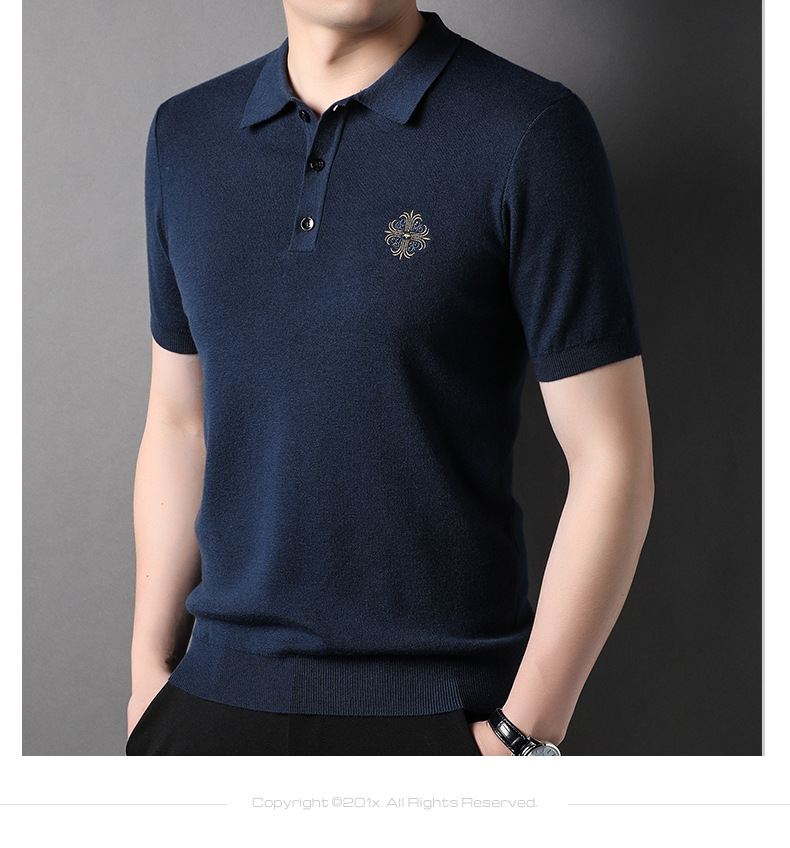 Áo thun ngắn tay dệt kim dành cho nam, thiết kế cổ bẻ lịch lãm phù hợp cho mùa hè. Chất vải mềm mại, có độ co giãn nhẹ và khả năng thấm hút mồ hôi tốt, mang lại cảm giác dễ chịu khi mặc. Kiểu dáng trẻ trung, năng động, dễ dàng phối hợp với quần shorts hoặc quần dài để tạo nên những bộ trang phục thoải mái hàng ngày. Sản phẩm thích hợp mặc đi làm, đi chơi hoặc dùng làm áo lớp bên trong. Giặt máy và giặt tay đều được. | Tên sản phẩm: Áo Thun Nam Áo Len Ngắn Tay Kín Cổ Hàng Mùa Hè Phong Cách Trẻ Trung - Thời Trang Nam | Mã sản phẩm: B6632 - Giá: 1.050.000đ | Mã nhà sản xuất: JIDG-G03Hình ảnh sản phẩm