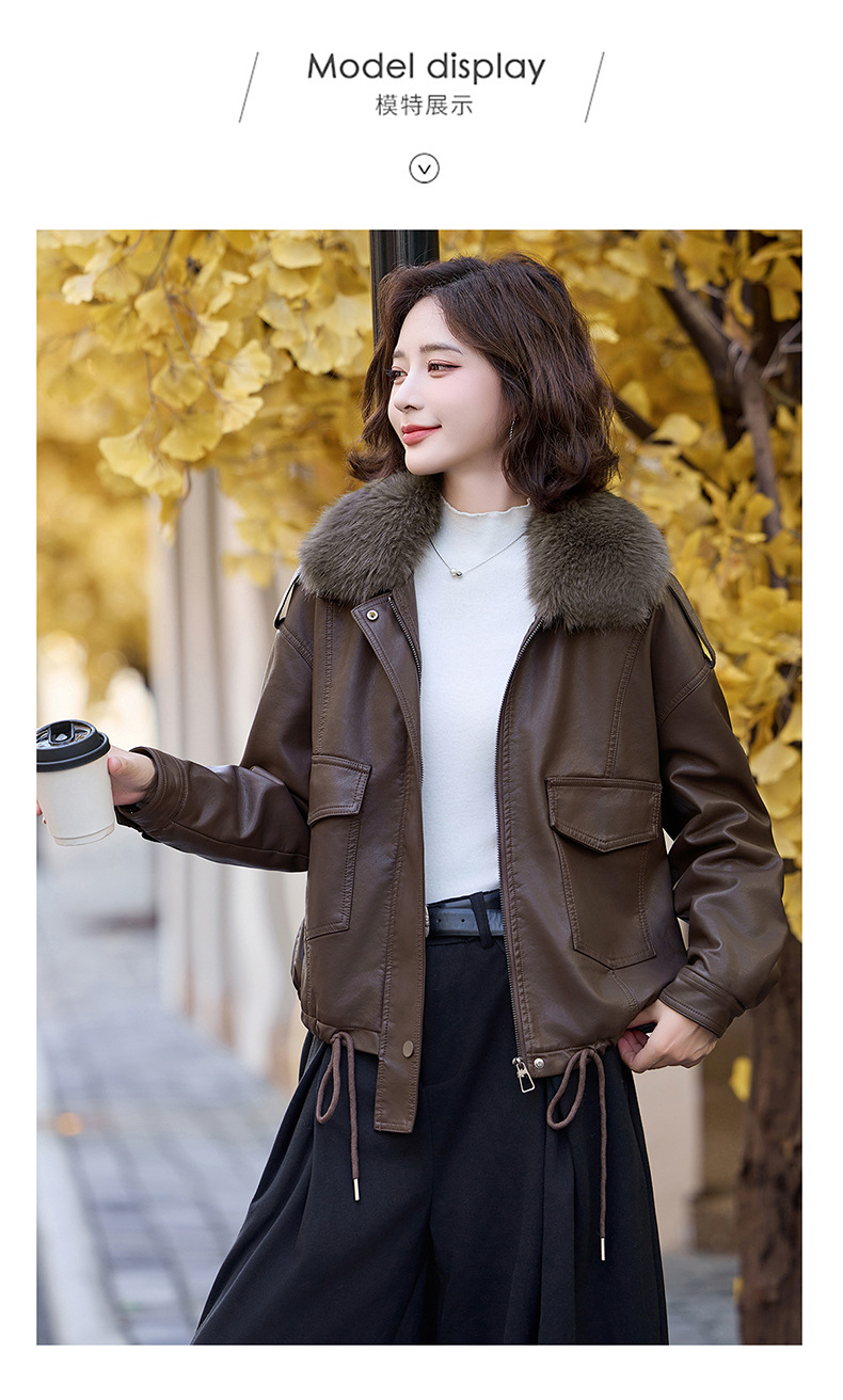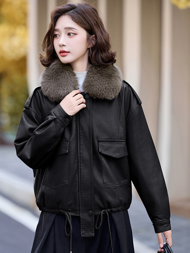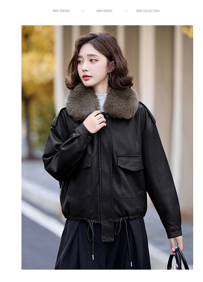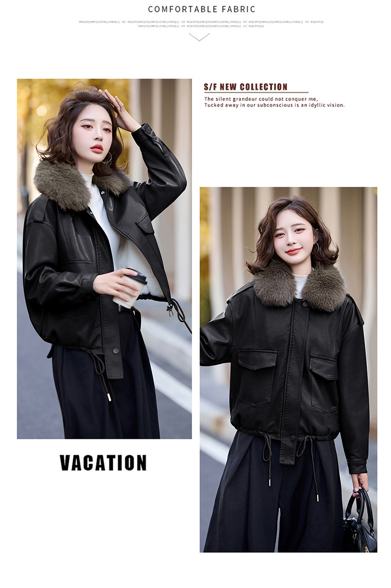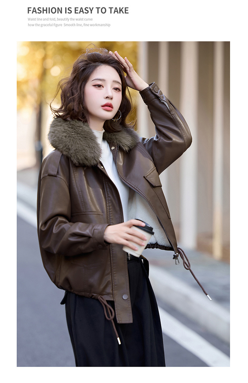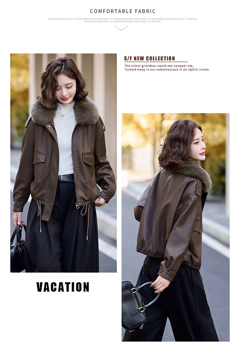 Áo khoác nữ dáng thời trang, có phần cổ lông xù lớn giữ ấm tốt. Chất liệu vải giả da bền đẹp, bên trong được lót lớp lông mềm mại cùng thiết kế dày dặn, phù hợp mặc trong tiết trời thu đông. Kiểu dáng kết hợp giữa phong cách năng động và nhẹ nhàng. Sản phẩm mặc kèm áo thun hoặc áo len bên trong, dùng cho các hoạt động hằng ngày hay khi ra ngoài. | Tên sản phẩm: Áo Da Nữ Dày Ấm Hàng Mùa Xuân Thu Đông - Thời Trang Nữ | Mã sản phẩm: B6657 - Giá: 1.900.000đ | Mã nhà sản xuất: HADG-G05Hình ảnh sản phẩm