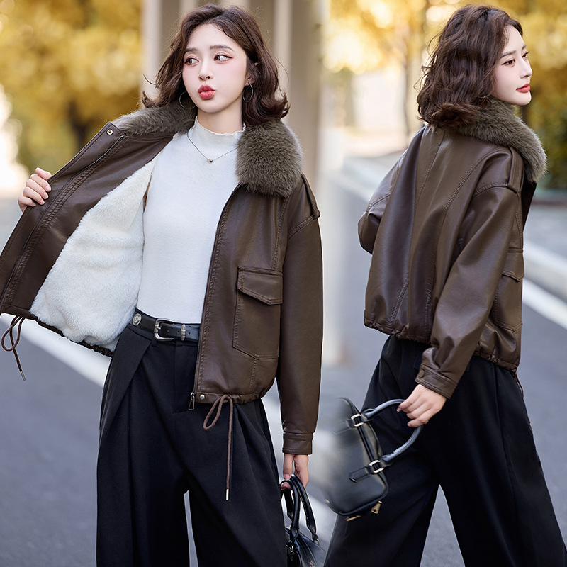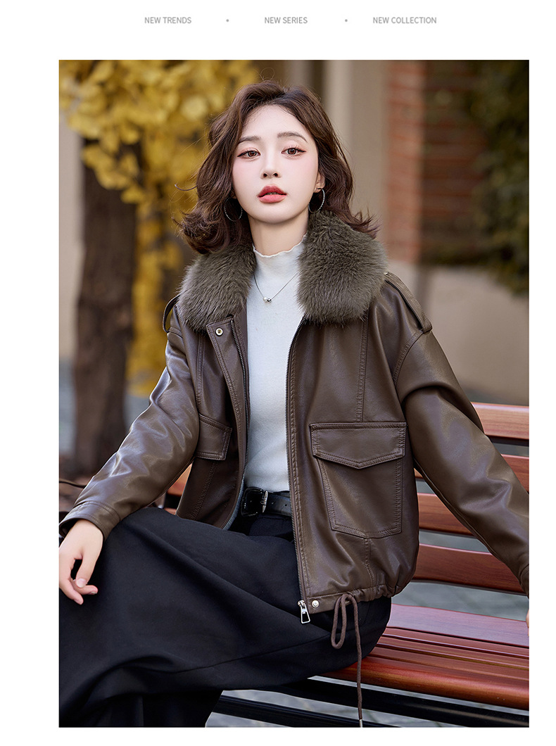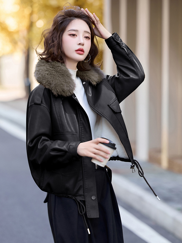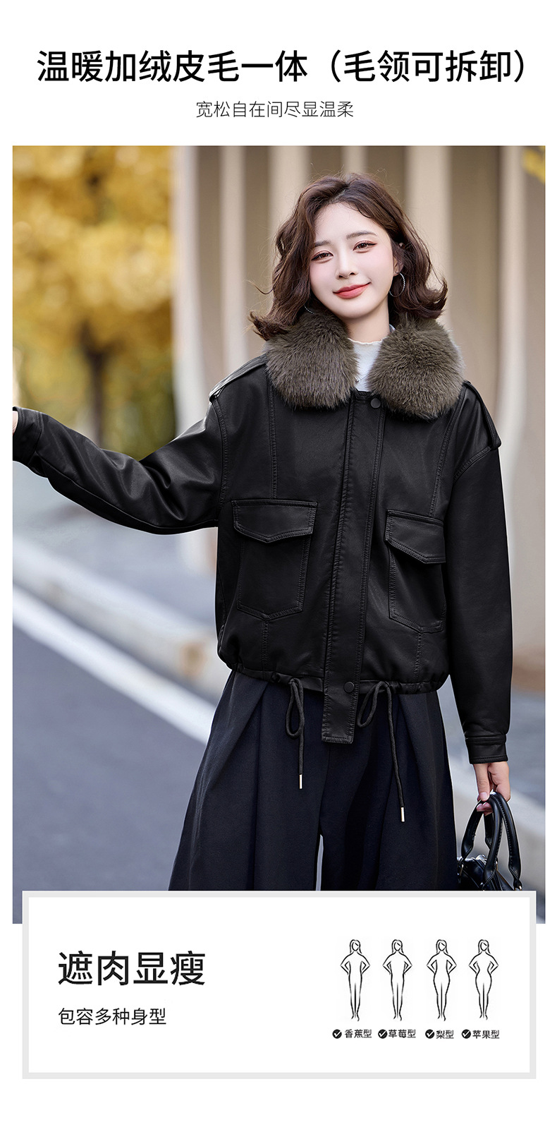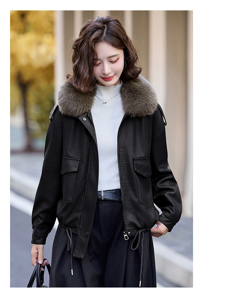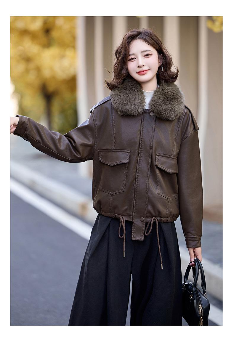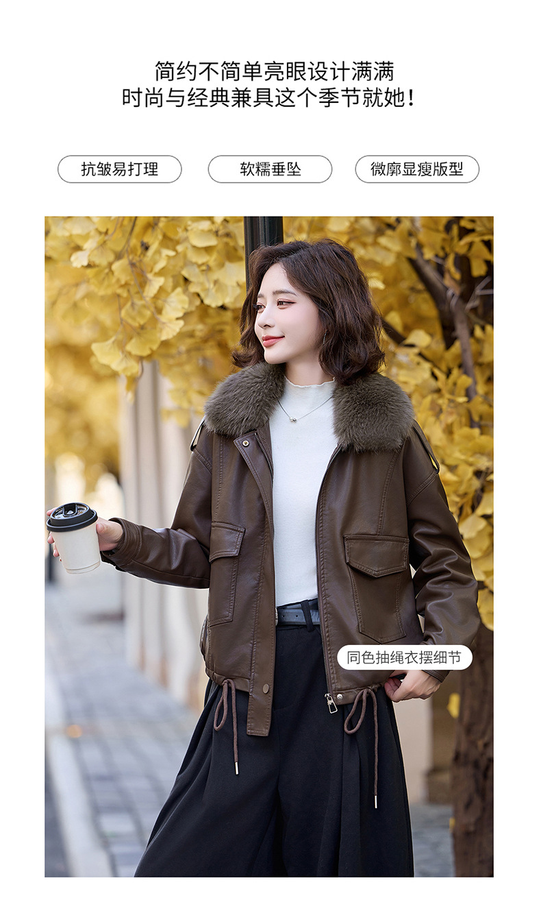 Áo khoác nữ dáng thời trang, có phần cổ lông xù lớn giữ ấm tốt. Chất liệu vải giả da bền đẹp, bên trong được lót lớp lông mềm mại cùng thiết kế dày dặn, phù hợp mặc trong tiết trời thu đông. Kiểu dáng kết hợp giữa phong cách năng động và nhẹ nhàng. Sản phẩm mặc kèm áo thun hoặc áo len bên trong, dùng cho các hoạt động hằng ngày hay khi ra ngoài. | Tên sản phẩm: Áo Da Nữ Dày Ấm Hàng Mùa Xuân Thu Đông - Thời Trang Nữ | Mã sản phẩm: B6657 - Giá: 1.900.000đ | Mã nhà sản xuất: HADG-G05Hình ảnh sản phẩm