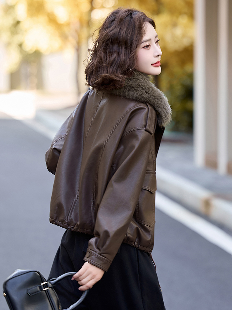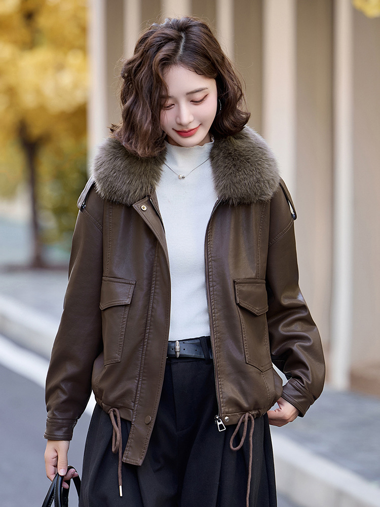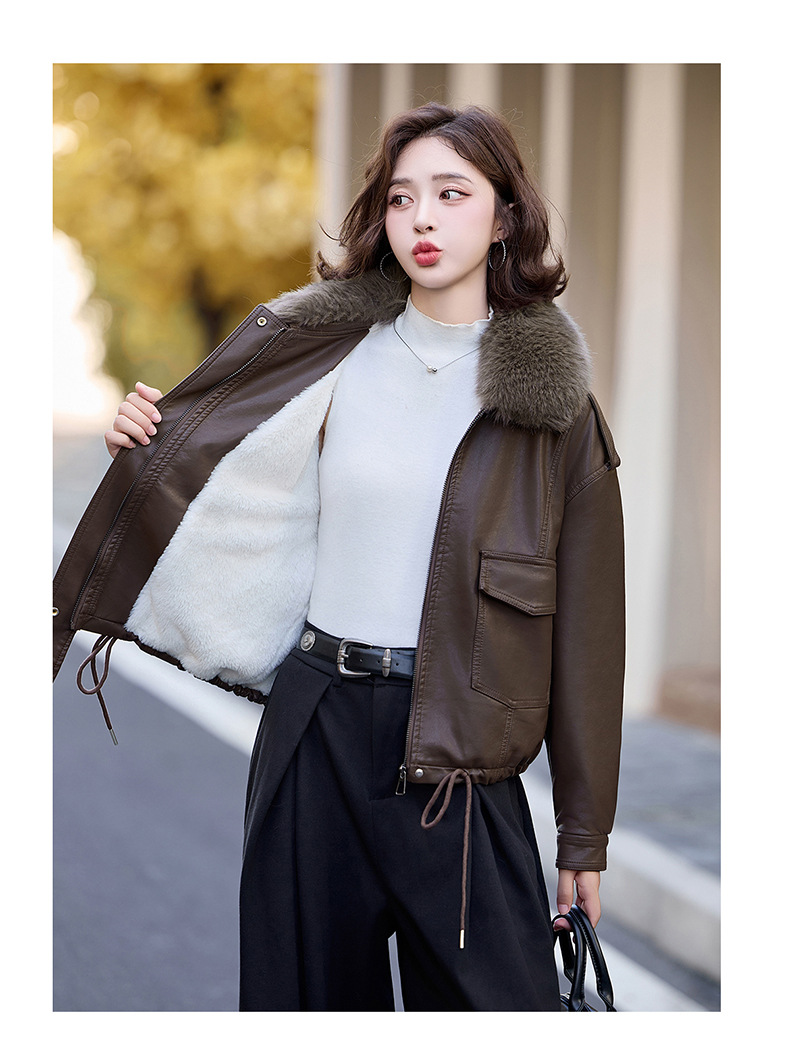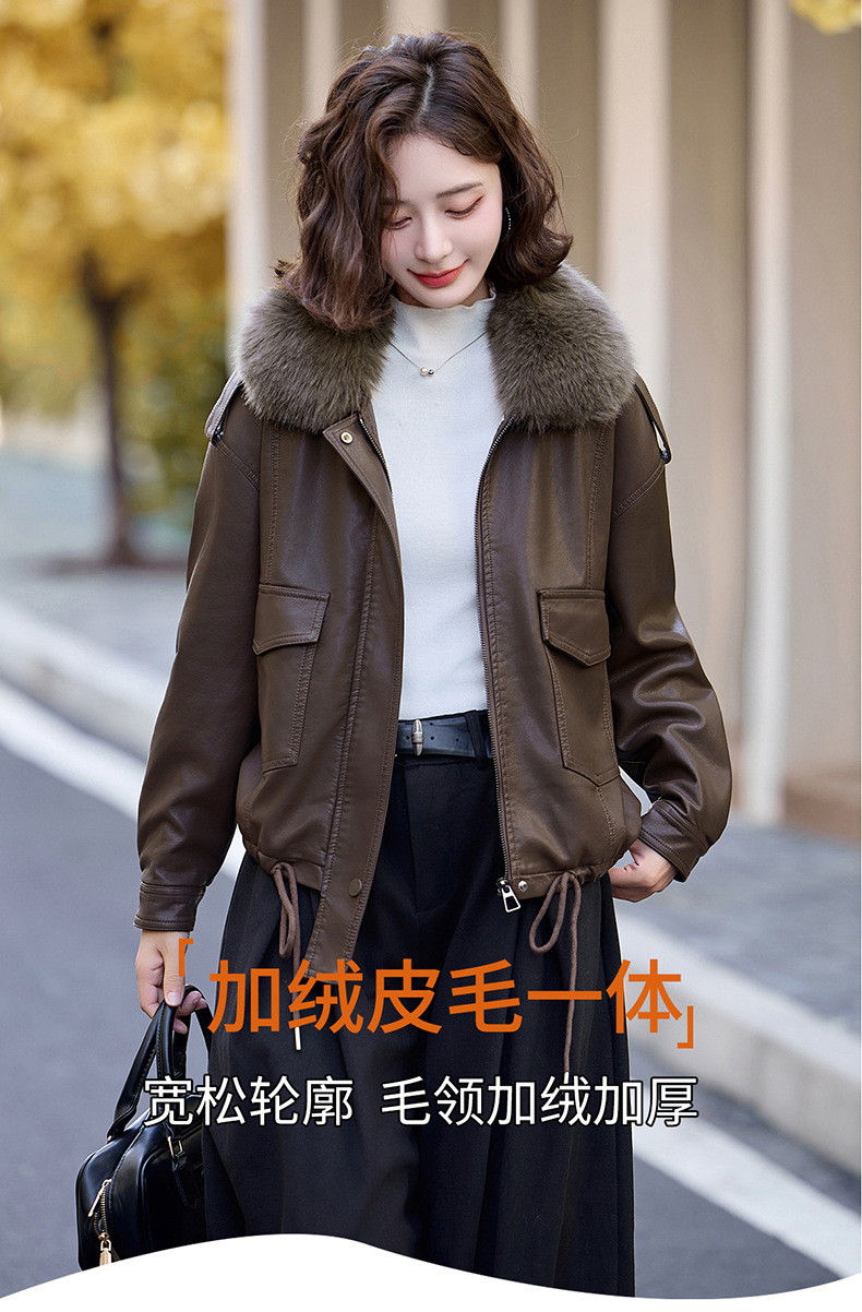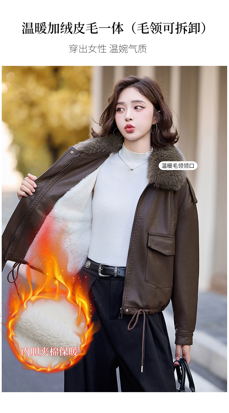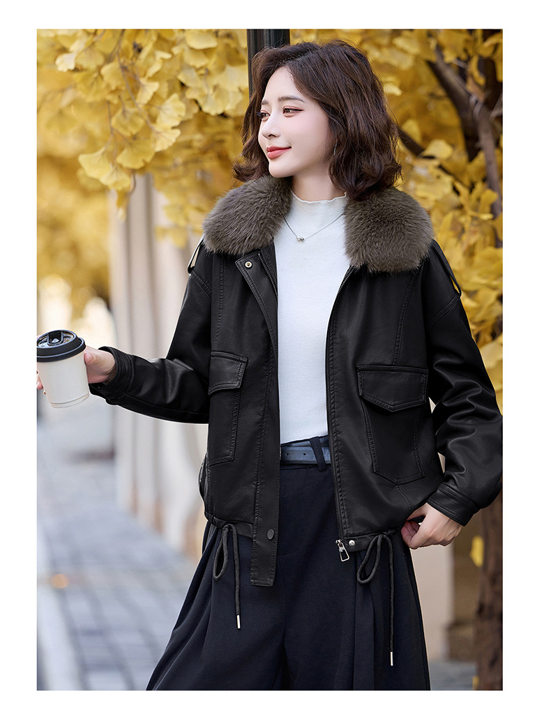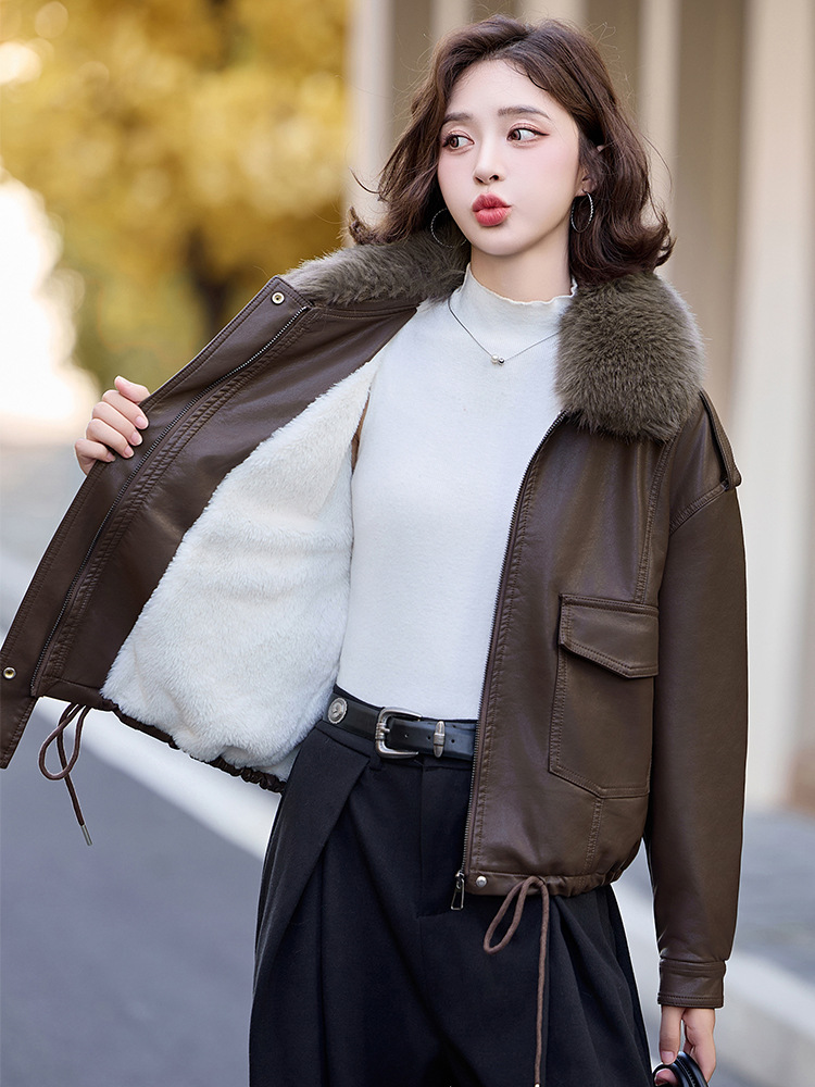 Áo khoác nữ dáng thời trang, có phần cổ lông xù lớn giữ ấm tốt. Chất liệu vải giả da bền đẹp, bên trong được lót lớp lông mềm mại cùng thiết kế dày dặn, phù hợp mặc trong tiết trời thu đông. Kiểu dáng kết hợp giữa phong cách năng động và nhẹ nhàng. Sản phẩm mặc kèm áo thun hoặc áo len bên trong, dùng cho các hoạt động hằng ngày hay khi ra ngoài. | Tên sản phẩm: Áo Da Nữ Dày Ấm Hàng Mùa Xuân Thu Đông - Thời Trang Nữ | Mã sản phẩm: B6657 - Giá: 1.900.000đ | Mã nhà sản xuất: HADG-G05Hình ảnh sản phẩm