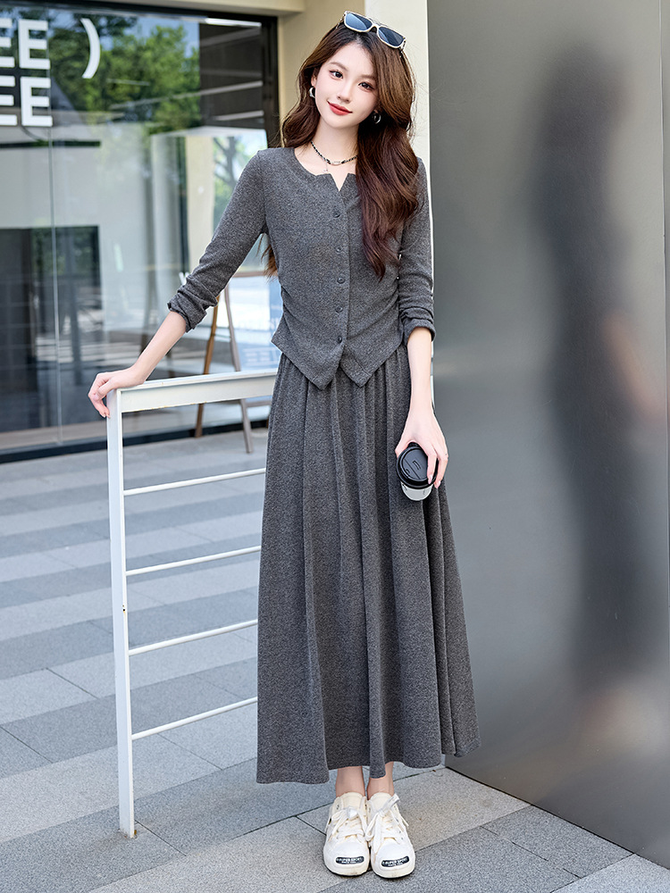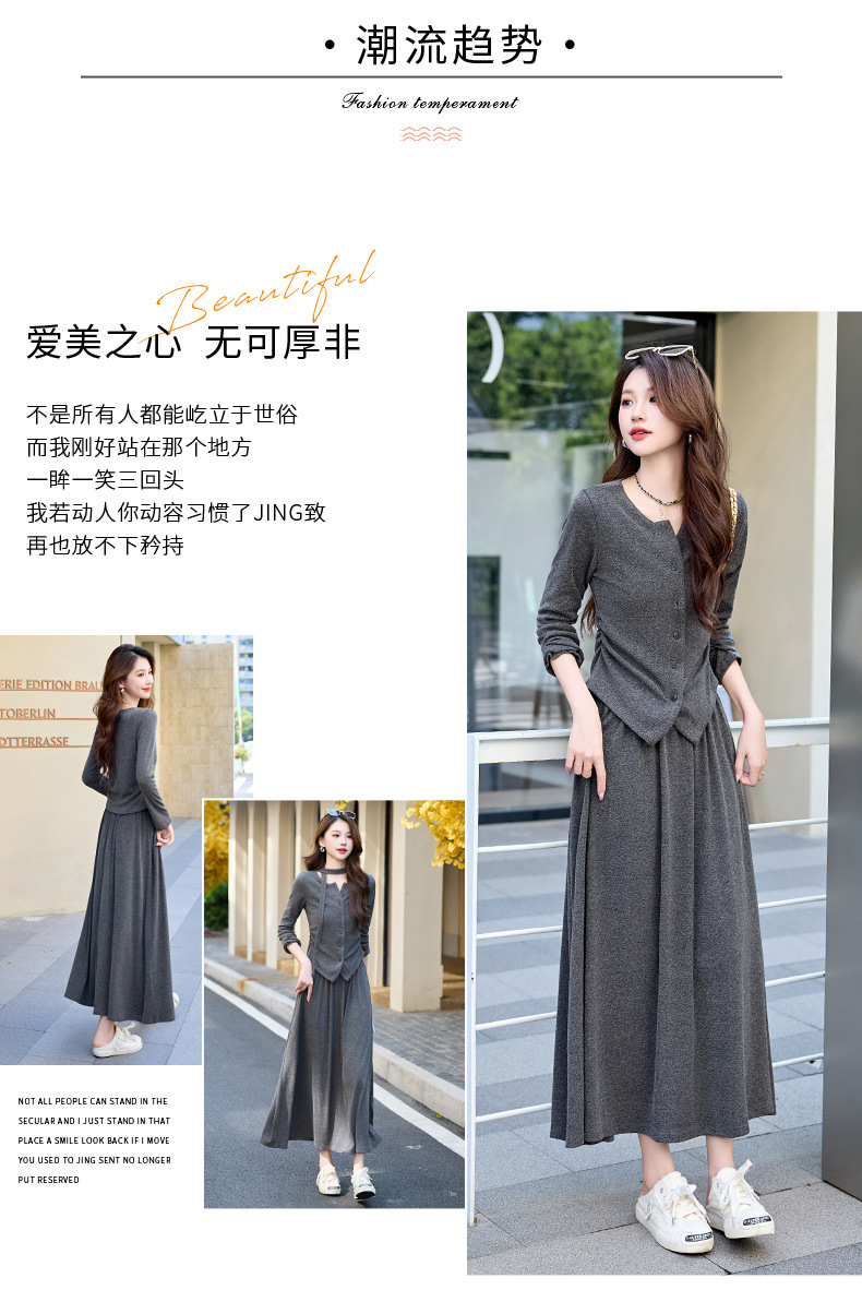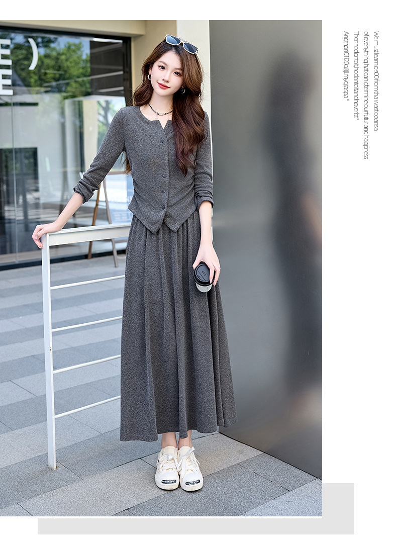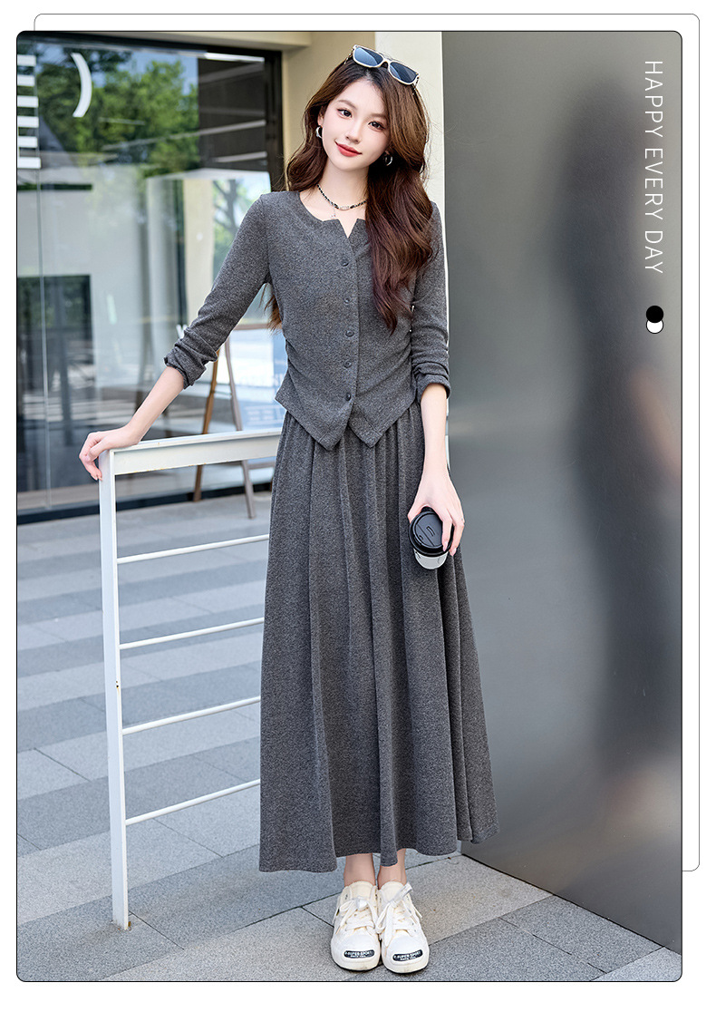 Bộ trang phục hai mảnh này gồm áo khoác dài tay và chân váy, mang phong cách nhẹ nhàng, thoải mái. Áo có thể mặc khoác ngoài, phối cùng chân váy có phần thun co giãn ở eo, tạo cảm giác dễ chịu và dễ vận động. Kiểu dáng đơn giản, dễ phối đồ với nhiều dịp khác nhau. Bạn có thể mặc nguyên bộ hoặc tách riêng từng món để phối với các trang phục khác, rất tiện lợi và linh hoạt. | Tên sản phẩm: Áo Khoác Nữ Dài Tay Cả Bộ 2 Món Hàng Mùa Xuân Thu Đông - Thời Trang Nữ | Mã sản phẩm: B6694 - Giá: 1.530.000đ | Mã nhà sản xuất: HADG-G04Hình ảnh sản phẩm