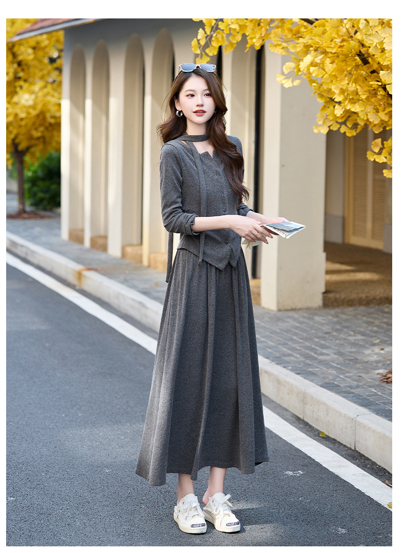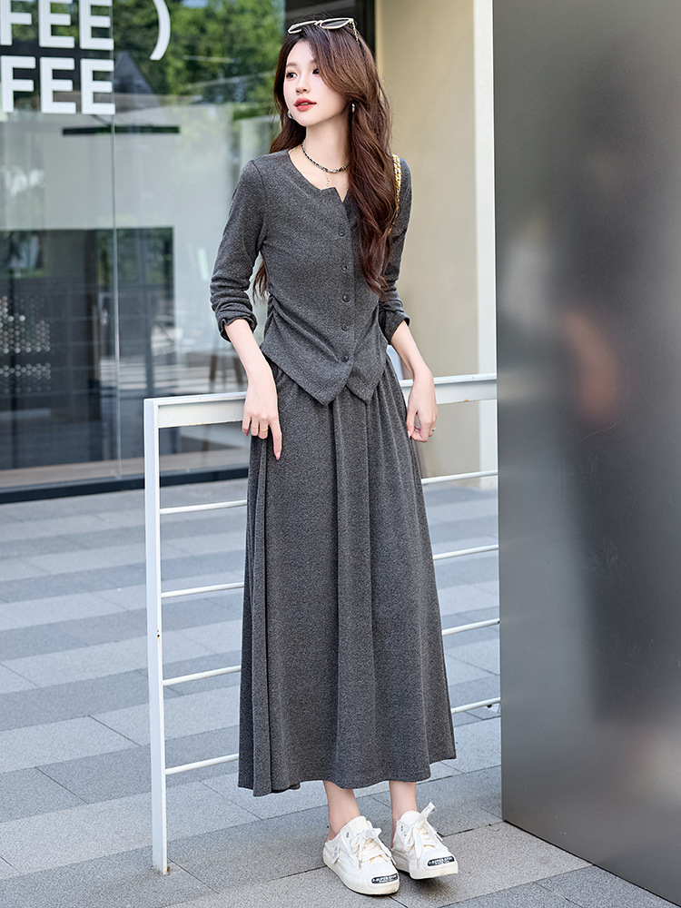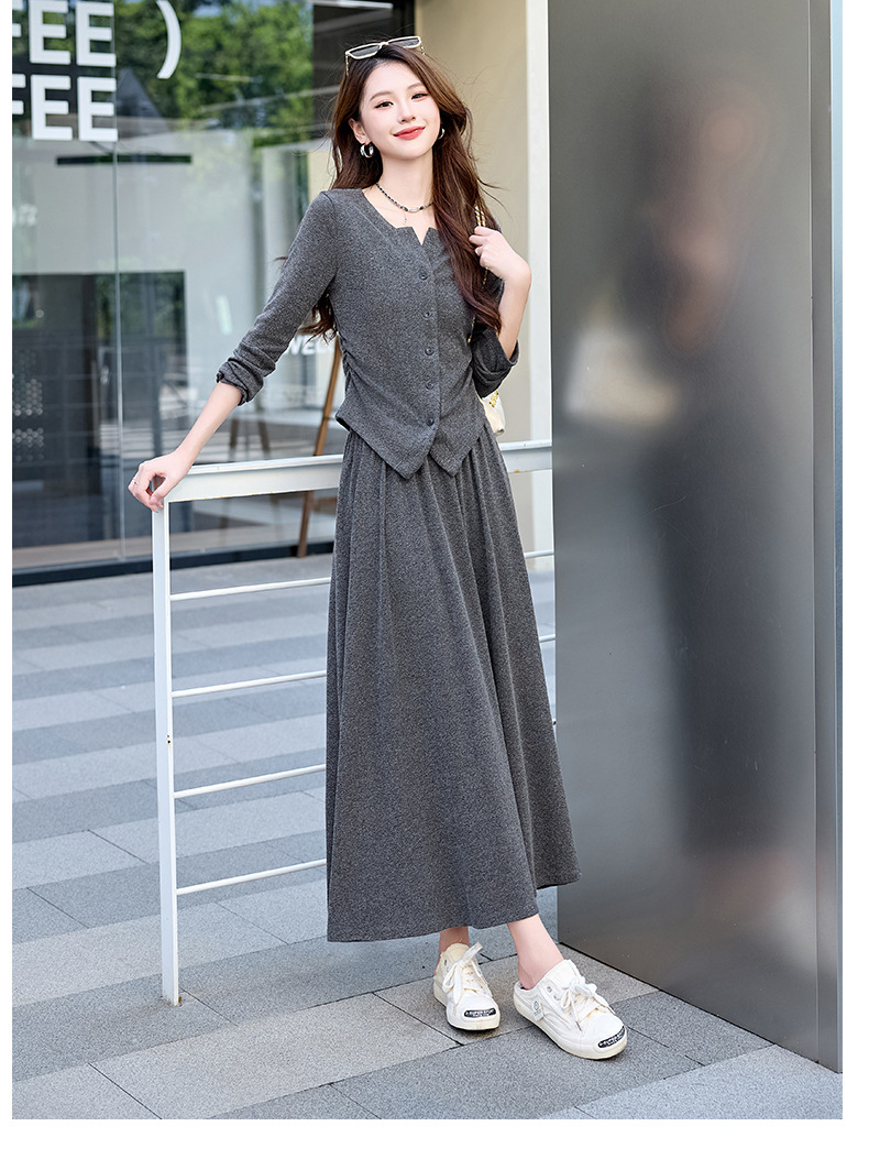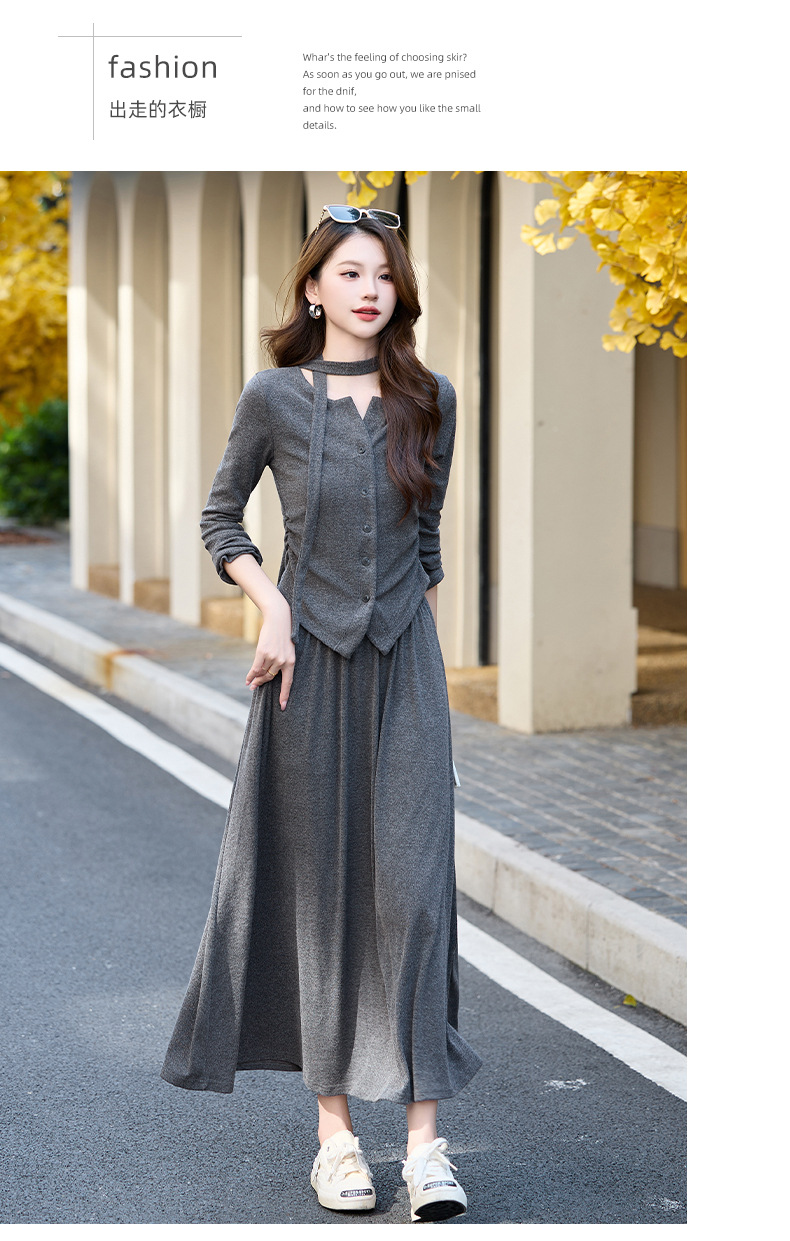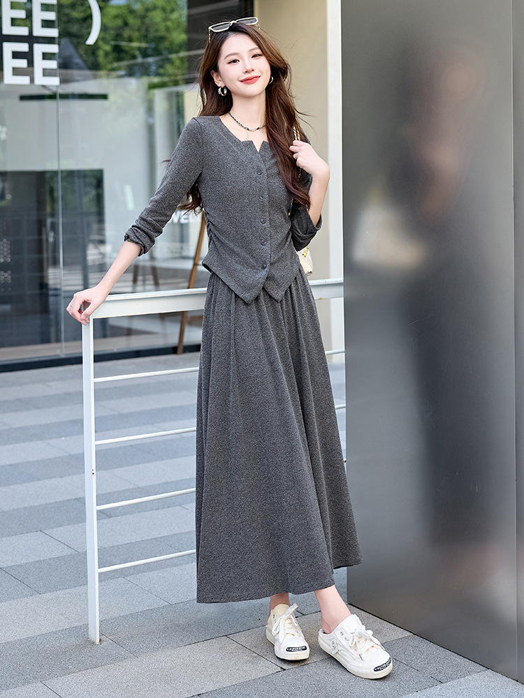 Bộ trang phục hai mảnh này gồm áo khoác dài tay và chân váy, mang phong cách nhẹ nhàng, thoải mái. Áo có thể mặc khoác ngoài, phối cùng chân váy có phần thun co giãn ở eo, tạo cảm giác dễ chịu và dễ vận động. Kiểu dáng đơn giản, dễ phối đồ với nhiều dịp khác nhau. Bạn có thể mặc nguyên bộ hoặc tách riêng từng món để phối với các trang phục khác, rất tiện lợi và linh hoạt. | Tên sản phẩm: Áo Khoác Nữ Dài Tay Cả Bộ 2 Món Hàng Mùa Xuân Thu Đông - Thời Trang Nữ | Mã sản phẩm: B6694 - Giá: 1.530.000đ | Mã nhà sản xuất: HADG-G04Hình ảnh sản phẩm