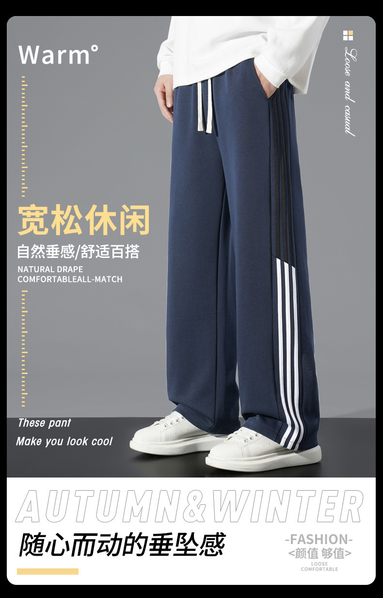Chiếc quần dành cho nam giới này mang đến sự thoải mái tối đa. Kiểu dáng rộng rãi ở phần ống, kết hợp cùng chất liệu co giãn mềm mại, phù hợp cho nhiều hoạt động thường ngày. Các đường sọc dọc tạo điểm nhấn năng động. Bạn có thể dễ dàng phối cùng áo thun hoặc áo nỉ để tạo nên vẻ ngoài cá tính. Sản phẩm thích hợp cho các dịp đi chơi, tập luyện nhẹ nhàng hoặc đơn giản là thư giãn tại nhà. | Tên sản phẩm: Quần Nam Hàng Mùa Xuân Thu Đông - Thời Trang Nam | Mã sản phẩm: B6754 - Giá: 730.000đ | Mã nhà sản xuất: QUDL-G02Hình ảnh sản phẩm