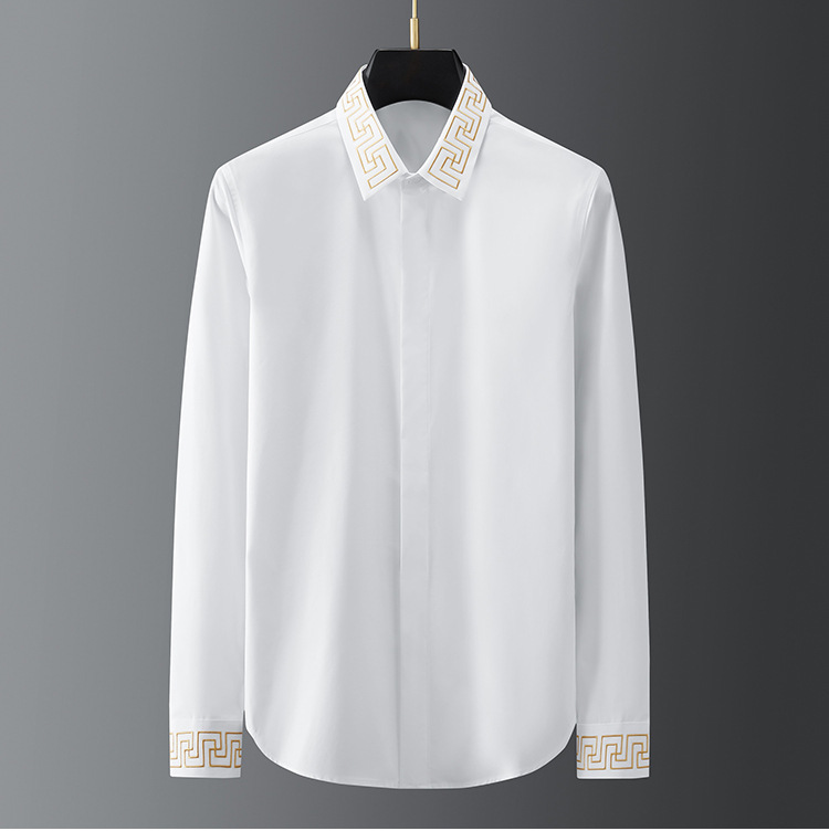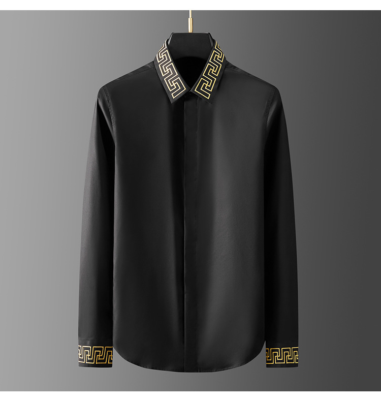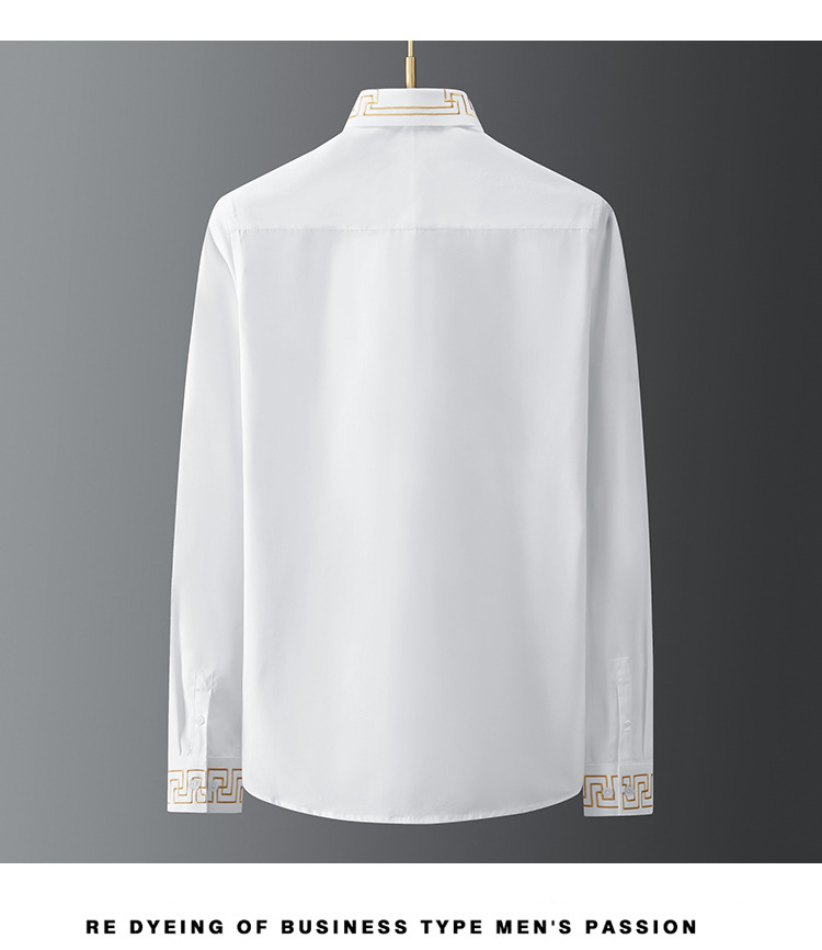 Áo sơ mi dáng ôm dành cho nam, với hai màu đen trắng cơ bản dễ phối đồ. Điểm nhấn nổi bật là họa tiết thêu chỉ ánh vàng tinh xảo ở phần cổ và tay áo, tạo nên phong cách cá tính và hiện đại. Chất liệu vải mềm mại, thoáng mát mang lại sự thoải mái khi mặc cả ngày. Sản phẩm phù hợp cho các dịp đi chơi, gặp gỡ bạn bè hay dạo phố. Có thể giặt máy và ủi như bình thường. | Tên sản phẩm: Áo Sơ Mi Nam Dáng Ôm Thêu Họa Tiết Hoa Phong Cách Âu Mỹ - Thời Trang Nam | Mã sản phẩm: B6793 - Giá: 1.380.000đ | Mã nhà sản xuất: FODAR-G04Hình ảnh sản phẩm