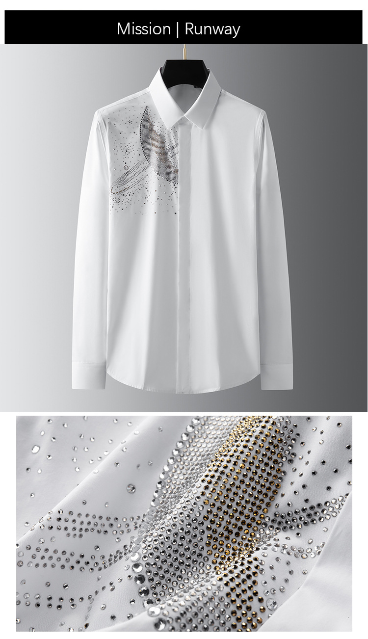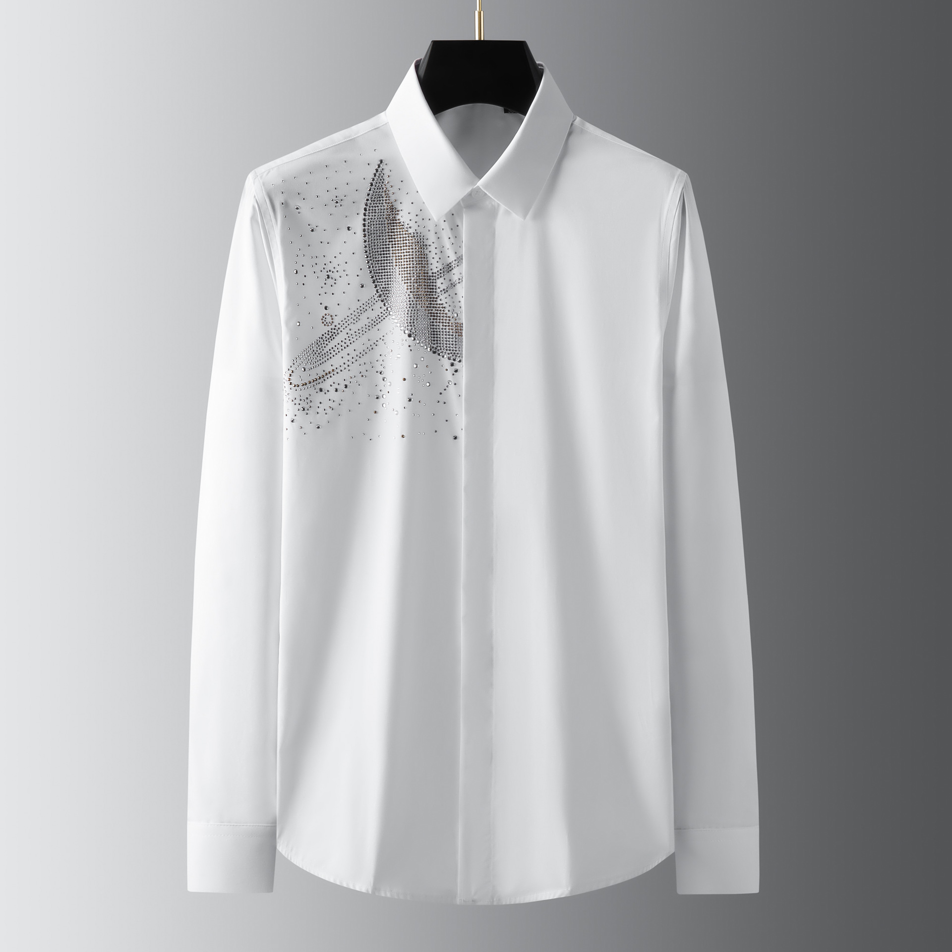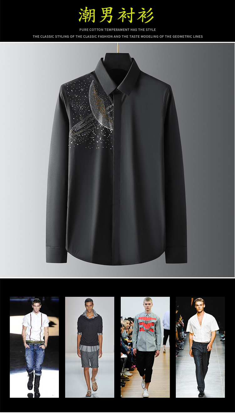 Áo nam dáng ôm tay dài, điểm nhấn là những hạt đính lấp lánh như những vì sao trên nền vải. Sản phẩm có kiểu dáng trẻ trung, phù hợp mặc trong nhiều hoàn cảnh. Bạn có thể mặc làm áo bên trong, phối cùng áo khoác hoặc mặc trực tiếp. Chất vải co giãn nhẹ mang lại sự thoải mái cho người dùng. | Tên sản phẩm: Áo Sơ Mi Nam Dáng Ôm - Thời Trang Nam | Mã sản phẩm: B6794 - Giá: 2.000.000đ | Mã nhà sản xuất: FODAR-G05Hình ảnh sản phẩm