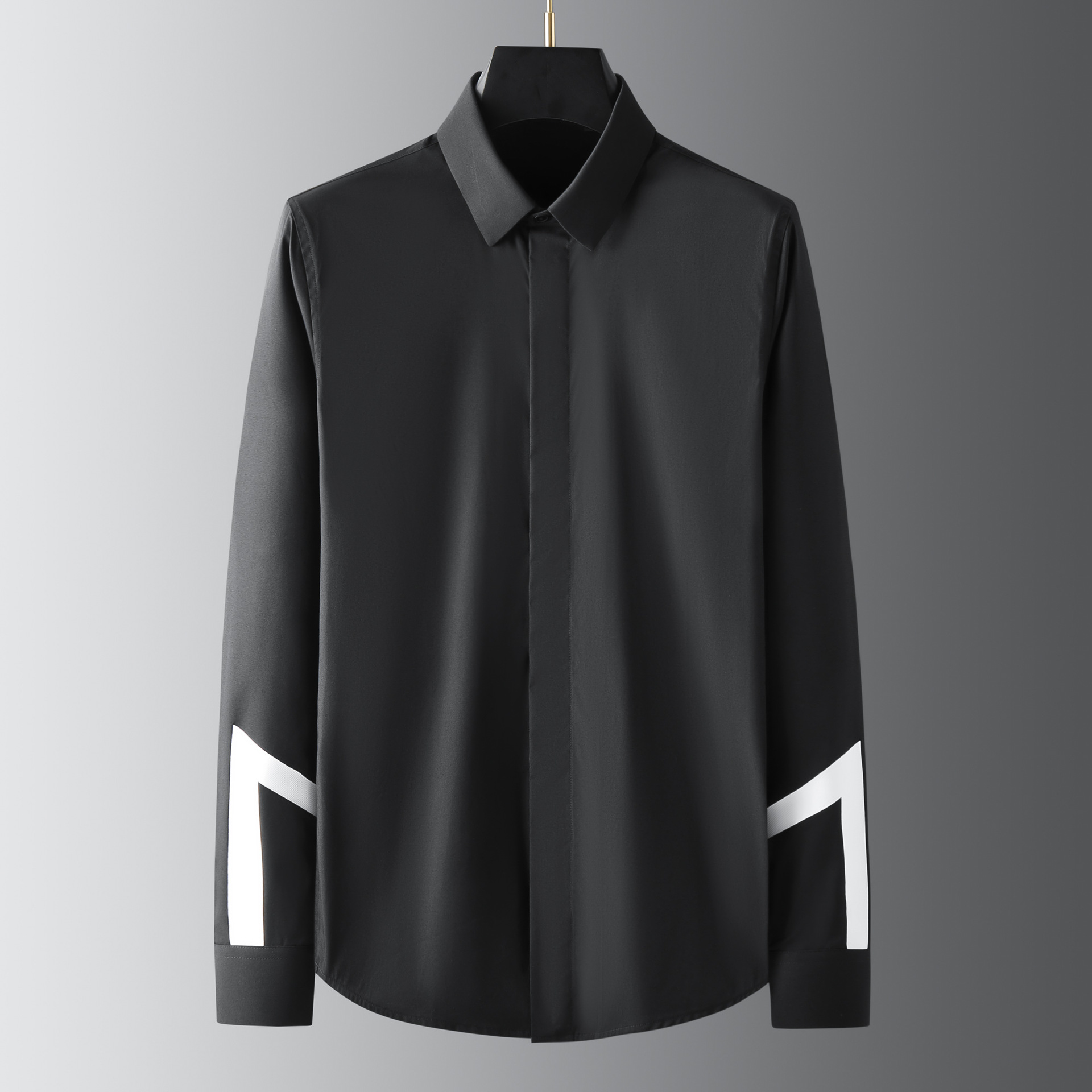 Áo sơ mi dài tay này có đường cắt ôm vừa vặn, tạo dáng thanh lịch và thoải mái. Chất liệu vải mềm mại, trên áo có các đường ép keo nổi hình học cùng chữ khắc tinh tế, mang phong cách trẻ trung và năng động. Sản phẩm phù hợp cho nhiều dịp mặc thường ngày. Khi giặt, nên giặt bằng tay và phơi trong bóng mát để giữ form áo và các chi tiết được bền đẹp. | Tên sản phẩm: Áo Sơ Mi Nam Dáng Ôm Phong Cách Âu Mỹ - Thời Trang Nam | Mã sản phẩm: B6805 - Giá: 1.420.000đ | Mã nhà sản xuất: FODAR-G04Hình ảnh sản phẩm