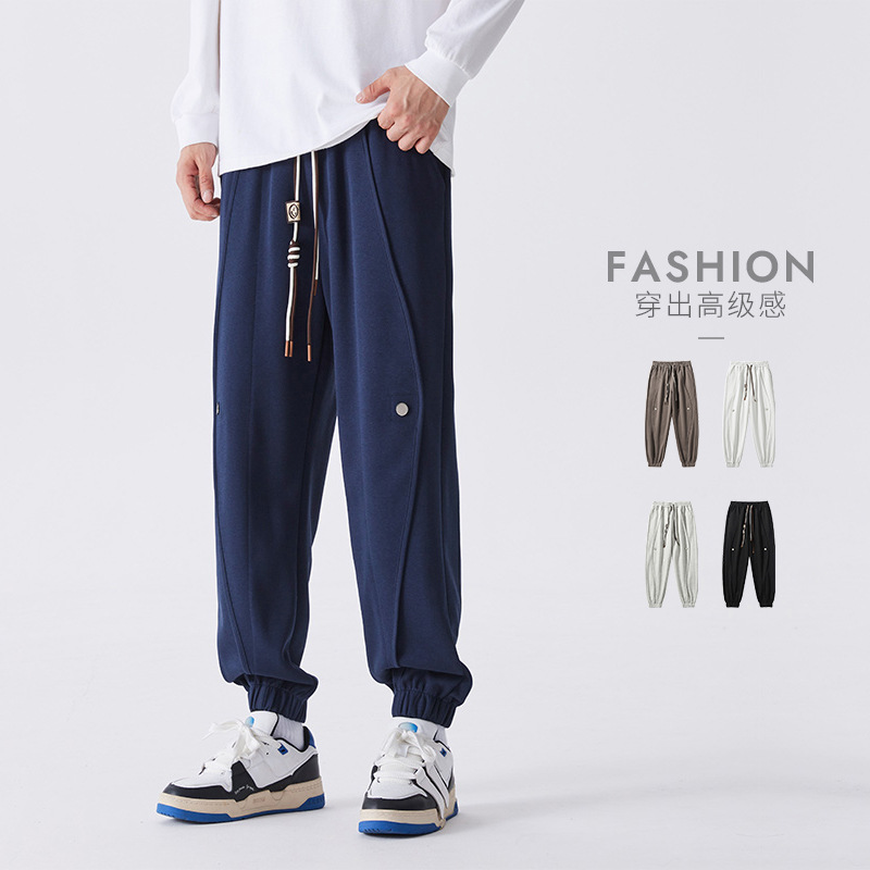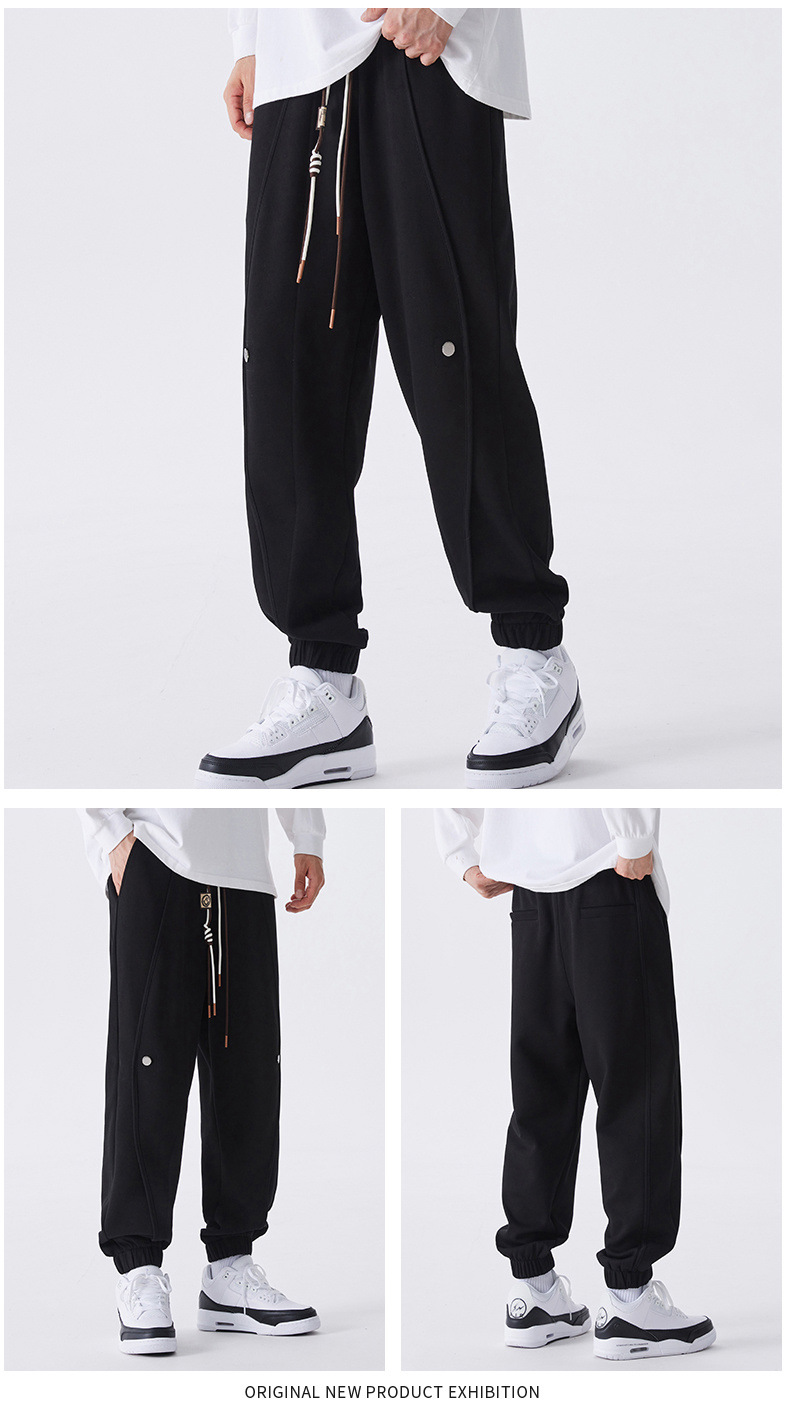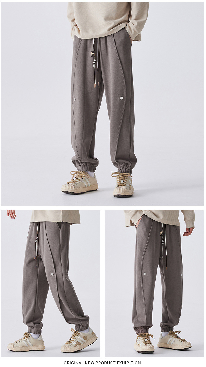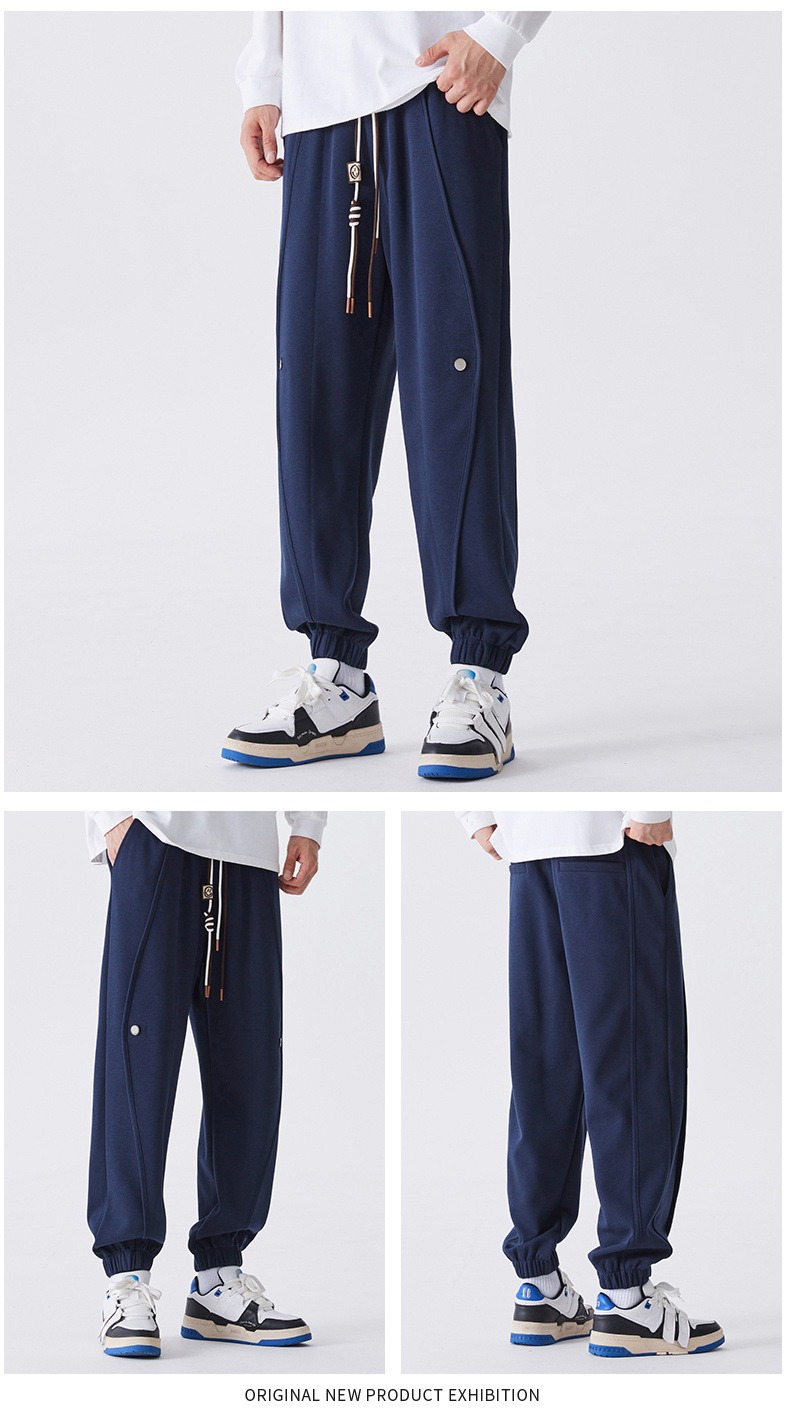Chiếc quần thể thao mới cho mùa thu, thiết kế kiểu ống bó gấu và form rộng thoải mái. Chất vải co giãn nhẹ, thấm hút mồ hôi tốt, phù hợp cho các hoạt động như chạy bộ, tập luyện hay mặc hằng ngày. Sản phẩm có kiểu dáng năng động, dễ phối đồ và được thiết kế dành cho cả nam và nữ. Bạn có thể mặc kèm với áo thun và giày thể thao cho những lúc vận động hoặc đi chơi. | Tên sản phẩm: Quần Nam Đồ Đôi Hàng Mùa Xuân Thu Đông - Thời Trang Nam | Mã sản phẩm: B6814 - Giá: 880.000đ | Mã nhà sản xuất: QUDL-G03Hình ảnh sản phẩm