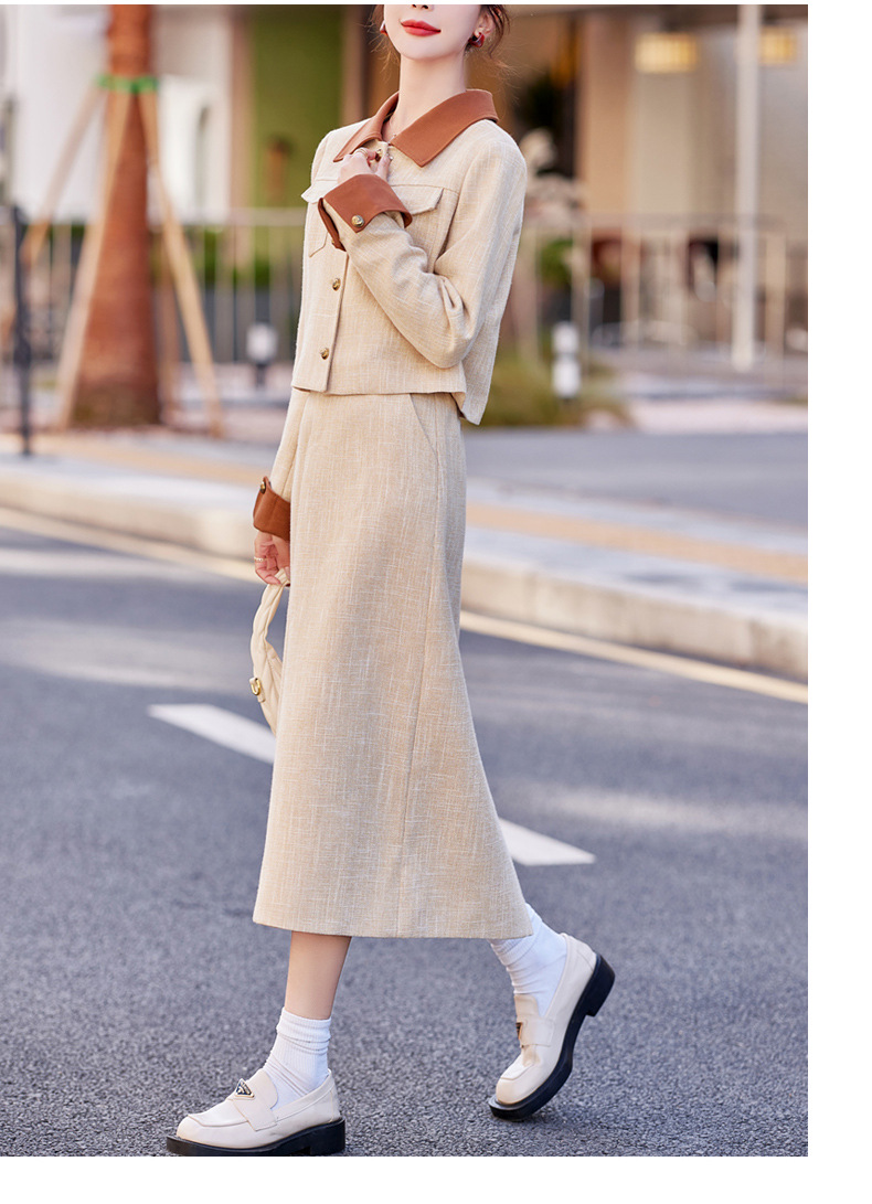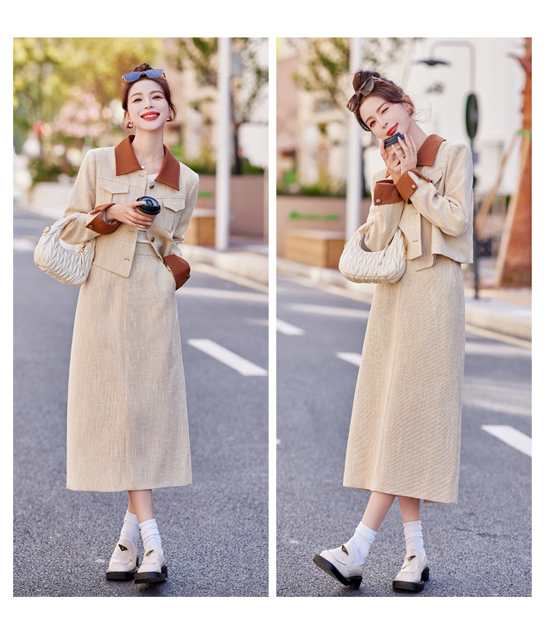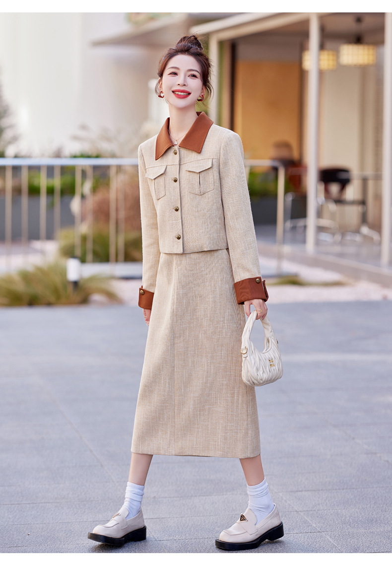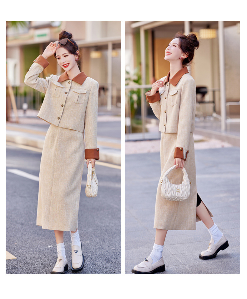Bộ trang phục hai mảnh này gồm áo khoác mỏng và đầm dài, phù hợp cho thời tiết mùa xuân và mùa thu. Thiết kế ôn nhẹ vào form người, tạo nên vẻ thanh lịch và nhẹ nhàng. Bạn có thể mặc nguyên bộ để tạo sự chỉn chu, hoặc tách riêng từng món để kết hợp với các trang phục khác. Kiểu dáng đơn giản, dễ dàng phối đồ cho nhiều dịp sinh hoạt hằng ngày. | Tên sản phẩm: Áo Khoác Nữ Dáng Ôm Cả Bộ 2 Món Hàng Mùa Xuân Thu Đông Phong Cách Hàn Quốc - Thời Trang Nữ | Mã sản phẩm: B6826 - Giá: 1.700.000đ | Mã nhà sản xuất: HADG-G05Hình ảnh sản phẩm