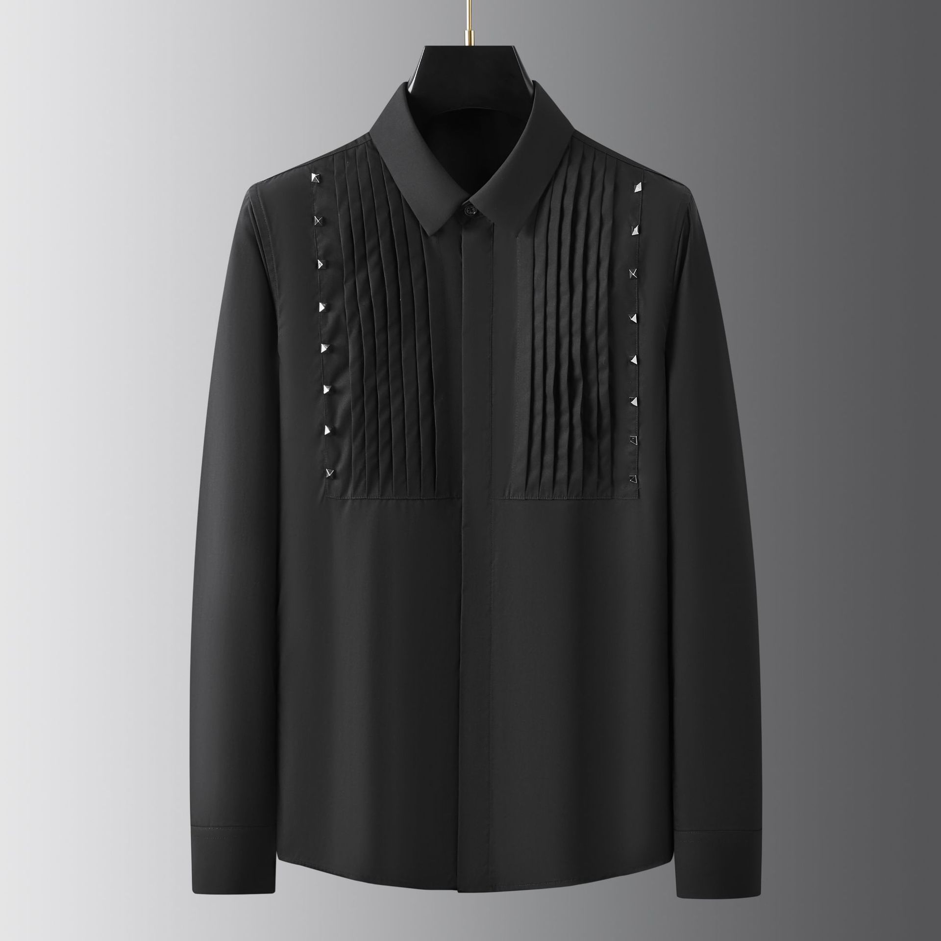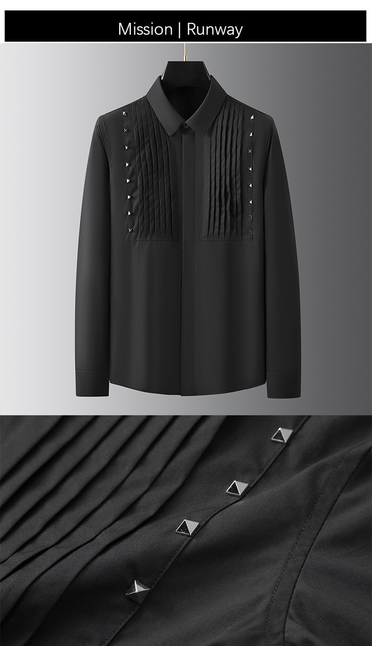 Áo sơ mi nam tay dài này có kiểu dáng ôm vừa vặn, tôn dáng người mặc. Điểm nhấn đặc biệt là hàng trang trí bằng đinh tán xếp nếp được làm thủ công tinh tế dọc thân áo. Mẫu mã dễ phối đồ, phù hợp cho nhiều dịp khác nhau. Chất vải mềm mại, thoáng mát giúp người mặc cảm thấy dễ chịu. Sản phẩm được cung cấp trực tiếp từ xưởng sản xuất, bảo đảm chất lượng tốt. | Tên sản phẩm: Áo Sơ Mi Nam Dáng Ôm - Thời Trang Nam | Mã sản phẩm: B6858 - Giá: 1.380.000đ | Mã nhà sản xuất: FODAR-G04Hình ảnh sản phẩm