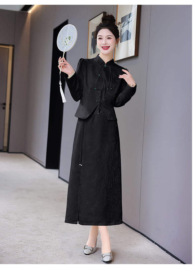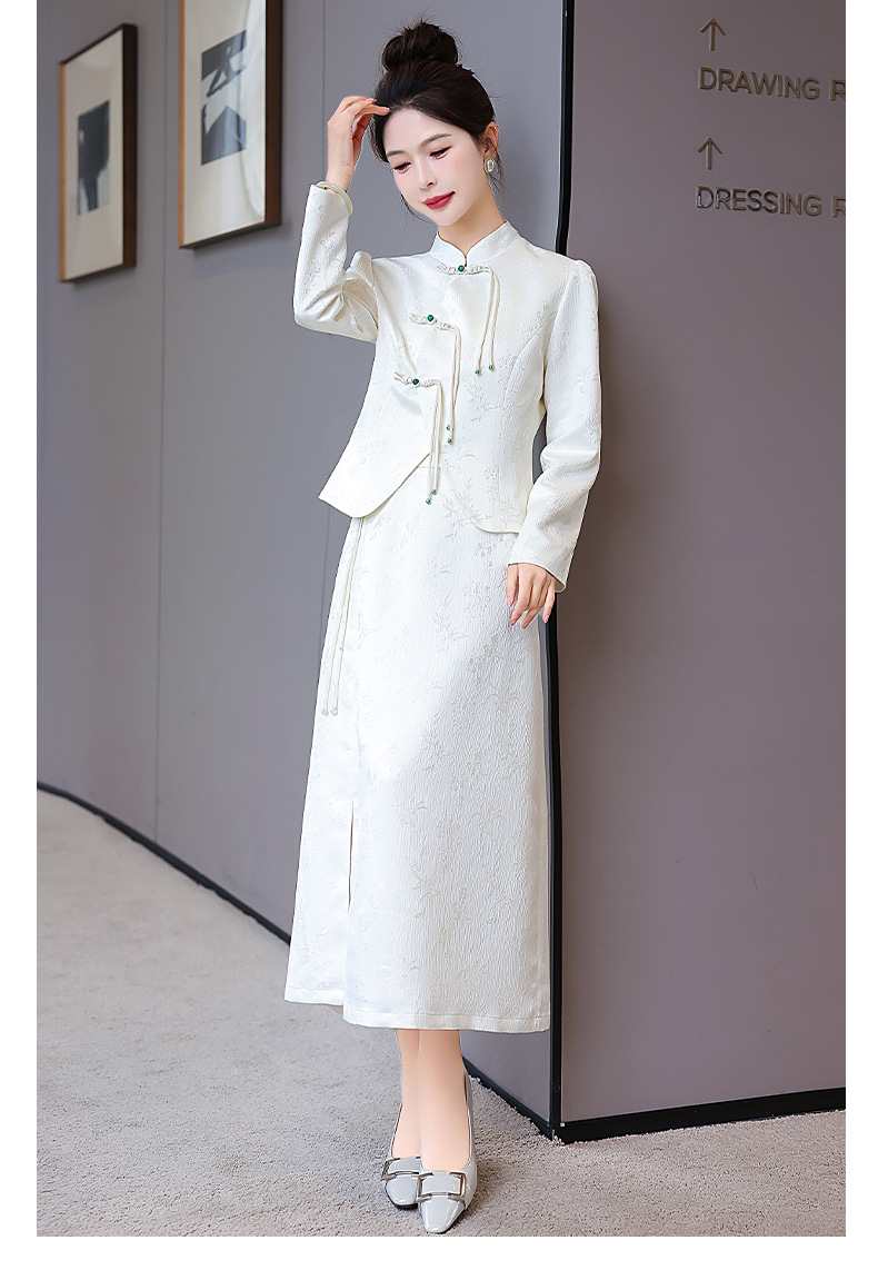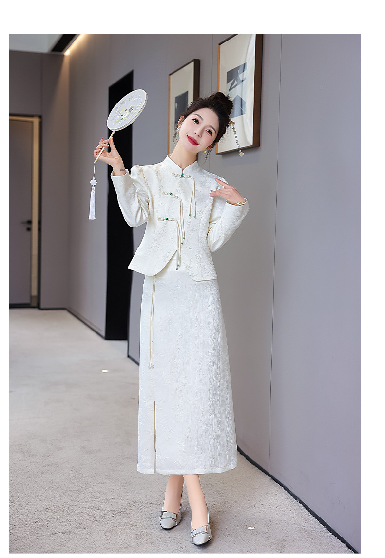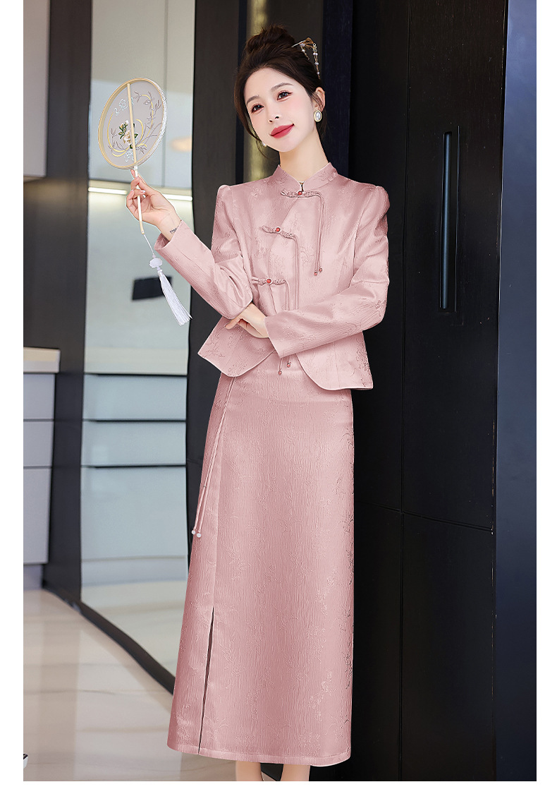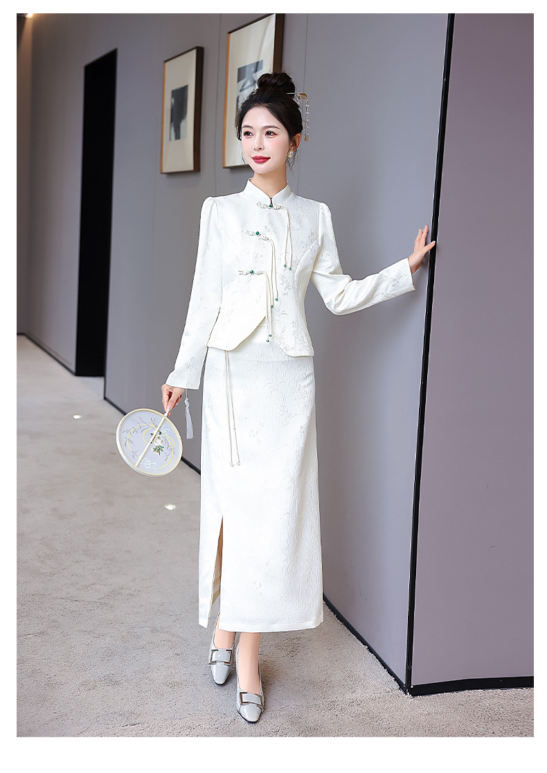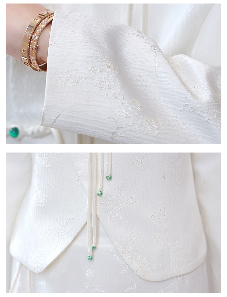 Bộ trang phục thời trang này gồm áo khoác và chân váy, phù hợp cho thời tiết mùa xuân và mùa thu. Áo được điểm xuyến bằng nút thắt truyền thống, kết hợp họa tiết dệt nổi tinh tế trên chất vải. Chân váy dáng dài tôn lên vẻ duyên dáng. Bộ trang phục này thích hợp để mặc trong những dịp gặp gỡ bạn bè, dạo phố hay các buổi hẹn thường ngày. Bạn có thể phối cùng áo thun bên trong và giày dép thoải mái để tạo nên một phong cách riêng. | Tên sản phẩm: Áo Khoác Nữ Họa Tiết Hoa Hàng Mùa Xuân Thu Đông - Thời Trang Nữ | Mã sản phẩm: B6863 - Giá: 1.810.000đ | Mã nhà sản xuất: HADG-G05Hình ảnh sản phẩm