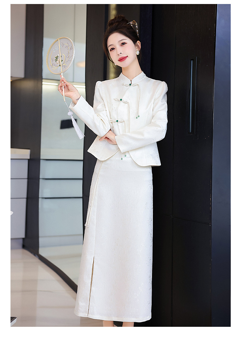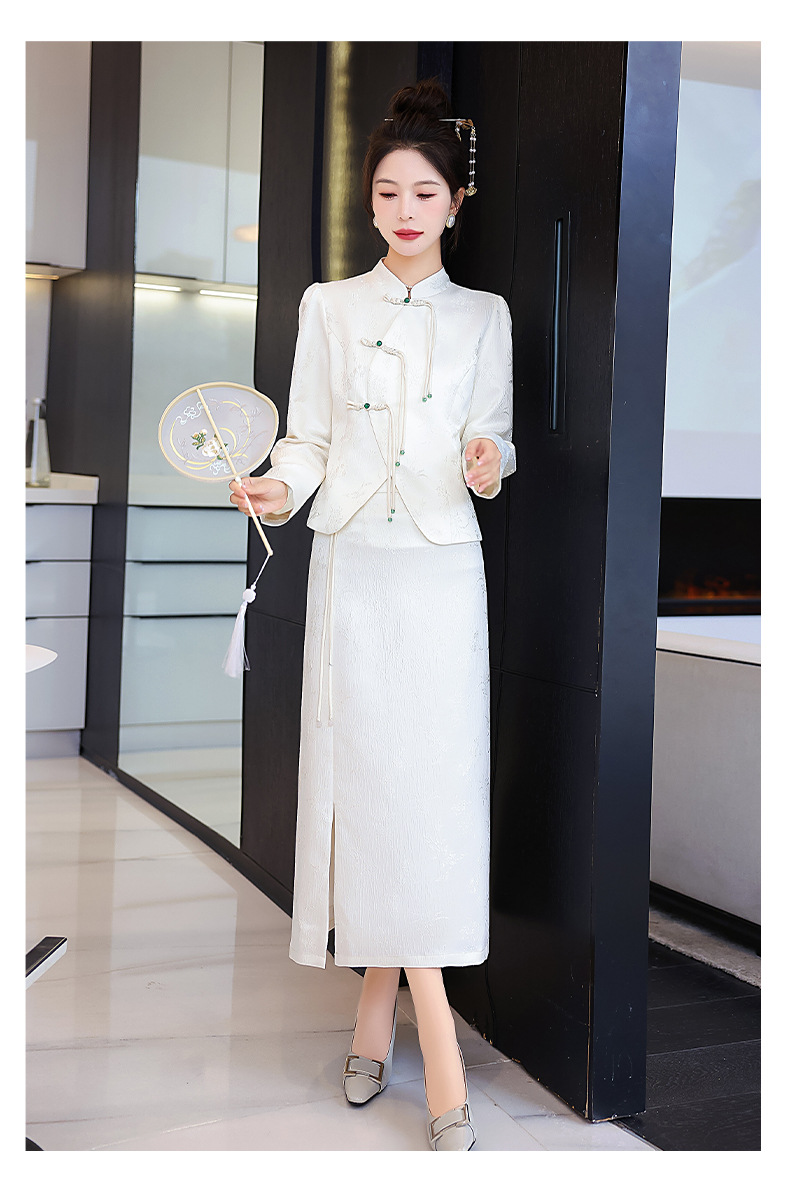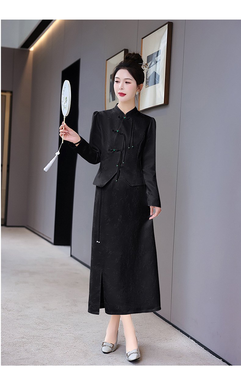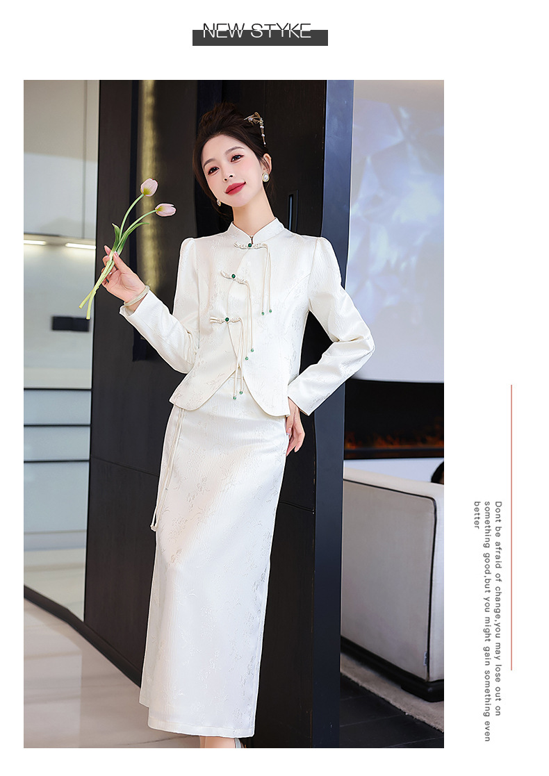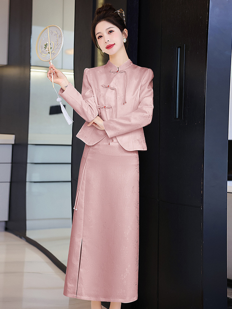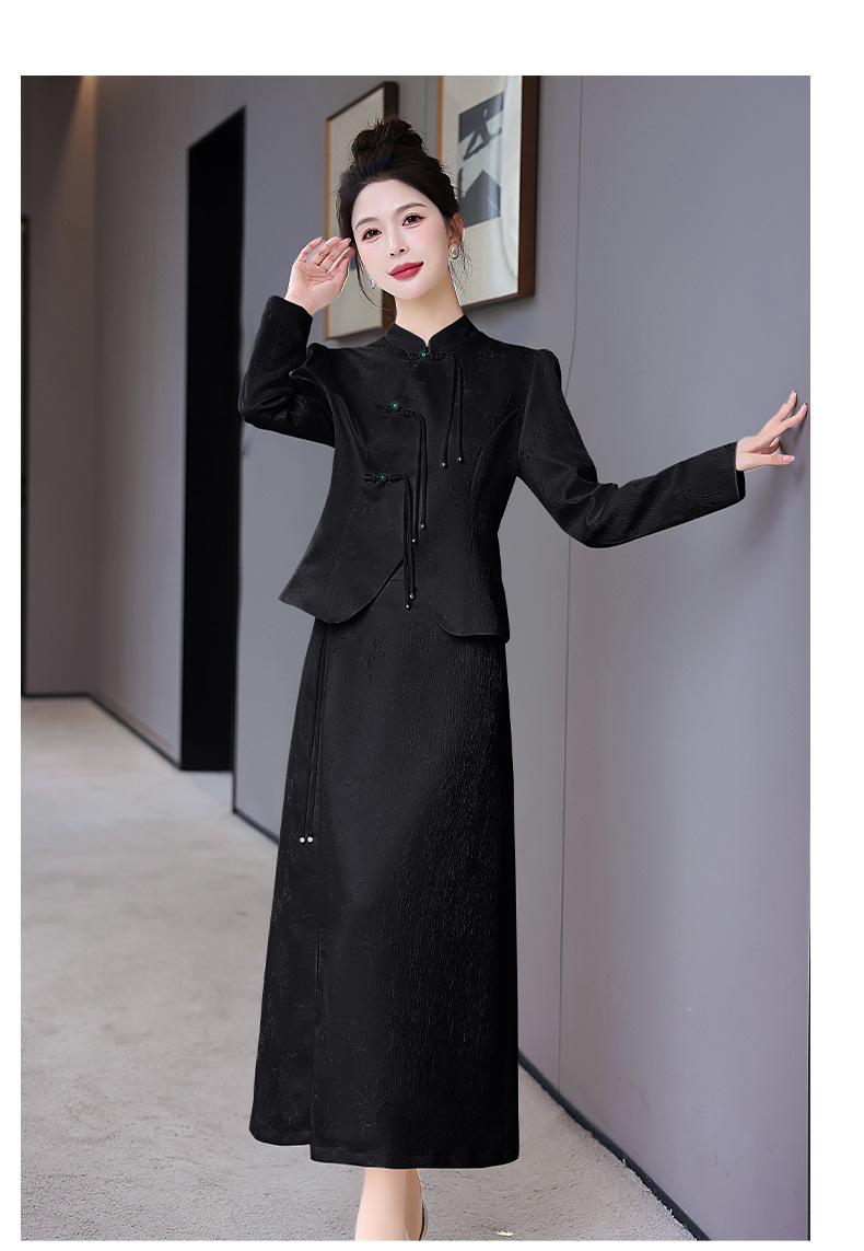 Bộ trang phục thời trang này gồm áo khoác và chân váy, phù hợp cho thời tiết mùa xuân và mùa thu. Áo được điểm xuyến bằng nút thắt truyền thống, kết hợp họa tiết dệt nổi tinh tế trên chất vải. Chân váy dáng dài tôn lên vẻ duyên dáng. Bộ trang phục này thích hợp để mặc trong những dịp gặp gỡ bạn bè, dạo phố hay các buổi hẹn thường ngày. Bạn có thể phối cùng áo thun bên trong và giày dép thoải mái để tạo nên một phong cách riêng. | Tên sản phẩm: Áo Khoác Nữ Họa Tiết Hoa Hàng Mùa Xuân Thu Đông - Thời Trang Nữ | Mã sản phẩm: B6863 - Giá: 1.810.000đ | Mã nhà sản xuất: HADG-G05Hình ảnh sản phẩm