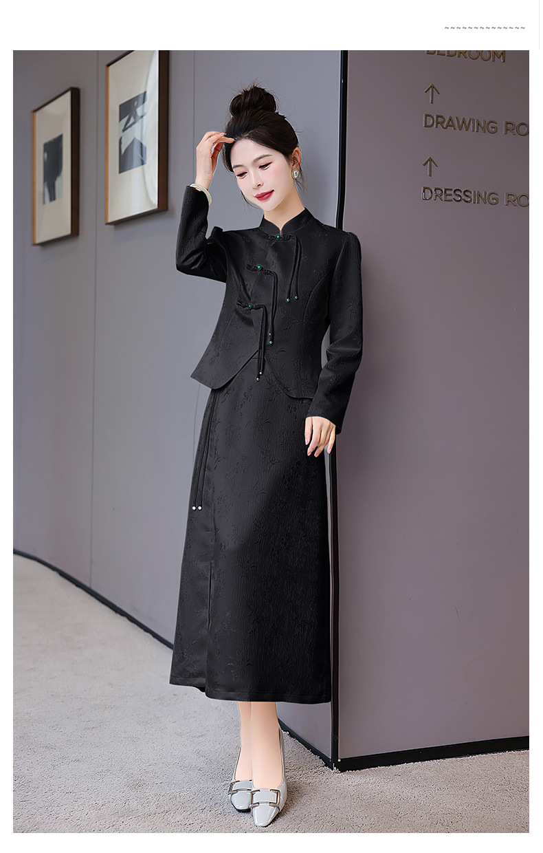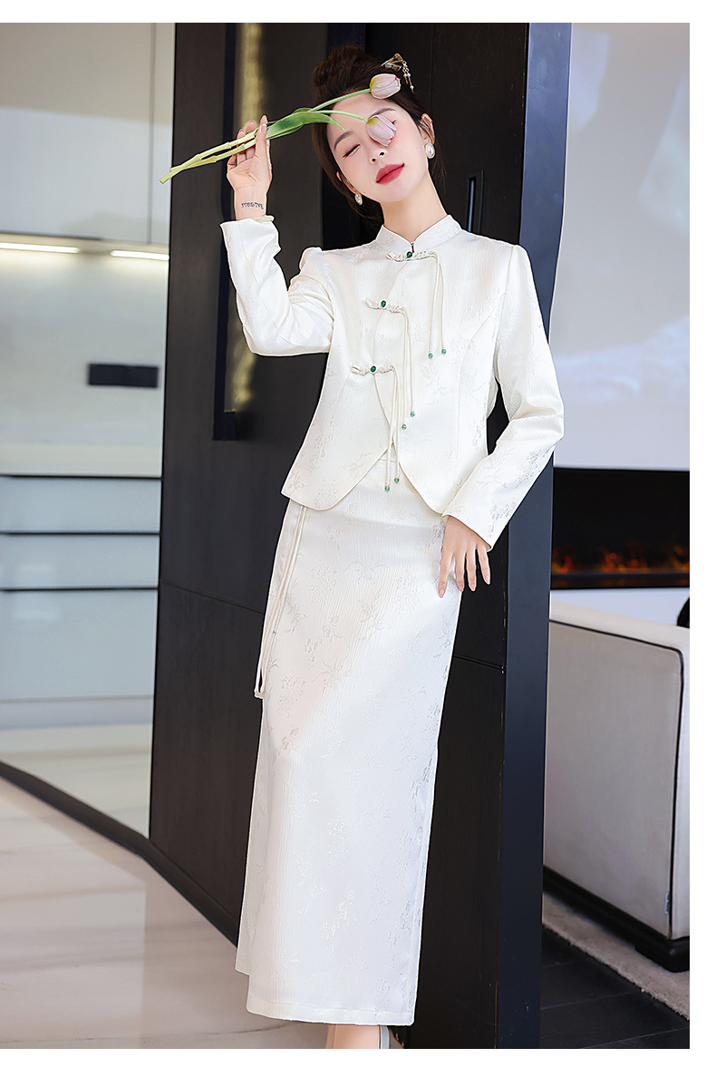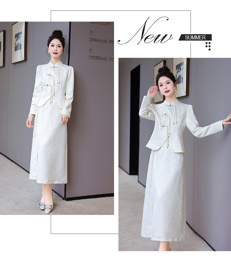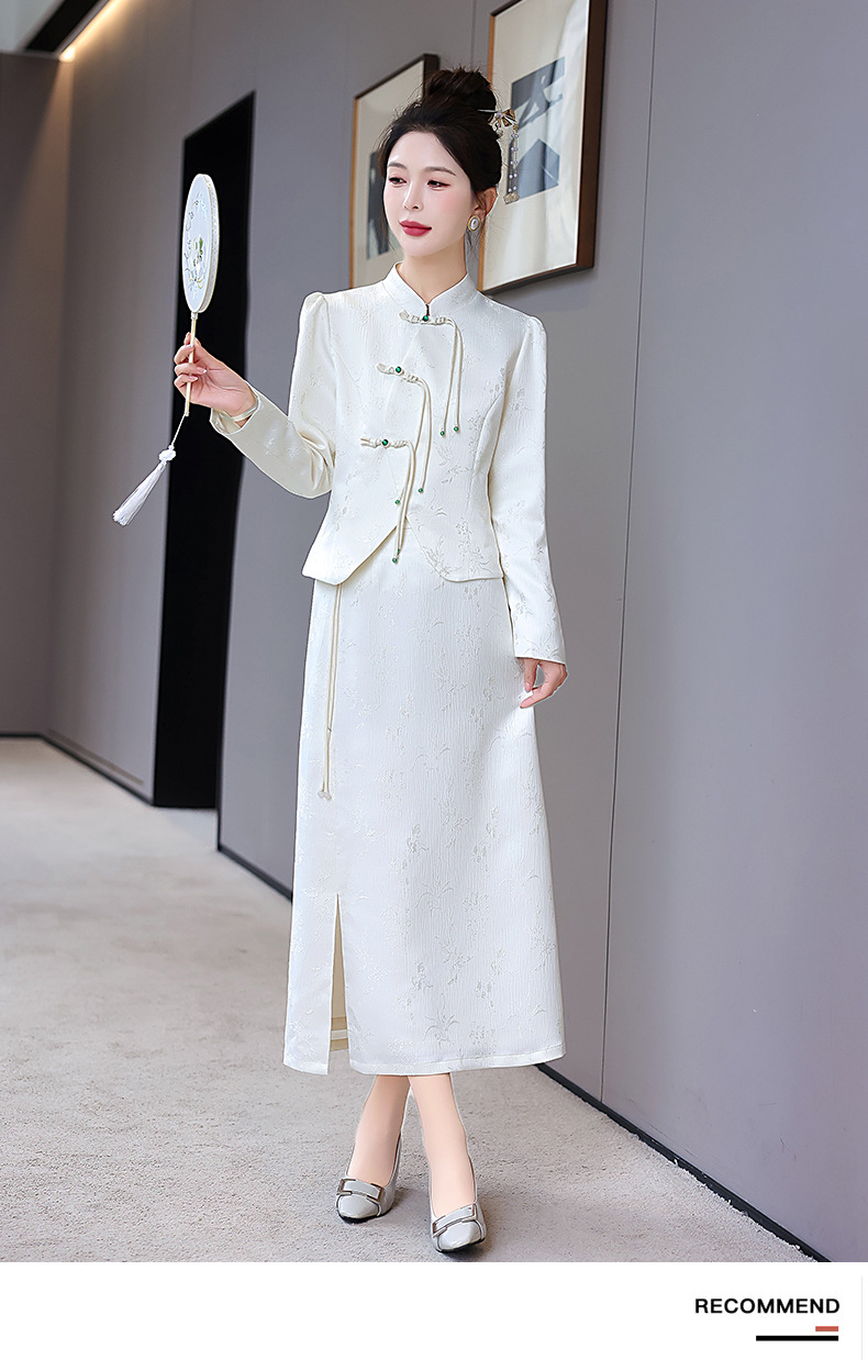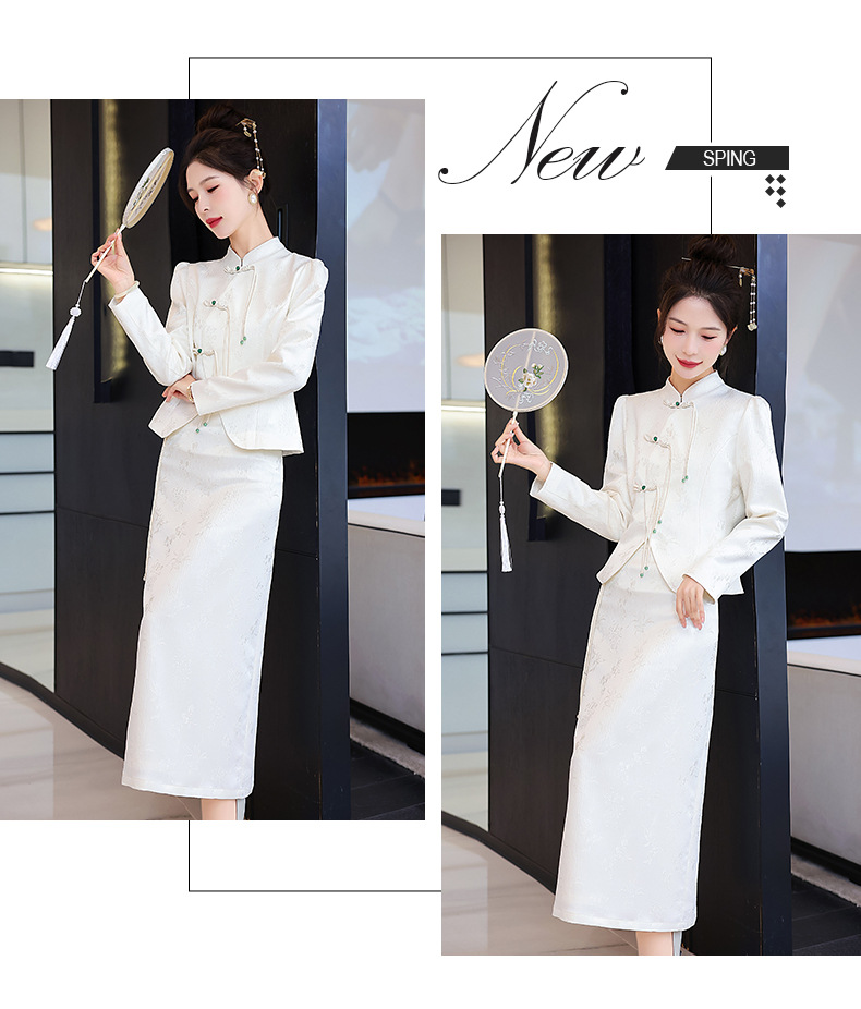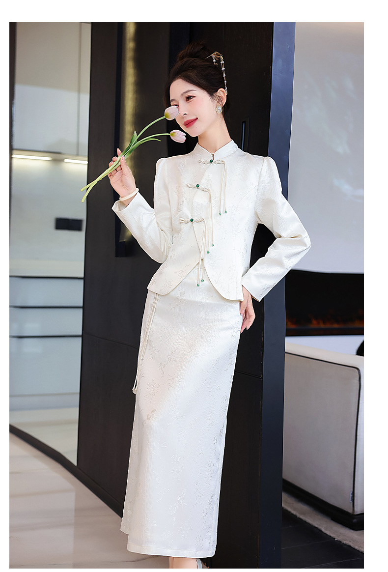 Bộ trang phục thời trang này gồm áo khoác và chân váy, phù hợp cho thời tiết mùa xuân và mùa thu. Áo được điểm xuyến bằng nút thắt truyền thống, kết hợp họa tiết dệt nổi tinh tế trên chất vải. Chân váy dáng dài tôn lên vẻ duyên dáng. Bộ trang phục này thích hợp để mặc trong những dịp gặp gỡ bạn bè, dạo phố hay các buổi hẹn thường ngày. Bạn có thể phối cùng áo thun bên trong và giày dép thoải mái để tạo nên một phong cách riêng. | Tên sản phẩm: Áo Khoác Nữ Họa Tiết Hoa Hàng Mùa Xuân Thu Đông - Thời Trang Nữ | Mã sản phẩm: B6863 - Giá: 1.810.000đ | Mã nhà sản xuất: HADG-G05Hình ảnh sản phẩm