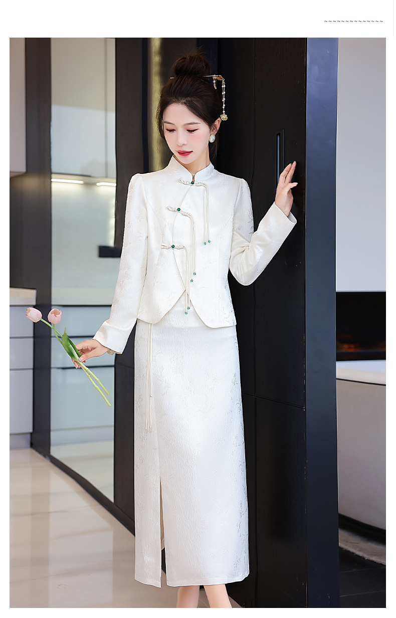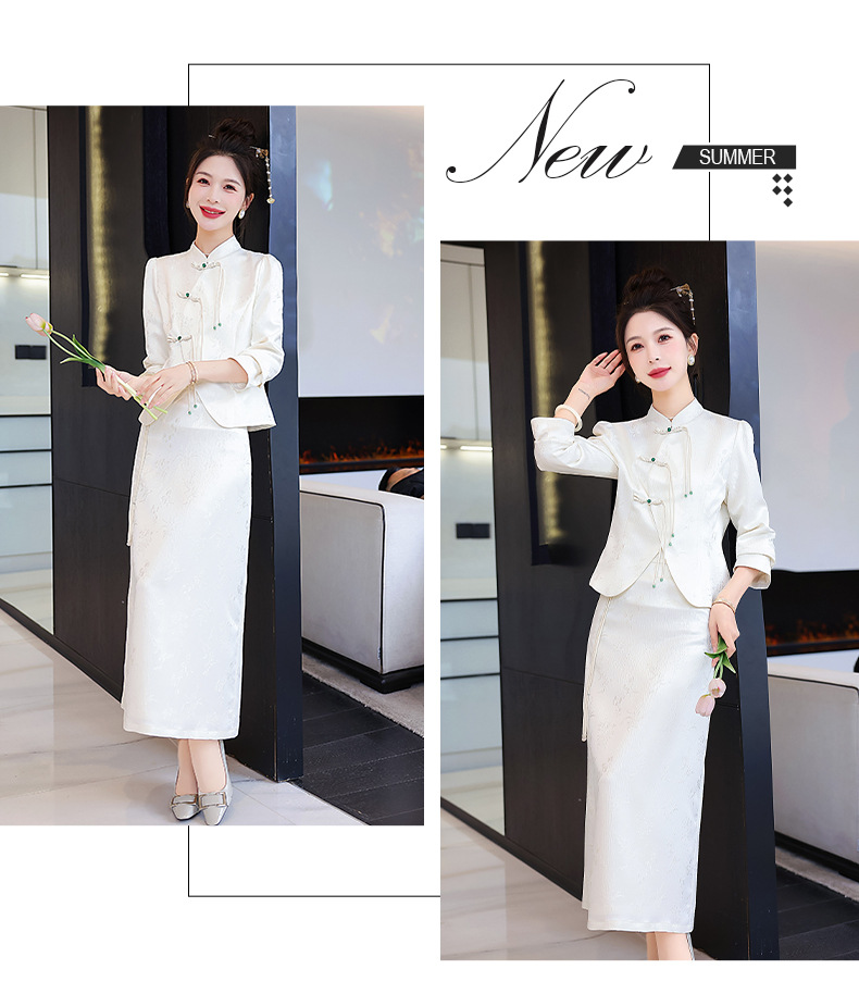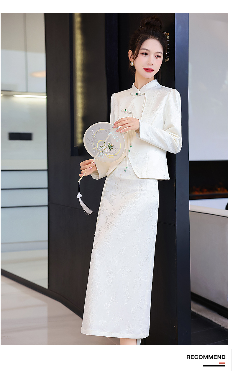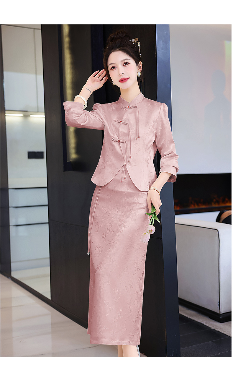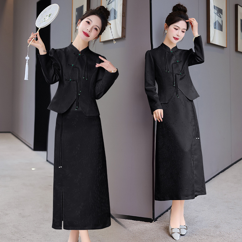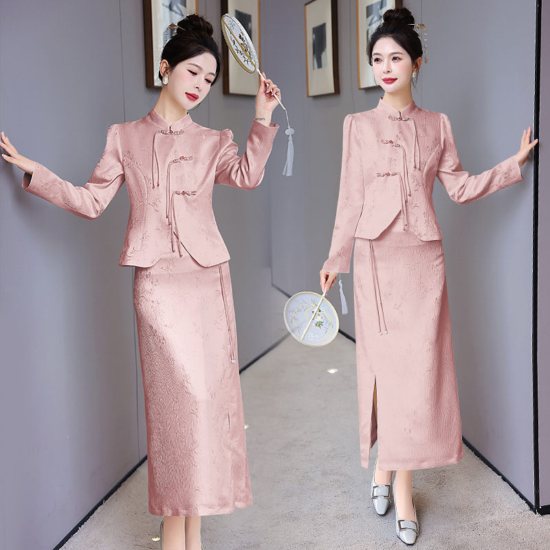 Bộ trang phục thời trang này gồm áo khoác và chân váy, phù hợp cho thời tiết mùa xuân và mùa thu. Áo được điểm xuyến bằng nút thắt truyền thống, kết hợp họa tiết dệt nổi tinh tế trên chất vải. Chân váy dáng dài tôn lên vẻ duyên dáng. Bộ trang phục này thích hợp để mặc trong những dịp gặp gỡ bạn bè, dạo phố hay các buổi hẹn thường ngày. Bạn có thể phối cùng áo thun bên trong và giày dép thoải mái để tạo nên một phong cách riêng. | Tên sản phẩm: Áo Khoác Nữ Họa Tiết Hoa Hàng Mùa Xuân Thu Đông - Thời Trang Nữ | Mã sản phẩm: B6863 - Giá: 1.810.000đ | Mã nhà sản xuất: HADG-G05Hình ảnh sản phẩm