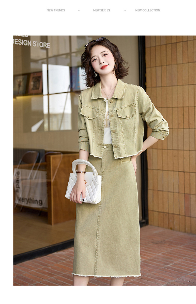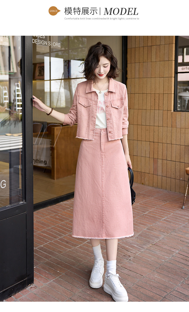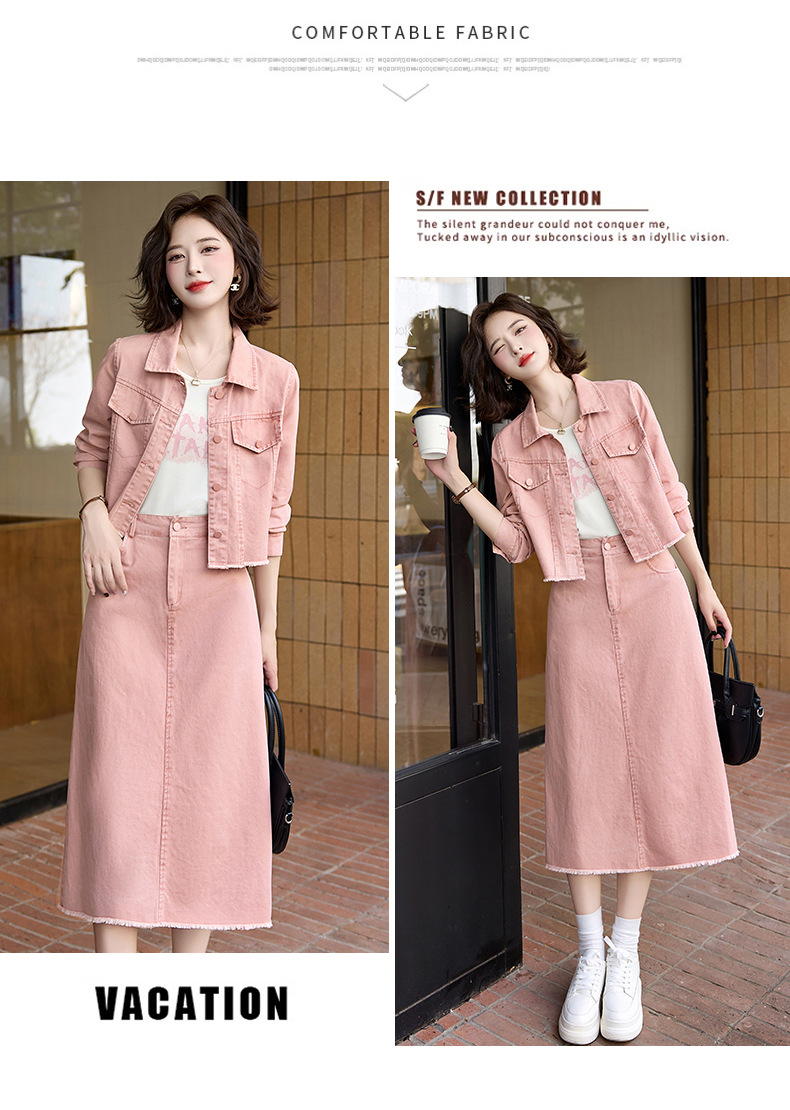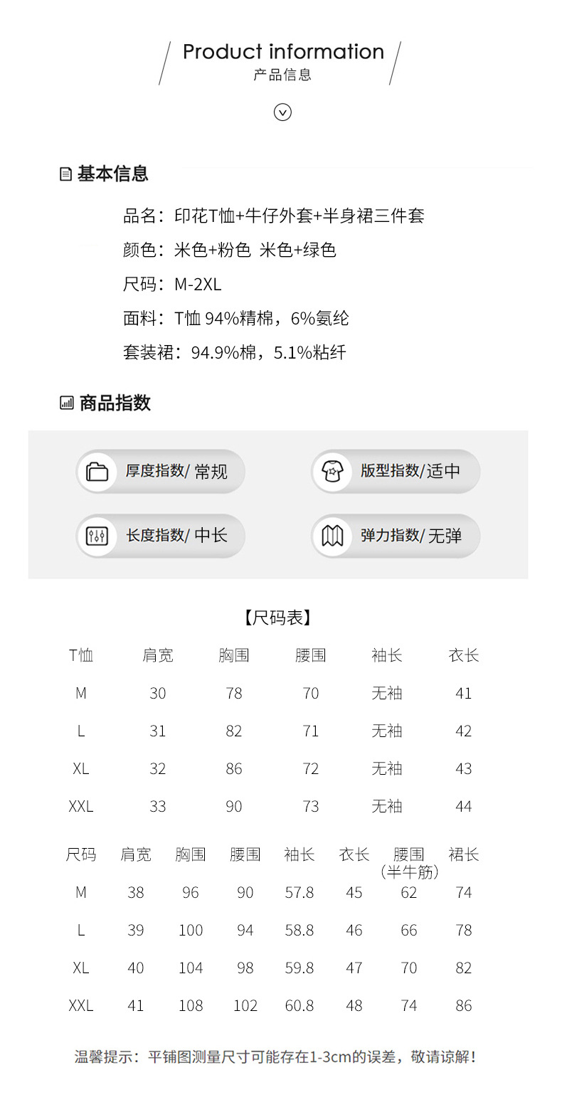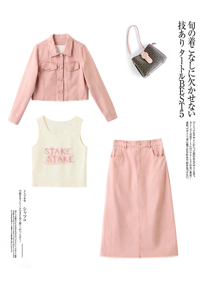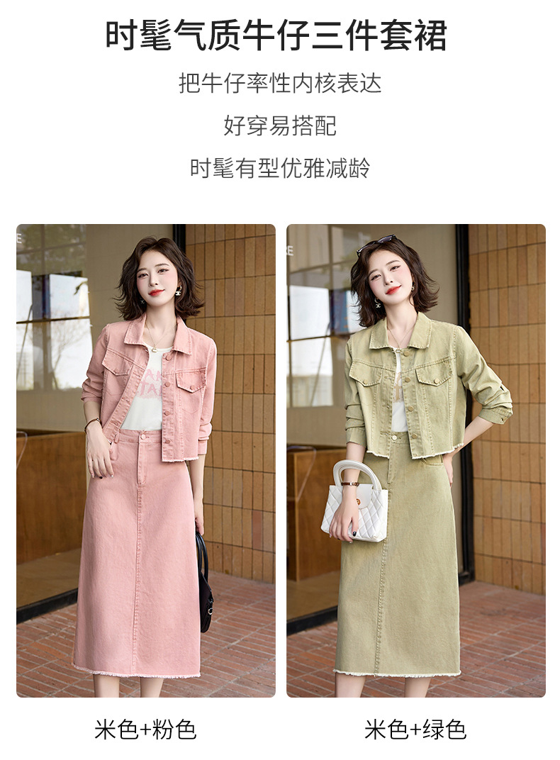 Bộ trang phục ba món này gồm áo thun in họa tiết, áo khoác dạng jeans và chân váy ngắn. Chất liệu co giãn nhẹ nhàng, mang đến sự thoải mái cho mọi hoạt động hằng ngày. Kiểu dáng trẻ trung, dễ phối đồ và phù hợp cho nhiều dịp khác nhau. Bạn có thể mặc nguyên bộ hoặc tách rời từng món để phối với các trang phục khác. Đây là lựa chọn tiện lợi và năng động cho các bạn gái. | Tên sản phẩm: Áo Khoác Nữ Chất Liệu Jean Bò Cả Bộ 3 Món Họa Tiết Hoa Hàng Mùa Xuân Thu Đông - Thời Trang Nữ | Mã sản phẩm: B6876 - Giá: 1.640.000đ | Mã nhà sản xuất: HADG-G05Hình ảnh sản phẩm