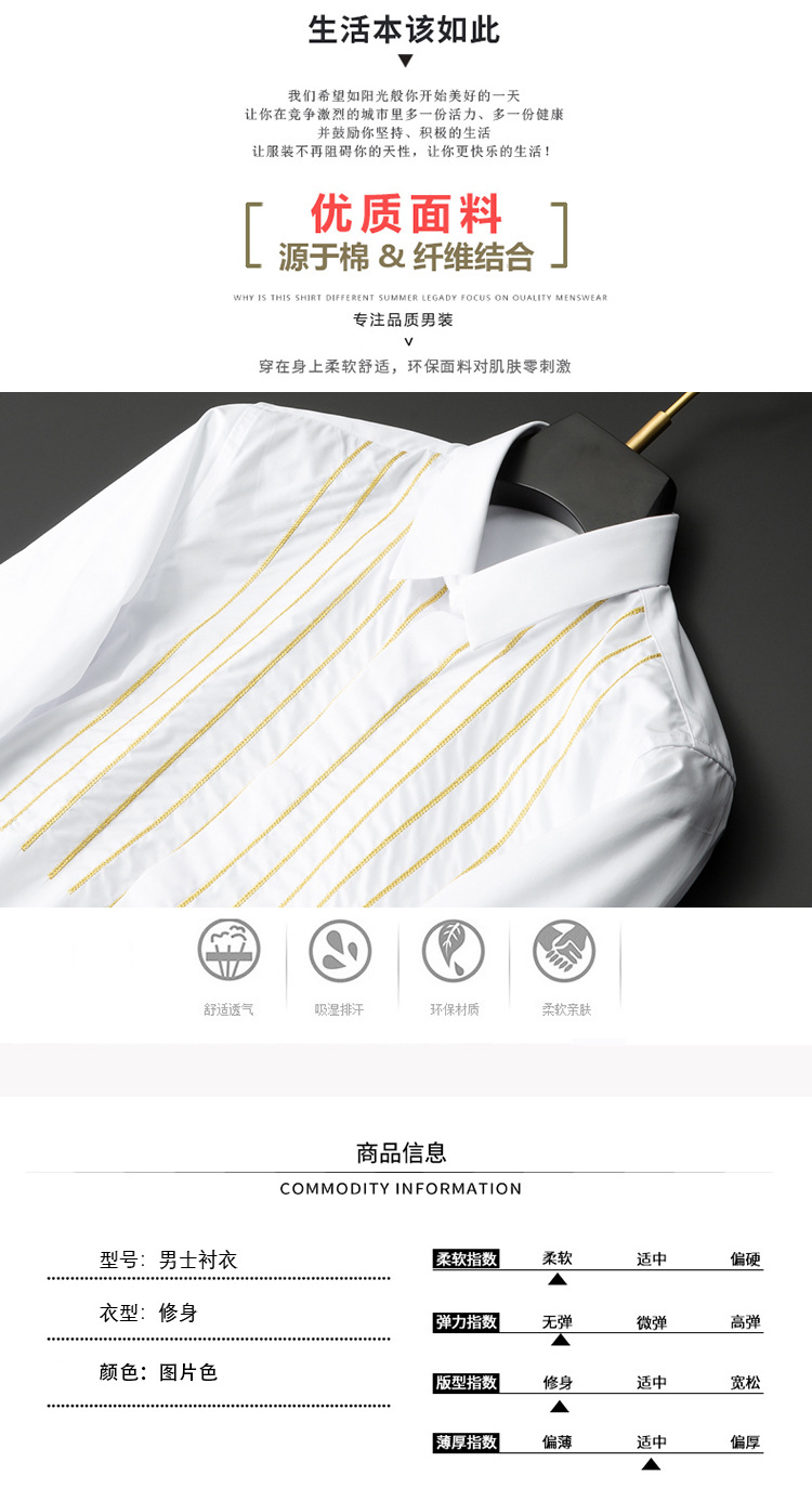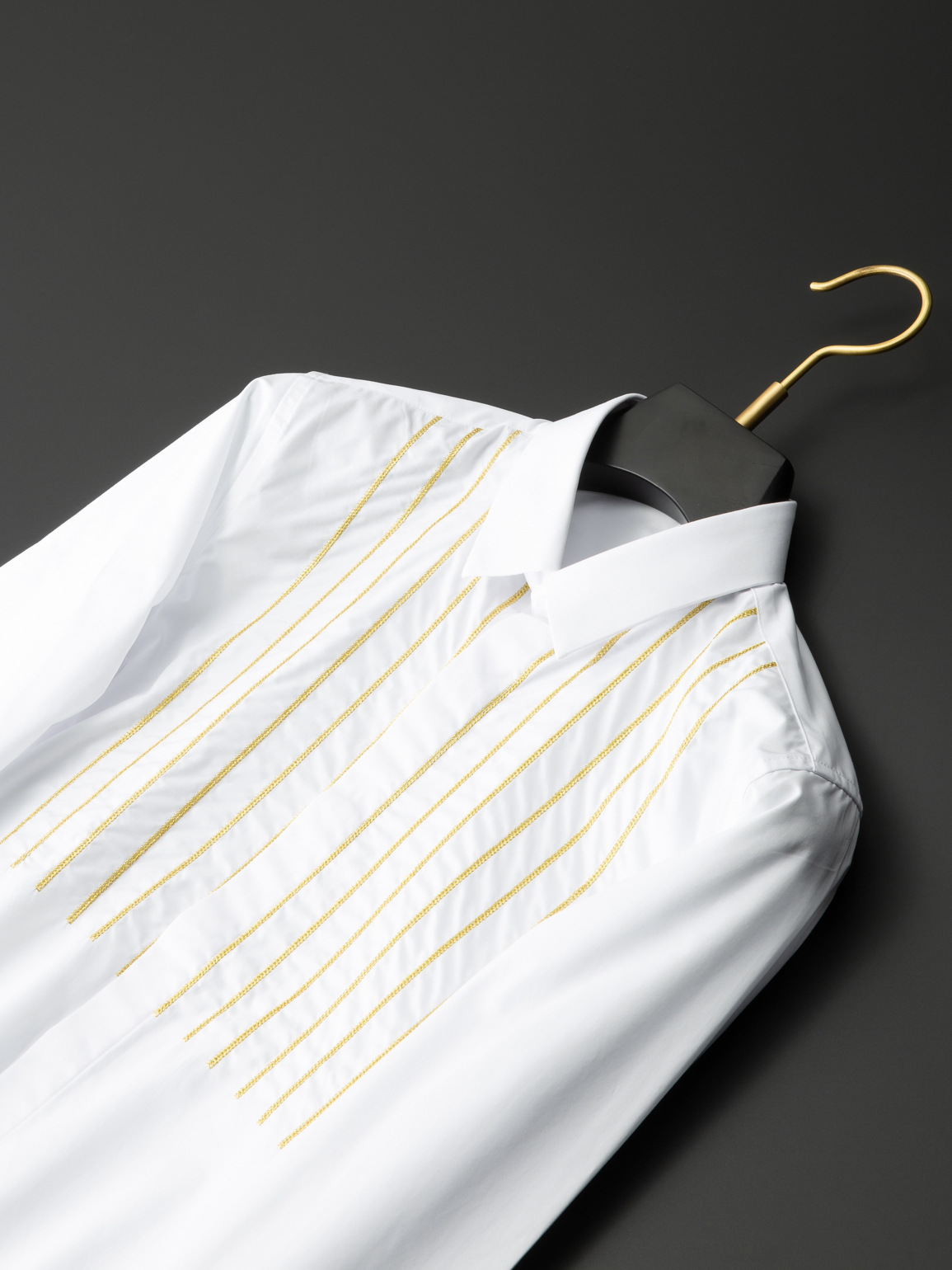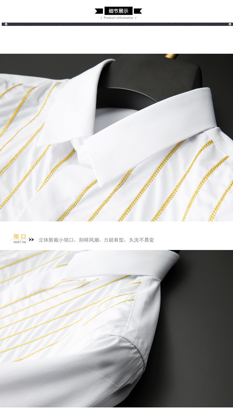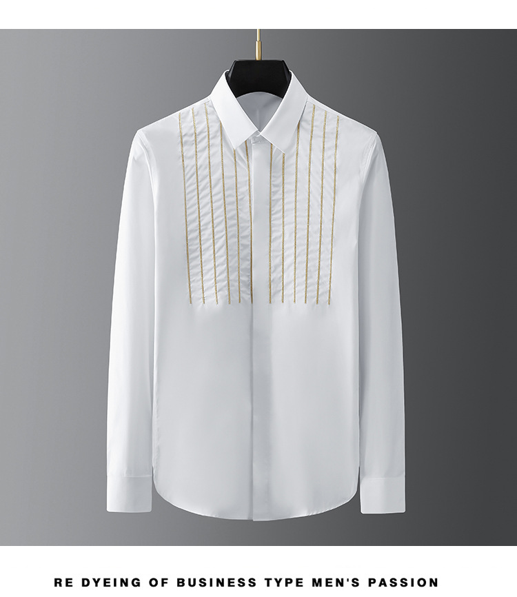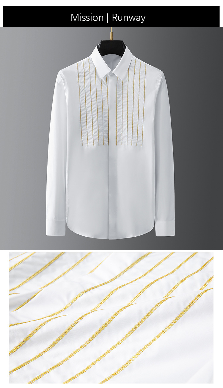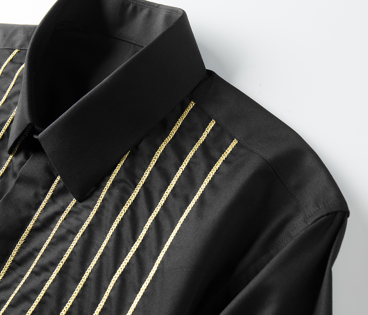 Áo sơ mi nam với phong cách trẻ trung, kết hợp giữa đi làm và hằng ngày. Điểm nhấn là đường thêu mắt xích ánh vàng tinh tế, tạo nét cá tính nhưng không quá phô trương. Chất vải nhẹ nhàng, ít nhăn, giúp bạn luôn gọn gàng cả ngày dài. Có thể mặc đi làm, dạo phố hay gặp mặt bạn bè. Dễ dàng phối với quần tây hoặc quần jean tùy thích. | Tên sản phẩm: Áo Sơ Mi Nam Thêu Họa Tiết Hoa - Thời Trang Nam | Mã sản phẩm: B6883 - Giá: 2.100.000đ | Mã nhà sản xuất: FODAR-G05Hình ảnh sản phẩm