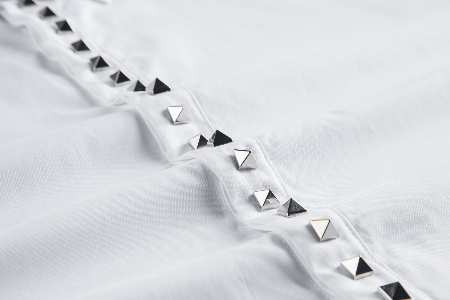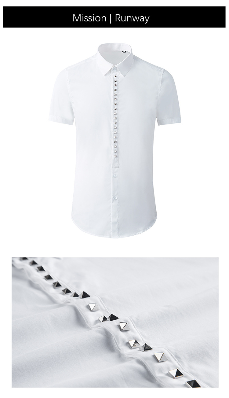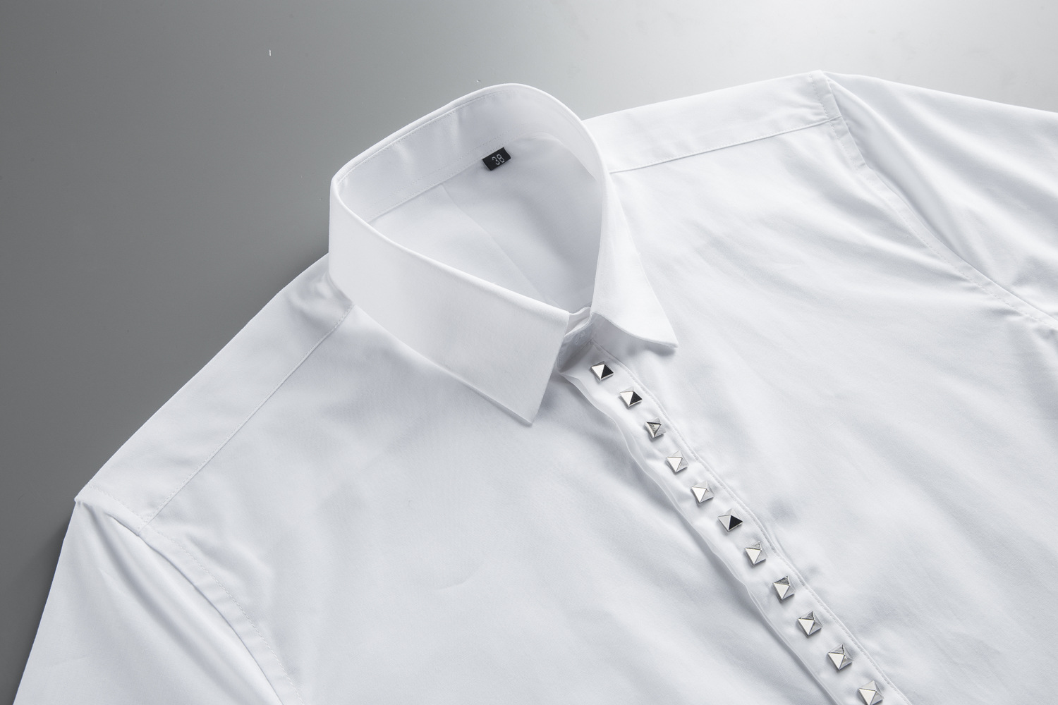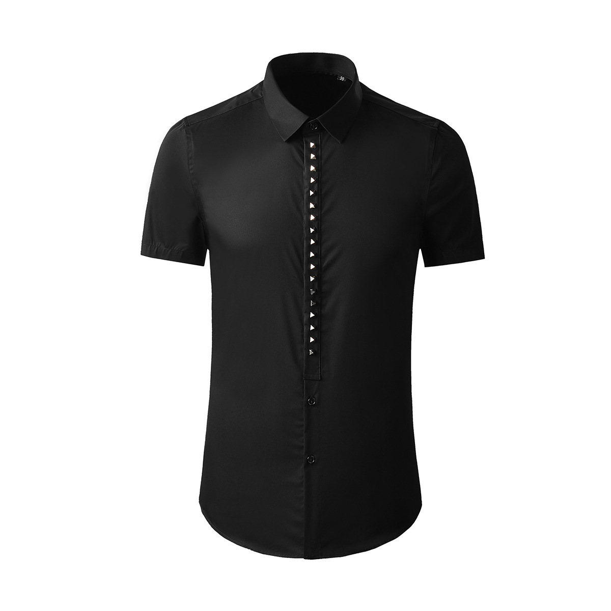 Áo sơ mi ngắn tay dành cho nam, kiểu dáng cổ điển với điểm nhấn là hàng đinh tán được sắp xếp thẳng đứng tạo nên phong cách trẻ trung, năng động. Sản phẩm có hai màu cơ bản là đen và trắng, dễ dàng phối hợp với nhiều loại trang phục khác nhau như quần jean hay quần âu. Bạn có thể mặc trong các dịp đi chơi, gặp gỡ bạn bè. Chất vải mềm mại, thoáng mát, mang lại sự thoải mái khi mặc cả ngày dài. | Tên sản phẩm: Áo Sơ Mi Nam Ngắn Tay - Thời Trang Nam | Mã sản phẩm: B6886 - Giá: 1.810.000đ | Mã nhà sản xuất: FODAR-G05Hình ảnh sản phẩm
