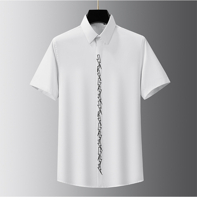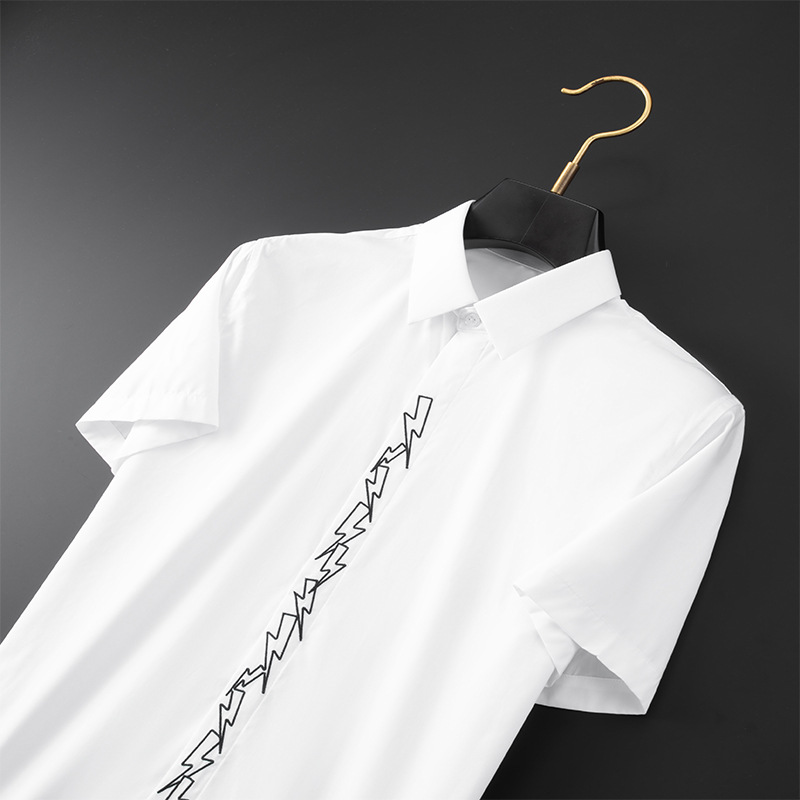 Áo sơ mi ngắn tay dành cho nam, kiểu dáng ôm vừa vặn theo phong cách châu Âu hiện đại. Điểm nhấn đặc biệt là hình thêu tia chớp tinh xảo ngay trước ngực, tạo nên nét cá tính mạnh mẽ. Thiết kế cổ điển với hàng cúc dọc thân dễ dàng mặc và cởi. Chất vải mềm mại, thoáng mát, phù hợp cho nhiều dịp sinh hoạt hằng ngày. Cách sử dụng đơn giản, mặc kết hợp cùng quần tây hoặc quần jean đều rất phù hợp. | Tên sản phẩm: Áo Sơ Mi Nam Dáng Ôm Ngắn Tay Thêu Họa Tiết Hoa Phong Cách Âu Mỹ - Thời Trang Nam | Mã sản phẩm: B6903 - Giá: 1.280.000đ | Mã nhà sản xuất: FODAR-G04Hình ảnh sản phẩm