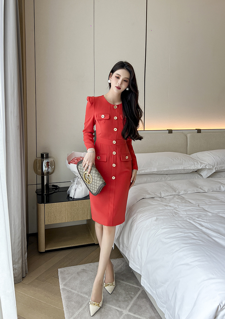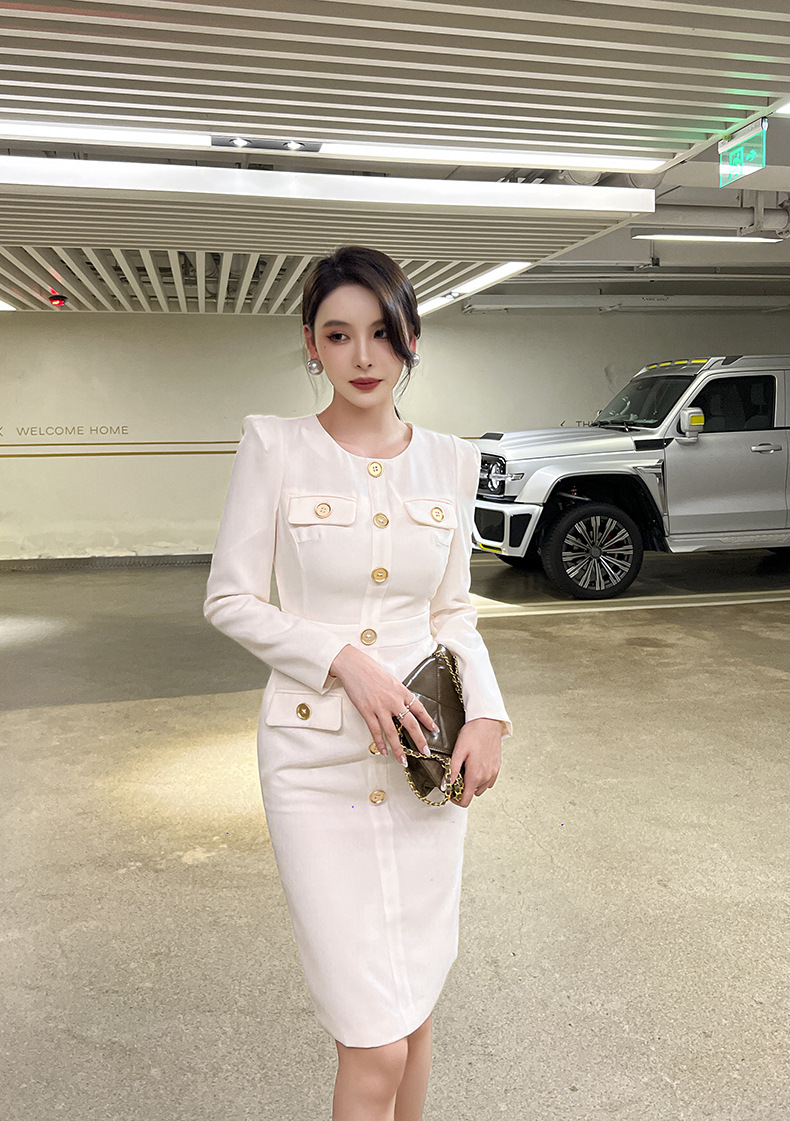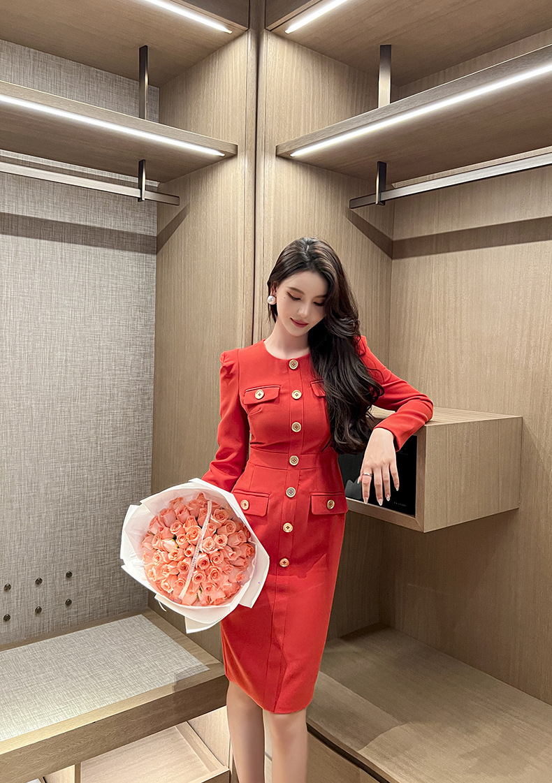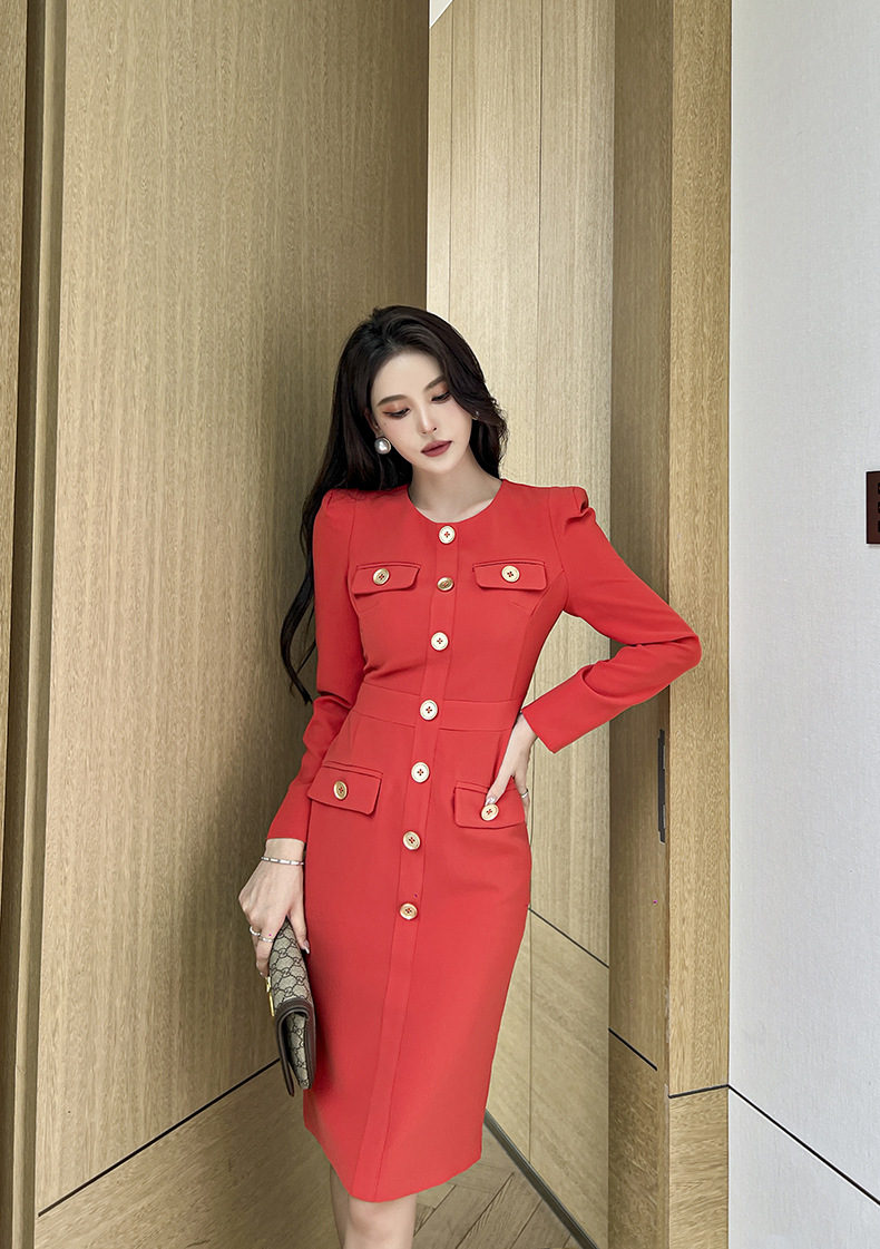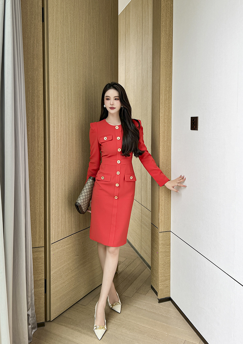 Chiếc đầm dáng ôm dành cho nữ, thiết kế cổ tròn và hàng cúc đơn phía trước. Kiểu dáng tôn lên đường nét cơ thể, phần eo thon và ôm nhẹ vòng mông, phù hợp cho việc mặc đi làm hoặc dạo phố. Chất vải co giãn nhẹ, tạo cảm giác thoải mái khi vận động. Dễ dàng phối cùng giày cao gót hay giày bệt để tạo vẻ ngoài chỉn chu, lịch sự. | Tên sản phẩm: Váy Đầm Liền Thân Nữ Dáng Ôm Hàng Mùa Xuân Thu Đông - Thời Trang Nữ | Mã sản phẩm: B6914 - Giá: 1.390.000đ | Mã nhà sản xuất: CHDG-G04Hình ảnh sản phẩm