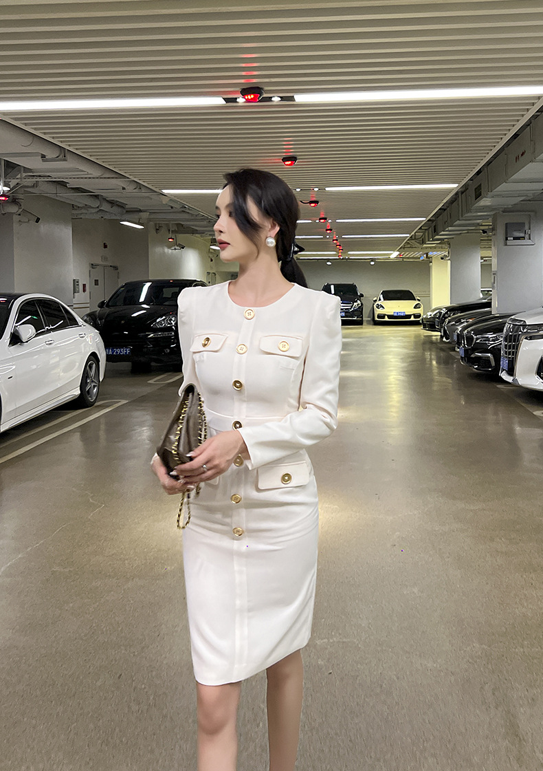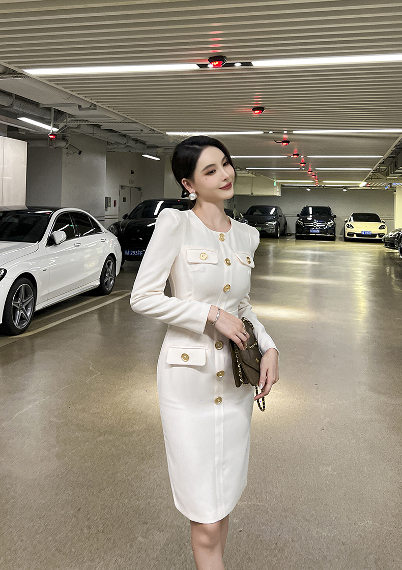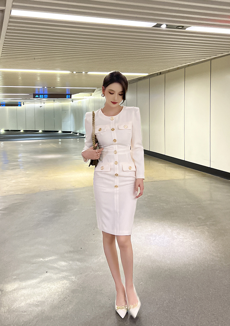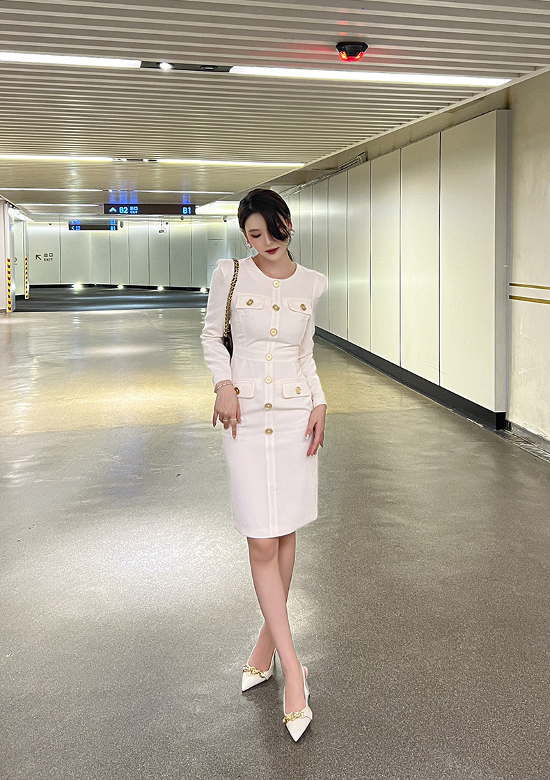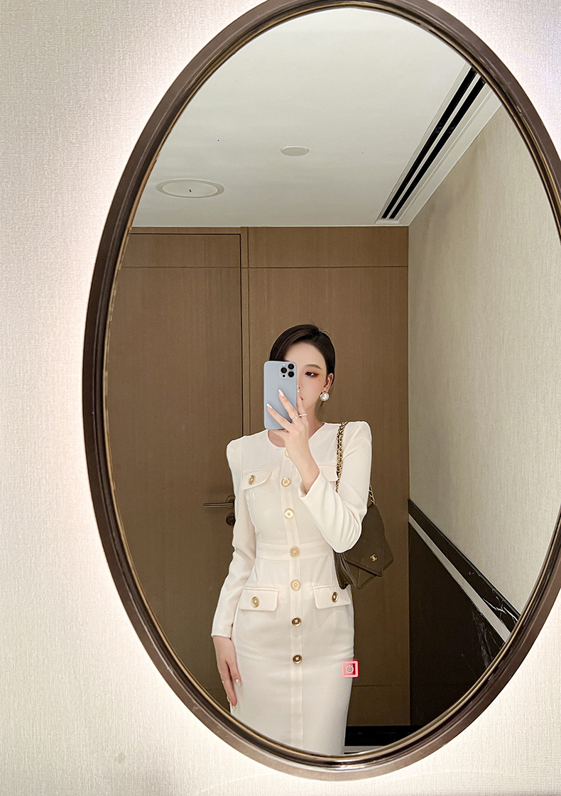 Chiếc đầm dáng ôm dành cho nữ, thiết kế cổ tròn và hàng cúc đơn phía trước. Kiểu dáng tôn lên đường nét cơ thể, phần eo thon và ôm nhẹ vòng mông, phù hợp cho việc mặc đi làm hoặc dạo phố. Chất vải co giãn nhẹ, tạo cảm giác thoải mái khi vận động. Dễ dàng phối cùng giày cao gót hay giày bệt để tạo vẻ ngoài chỉn chu, lịch sự. | Tên sản phẩm: Váy Đầm Liền Thân Nữ Dáng Ôm Hàng Mùa Xuân Thu Đông - Thời Trang Nữ | Mã sản phẩm: B6914 - Giá: 1.390.000đ | Mã nhà sản xuất: CHDG-G04Hình ảnh sản phẩm