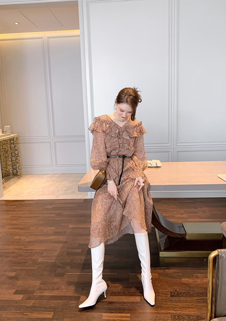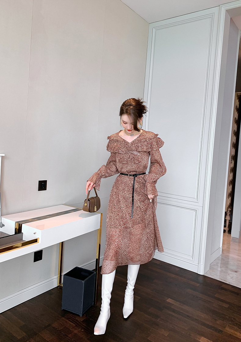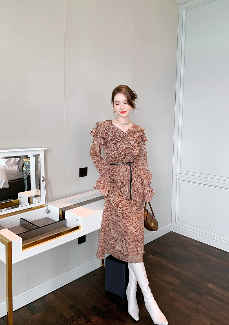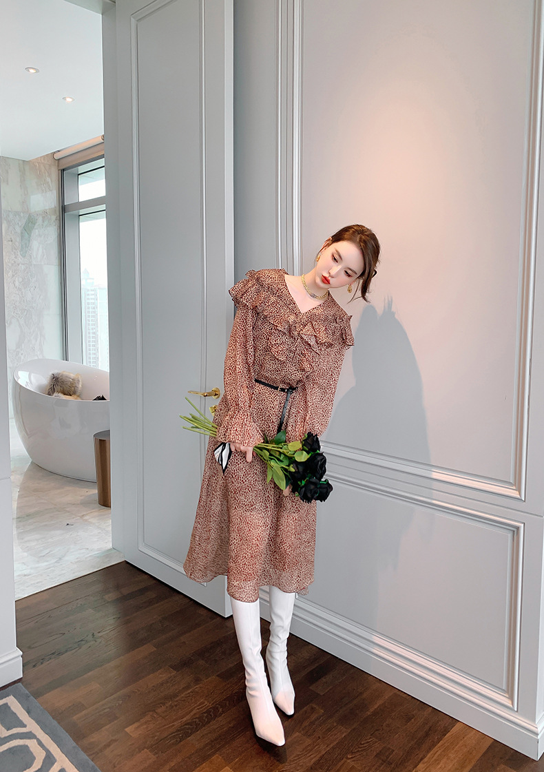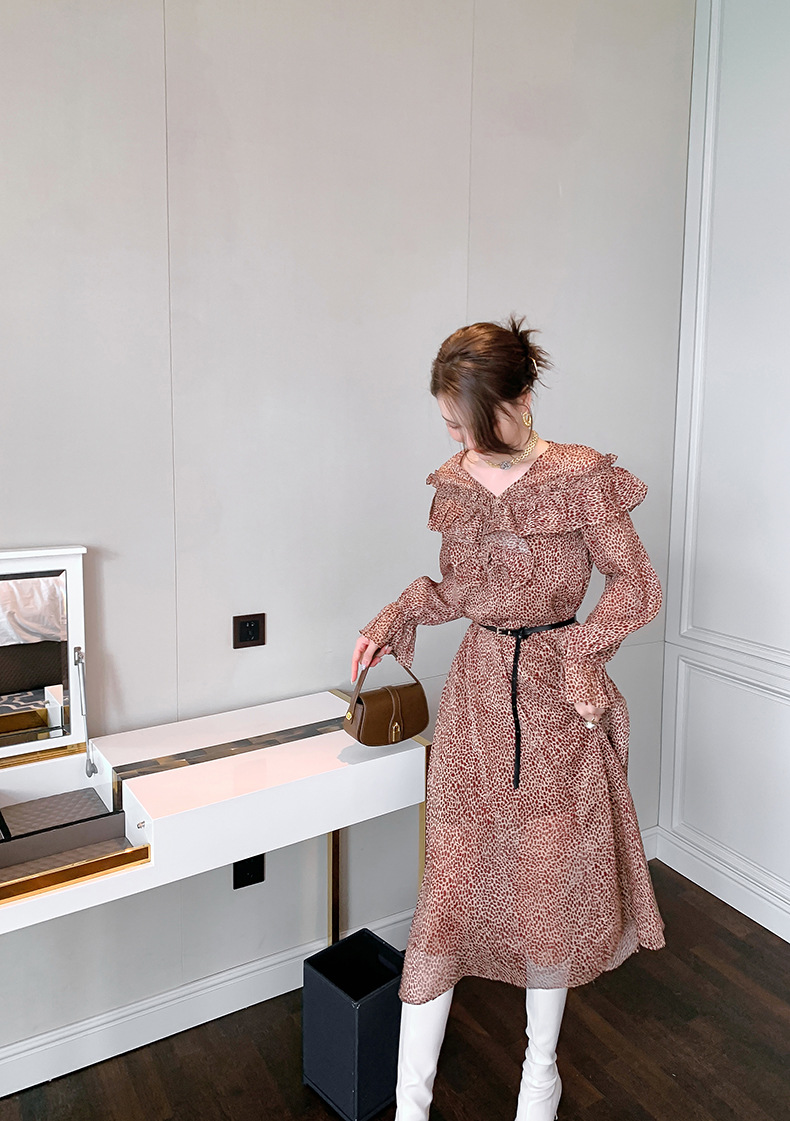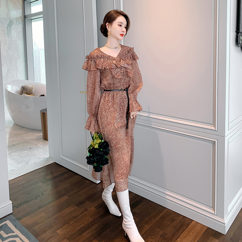 Chiếc đầm tay dài này có họa tiết da thú rất thời thượng. Điểm nhấn đặc biệt là phần cổ áo và tay áo được cách điệu như những chiếc lá sen, tạo nên nét duyên dáng và mềm mại. Chất vải mỏng nhẹ, thoáng mát giúp bạn dễ dàng vận động. Kiểu dáng không đối xứng ở phần váy mang đến vẻ ngoài trẻ trung, năng động. Sản phẩm phù hợp để mặc đi làm, đi chơi hoặc dự các buổi gặp mặt. | Tên sản phẩm: Váy Đầm Liền Thân Nữ Chất Liệu Vải Voan Dài Tay Hàng Mùa Xuân Thu Đông - Thời Trang Nữ | Mã sản phẩm: B6933 - Giá: 1.280.000đ | Mã nhà sản xuất: CHDG-G04Hình ảnh sản phẩm