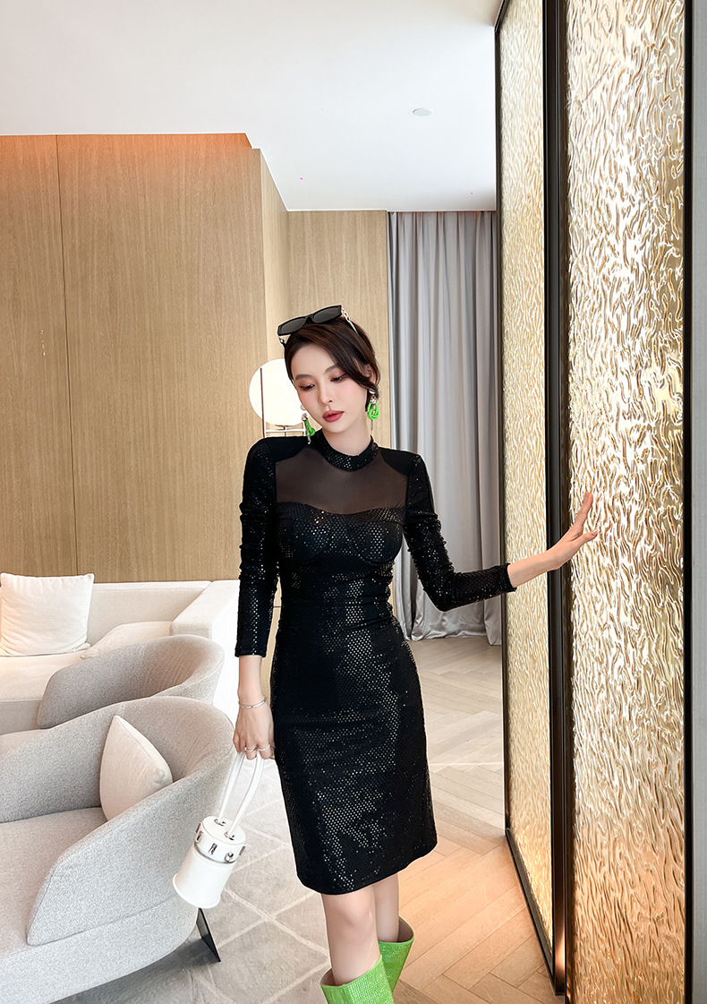 Chiếc đầm body này có điểm nhấn từ phần vải mỏng kết hợp những hạt kim tuyến lấp lánh, tạo nên vẻ quyến rũ và nổi bật. Kiểu dáng ôm sát cơ thể cùng thiết kế ôm eo giúp tôn lên những đường nét cơ thể. Sản phẩm thích hợp cho các buổi tiệc tối hoặc khi bạn muốn có một diện mạo ấn tượng. Mặc cùng giày cao gót và phụ kiện phù hợp để hoàn thiện bộ trang phục. | Tên sản phẩm: Váy Đầm Liền Thân Nữ Dáng Ôm Lưới Mỏng Hàng Mùa Xuân Thu Đông - Thời Trang Nữ | Mã sản phẩm: B6952 - Giá: 1.060.000đ | Mã nhà sản xuất: CHDG-G03Hình ảnh sản phẩm