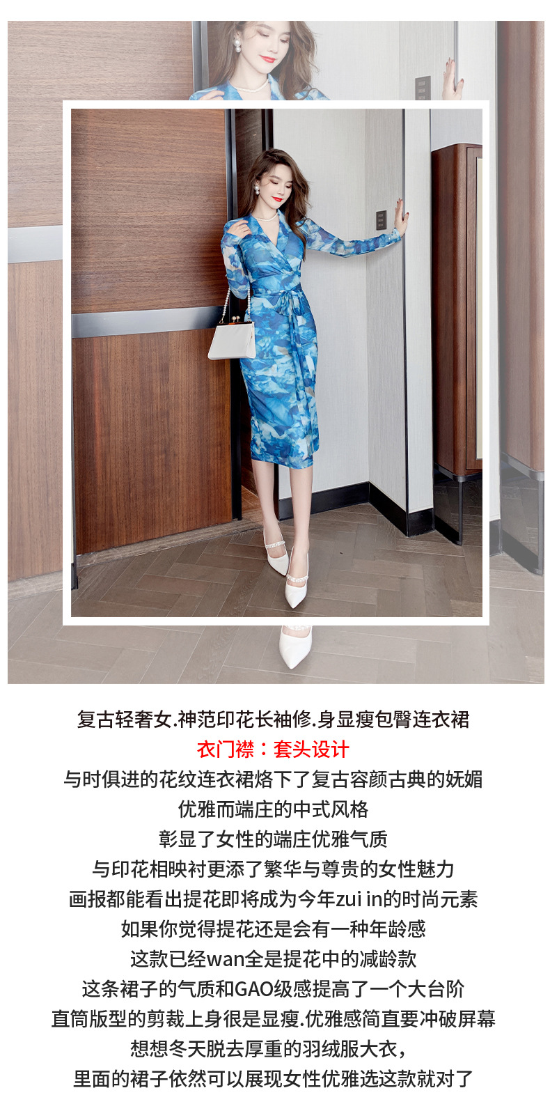 Chiếc váy này có họa tiết in nổi bật, ôm nhẹ vào cơ thể và phần eo được thiết kế có dây buộc để điều chỉnh vừa vặn. Chất liệu kết hợp giữa vải mềm mại và lớp voan mỏng ở một số phần, tạo nên vẻ đẹp vừa dịu dàng lại có chút gợi cảm. Sản phẩm thích hợp mặc trong tiết trời mát mẻ, dễ dàng phối cùng giày cao gót hoặc giày bệt. Bạn có thể mặc đi làm, dự tiệc hoặc những dịp gặp mặt thông thường. | Tên sản phẩm: Váy Đầm Liền Thân Nữ Dáng Ôm Lưới Mỏng Họa Tiết Hoa Hàng Mùa Xuân Thu Đông Phong Cách Âu Mỹ - Thời Trang Nữ | Mã sản phẩm: B6964 - Giá: 1.020.000đ | Mã nhà sản xuất: CHDG-G03Hình ảnh sản phẩm