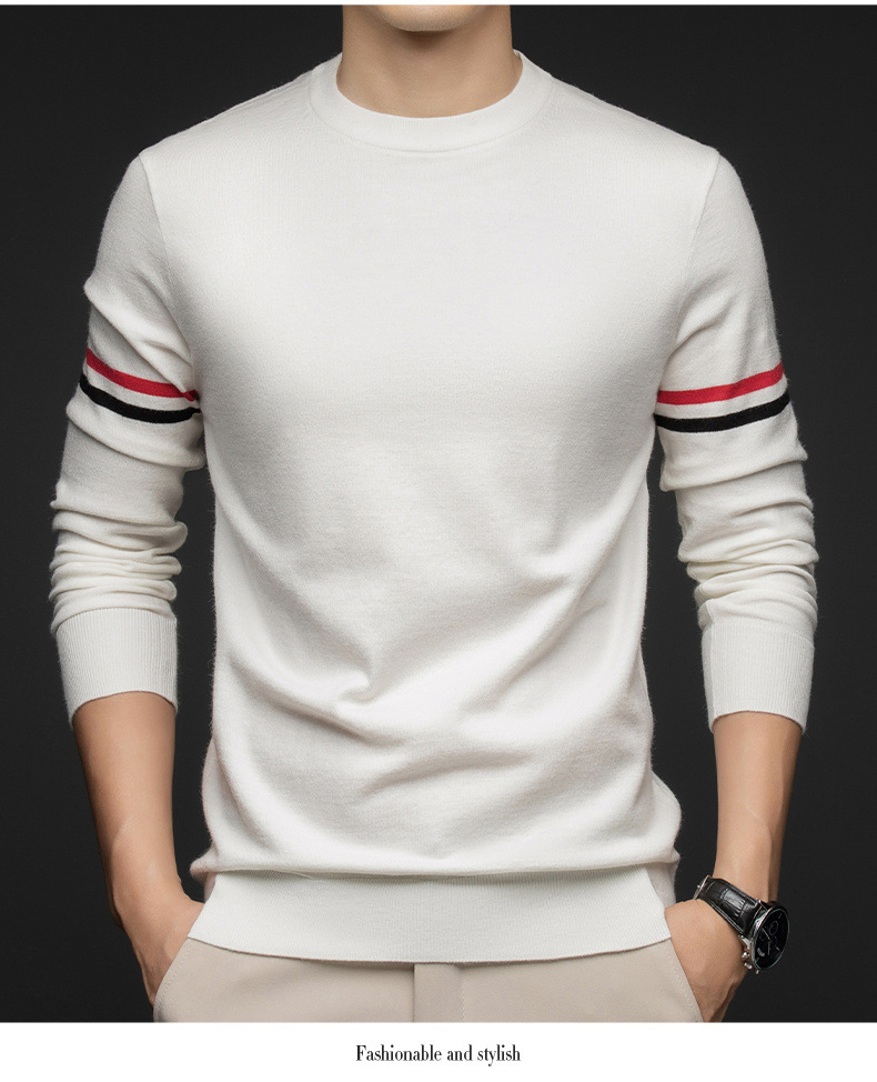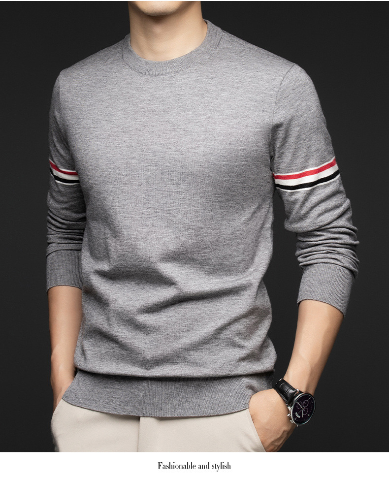 Áo dài tay nam dáng ôm thoải mái, phù hợp mặc vào mùa thu và mùa xuân. Chất vải dệt kim mềm mại, tạo cảm giác dễ chịu khi mặc cả ngày. Kiểu áo cổ tròn cơ bản dễ phối đồ, có thể mặc bên trong áo khoác hoặc mặc một mình. Các đường sọc trang nhã trên áo giúp tăng thêm nét trẻ trung. Sản phẩm này phù hợp cho nhiều hoàn cảnh như đi làm, dạo phố hay gặp gỡ bạn bè. | Tên sản phẩm: Áo Len Nam Áo Len Dài Tay Hàng Mùa Xuân Thu Đông - Thời Trang Nam | Mã sản phẩm: B6978 - Giá: 980.000đ | Mã nhà sản xuất: QUDL-G03Hình ảnh sản phẩm