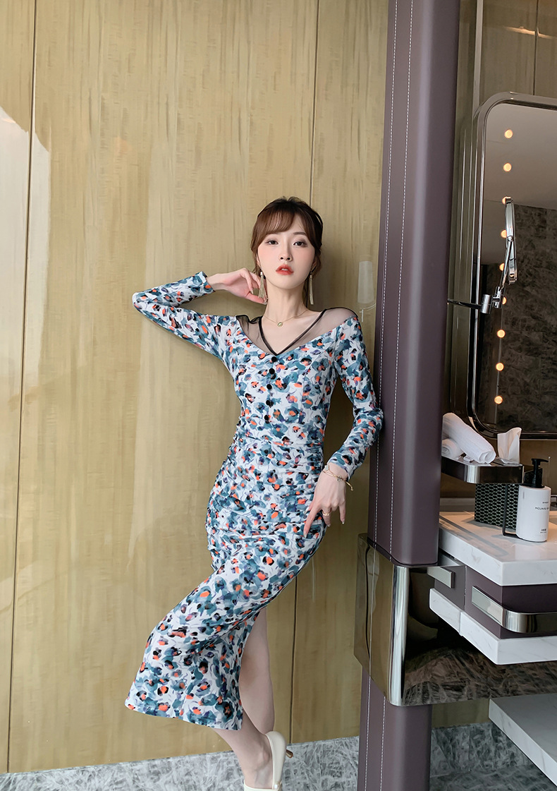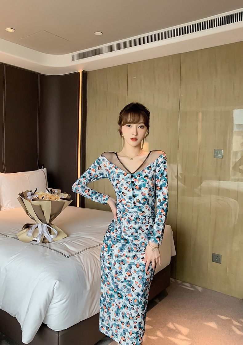 Chiếc váy dài với phần cổ khoét kiểu chữ V tạo điểm nhấn. Chất liệu lưới mỏng được kết hợp khéo léo cùng thân váy ôm dáng, giúp tôn lên những đường nét cơ thể. Họa tiết in nổi bật trên nền vải mềm mại, mang đến vẻ đẹp vừa dịu dàng lại hiện đại. Sản phẩm phù hợp cho nhiều dịp đi chơi, dạo phố. Có thể giặt bằng tay và phơi nơi râm mát để giữ form váy được bền đẹp. | Tên sản phẩm: Váy Đầm Liền Thân Dáng Dài Nữ Dáng Ôm Lưới Mỏng Họa Tiết Hoa Cổ Chữ V Hàng Mùa Xuân Thu Đông - Thời Trang Nữ | Mã sản phẩm: B6990 - Giá: 1.090.000đ | Mã nhà sản xuất: CHDG-G03Hình ảnh sản phẩm