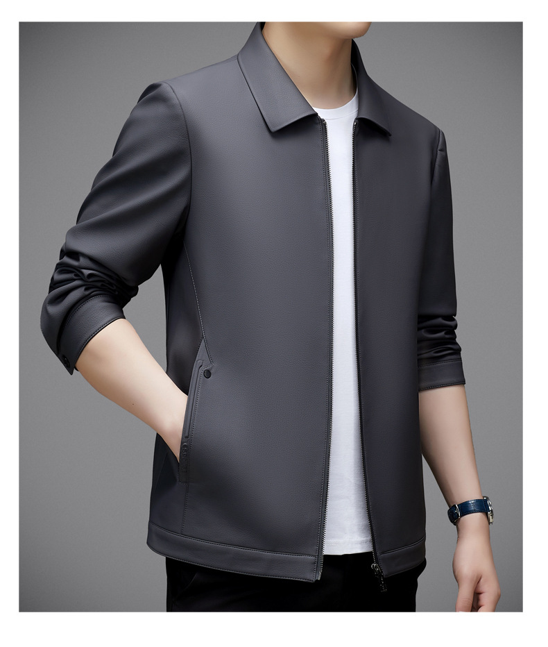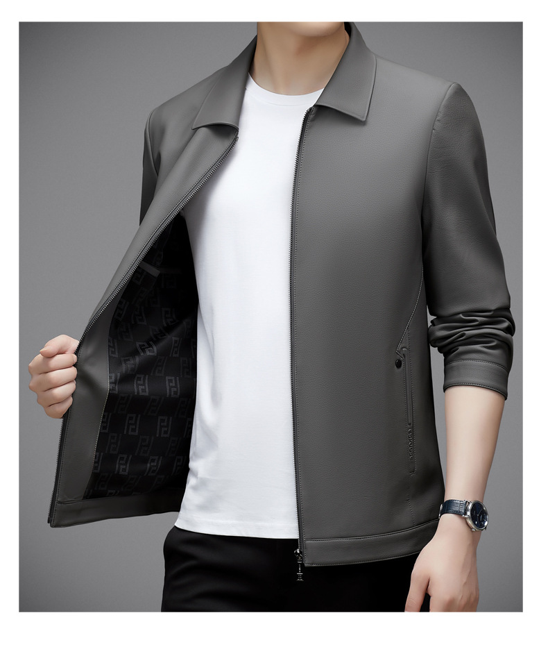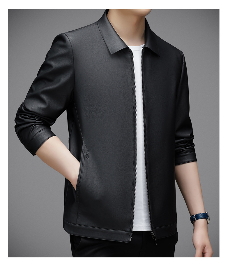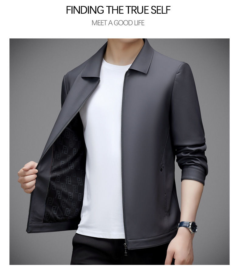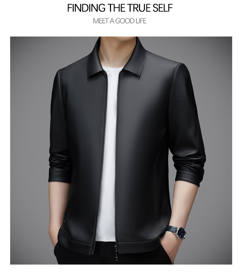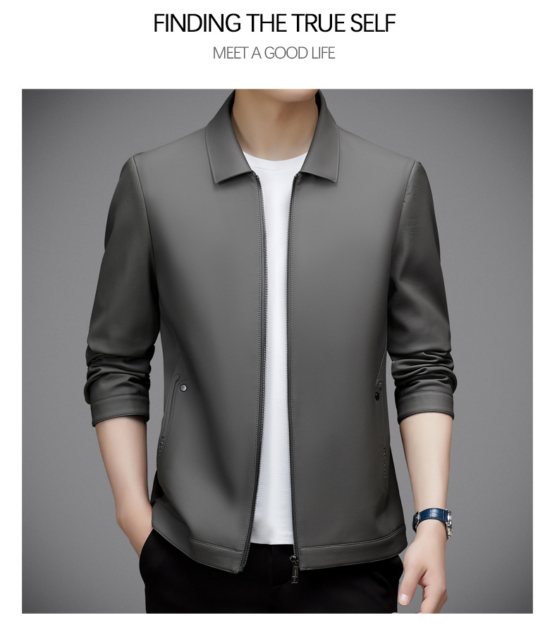 Áo khoác da nam kiểu dáng kết hợp làm việc và đi chơi, phù hợp tiết trời mát mẻ. Thiết kế cổ bẻ lịch sự, chất liệu da tổng hợp bền đẹp và dễ bảo quản. Sản phẩm có nhiều size số cho người trung niên, mặc vừa vặn thoải mái. Có thể mặc trực tiếp bên ngoài áo thun hoặc áo sơ mi, phối cùng quần tây hay quần jeans đều phù hợp. Dùng khăn mềm lau sạch bề mặt sau khi sử dụng. | Tên sản phẩm: Áo Da Nam Kín Cổ Hàng Mùa Xuân Thu Đông Trung Niên - Thời Trang Nam | Mã sản phẩm: B6991 - Giá: 2.190.000đ | Mã nhà sản xuất: QUDL-G05Hình ảnh sản phẩm
