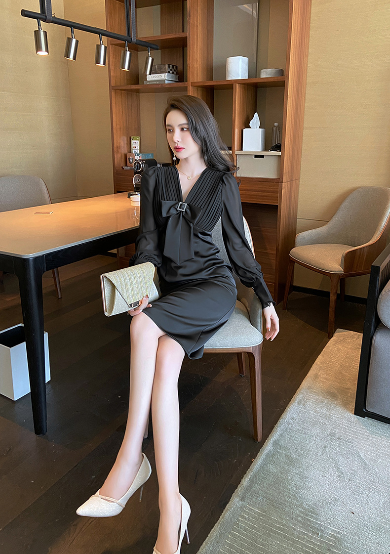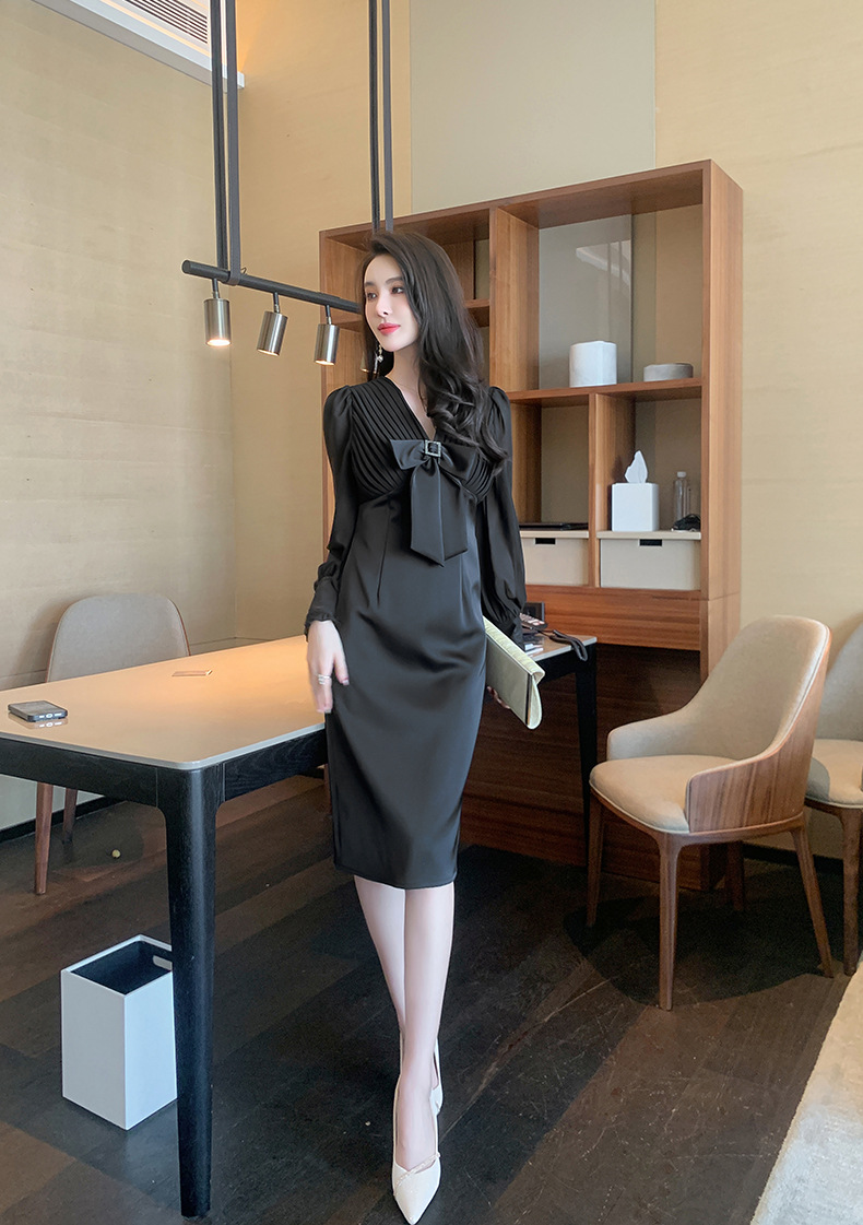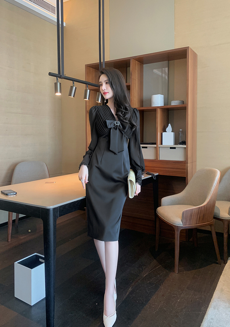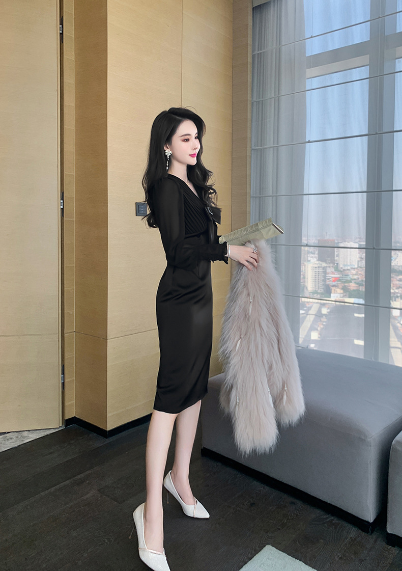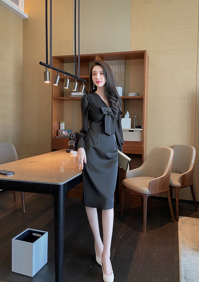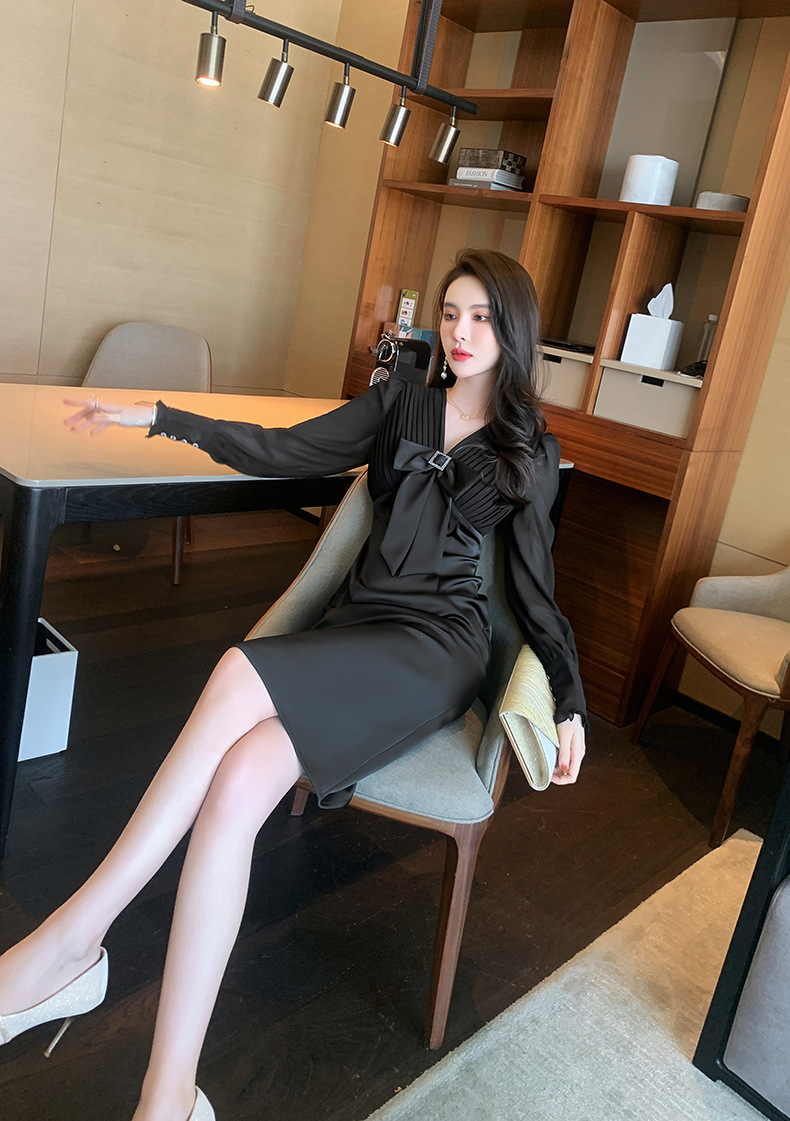 Chiếc đầm dạ hội màu đen mang phong cách thanh lịch, lấy cảm hứng từ những thiết kế cổ điển. Cổ chữ V tạo điểm nhấn tinh tế, kết hợp cùng nơ thắt eo giúp tôn lên đường cong cơ thể. Tay dài và thiết kế ôm vừa vặn phù hợp cho tiết trời thu. Chất vải dày dặn, có độ rũ nhẹ. Sản phẩm phù hợp mặc trong các buổi tiệc hoặc sự kiện. | Tên sản phẩm: Váy Đầm Liền Thân Nữ Thắt Nơ Bướm Dài Tay Cổ Chữ V Trông Trẻ Hơn Tuổi Hàng Mùa Xuân Thu Đông - Thời Trang Nữ | Mã sản phẩm: B7002 - Giá: 1.190.000đ | Mã nhà sản xuất: CHDG-G04Hình ảnh sản phẩm