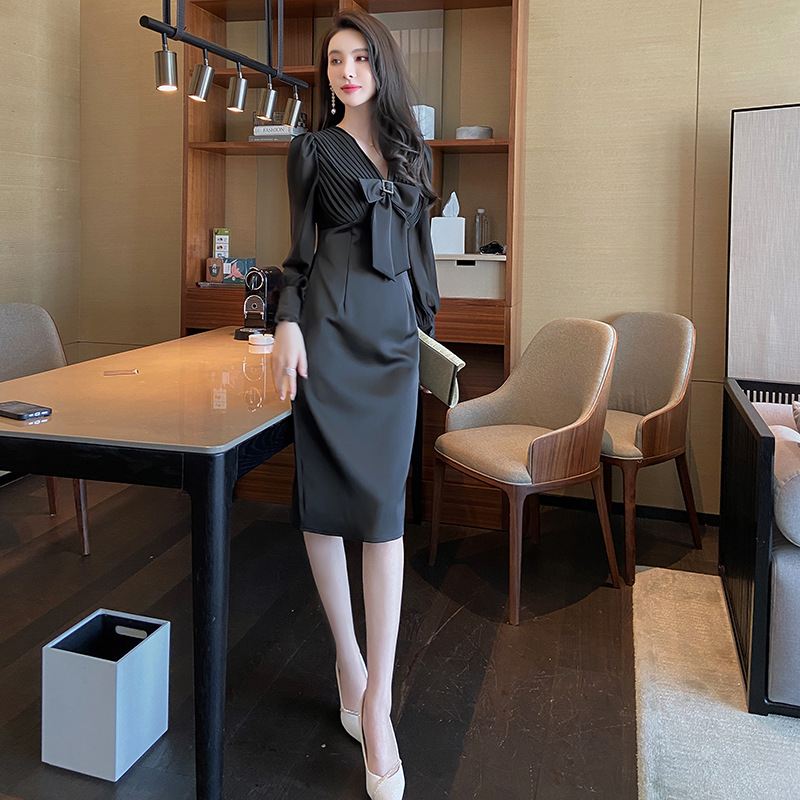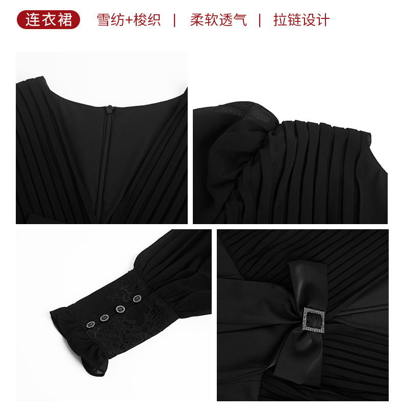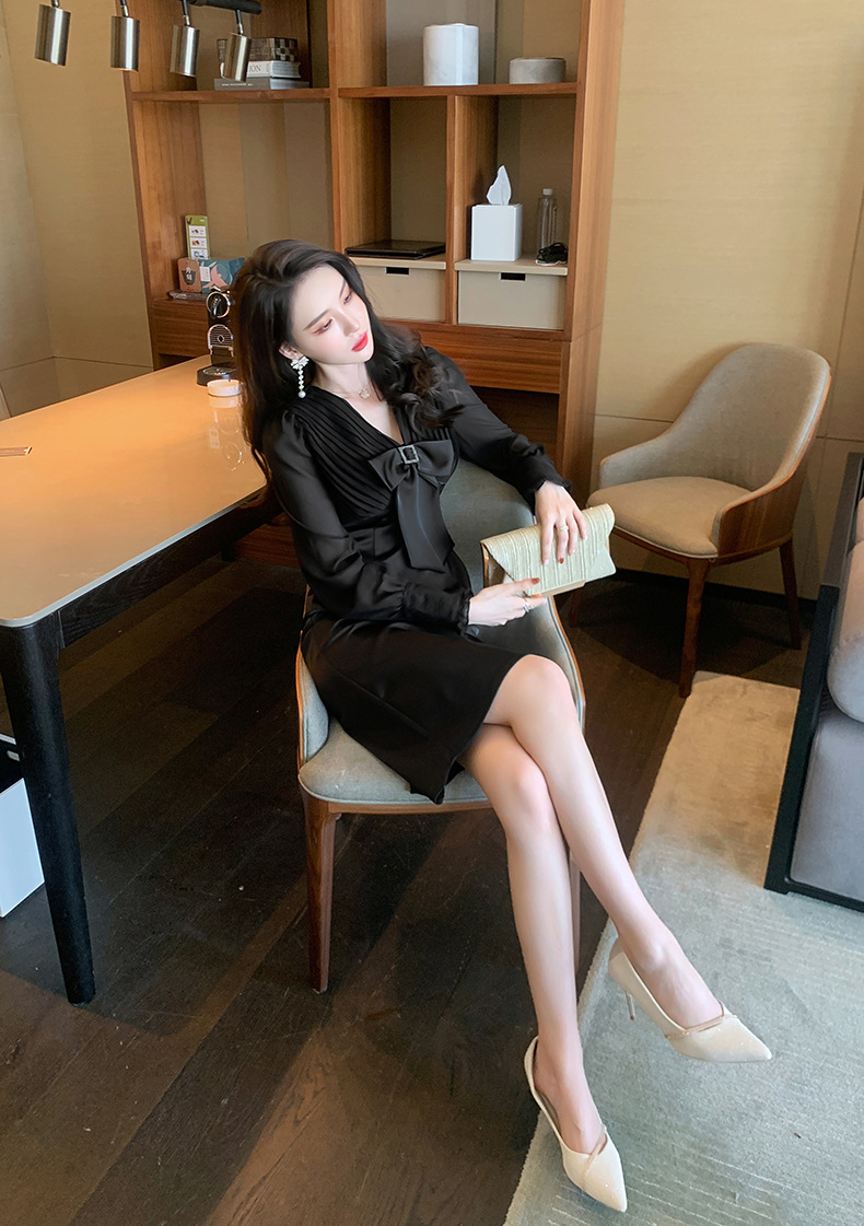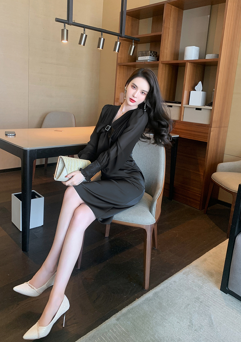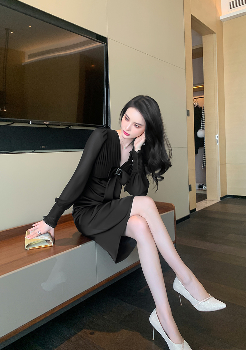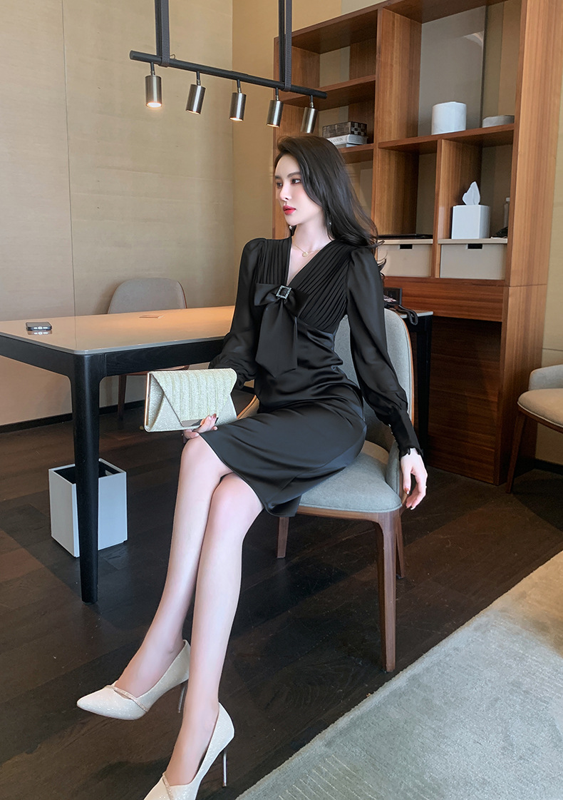 Chiếc đầm dạ hội màu đen mang phong cách thanh lịch, lấy cảm hứng từ những thiết kế cổ điển. Cổ chữ V tạo điểm nhấn tinh tế, kết hợp cùng nơ thắt eo giúp tôn lên đường cong cơ thể. Tay dài và thiết kế ôm vừa vặn phù hợp cho tiết trời thu. Chất vải dày dặn, có độ rũ nhẹ. Sản phẩm phù hợp mặc trong các buổi tiệc hoặc sự kiện. | Tên sản phẩm: Váy Đầm Liền Thân Nữ Thắt Nơ Bướm Dài Tay Cổ Chữ V Trông Trẻ Hơn Tuổi Hàng Mùa Xuân Thu Đông - Thời Trang Nữ | Mã sản phẩm: B7002 - Giá: 1.190.000đ | Mã nhà sản xuất: CHDG-G04Hình ảnh sản phẩm