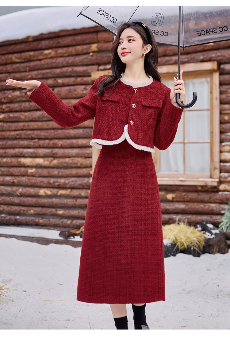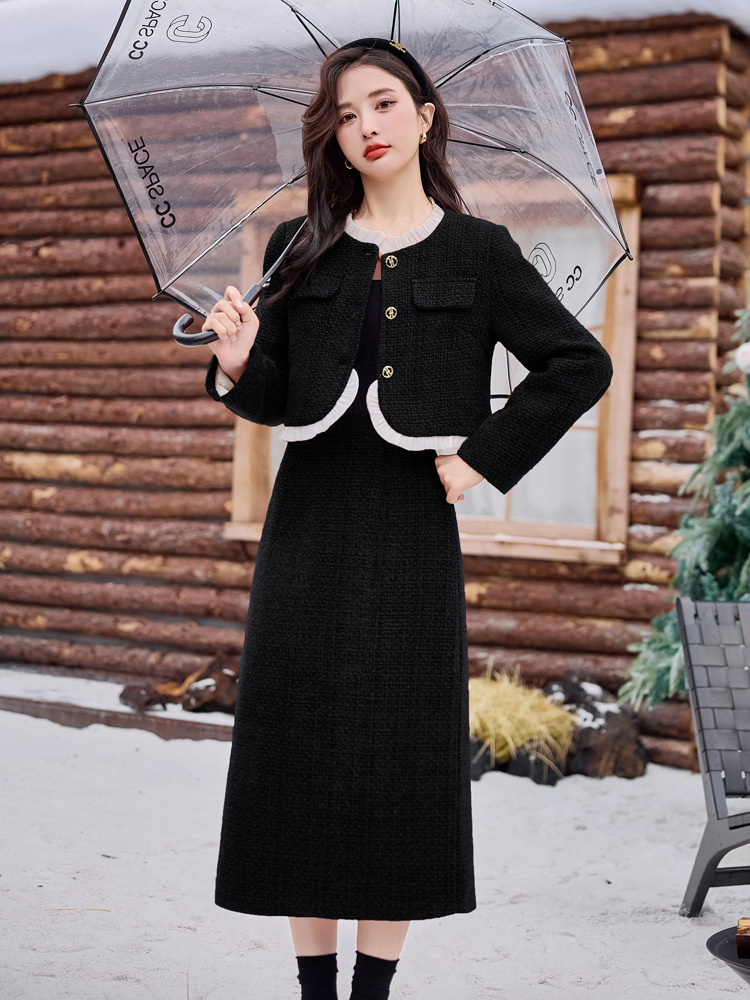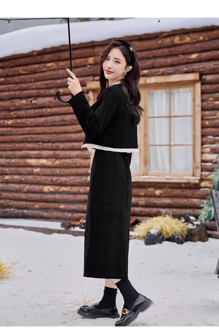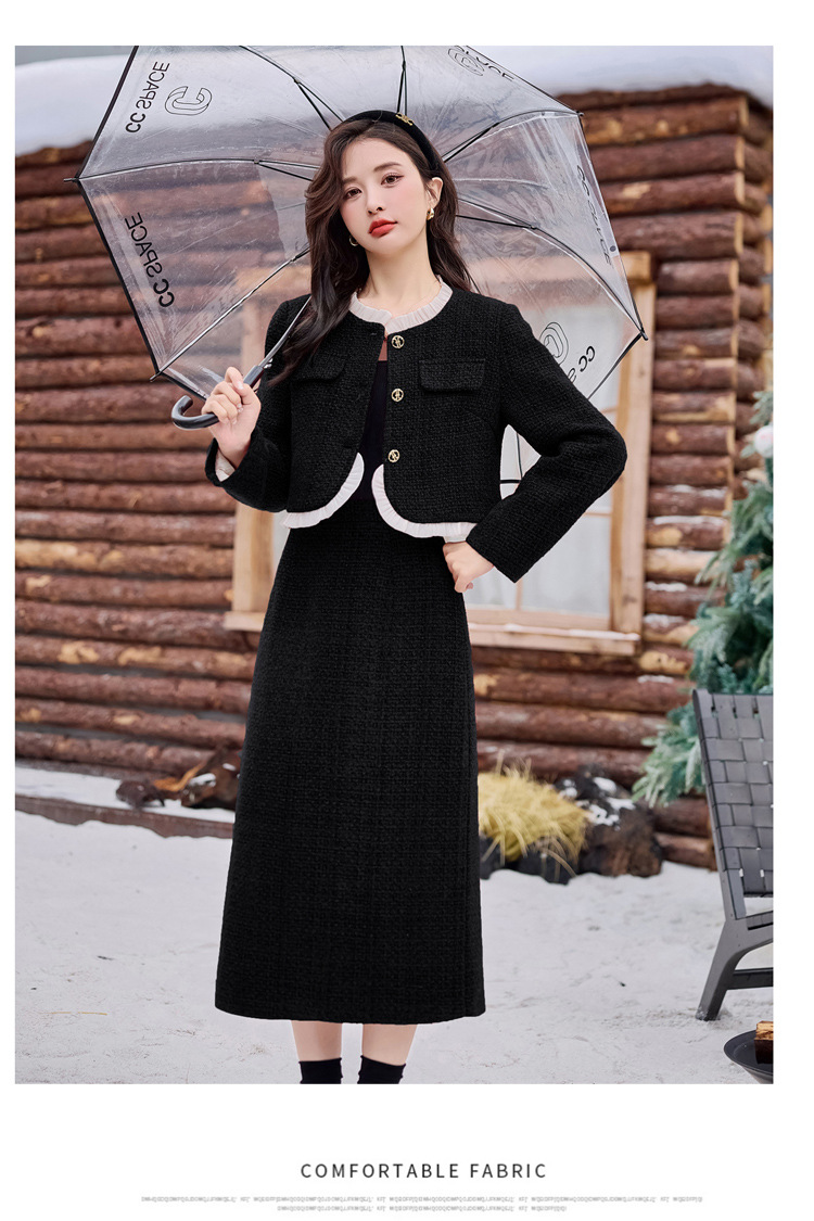 Bộ trang phục hai mảnh này gồm áo khoác ngắn và chân váy, phù hợp cho thời tiết mùa thu và mùa xuân. Áo khoác được lót lớp mỏng giữ ấm nhẹ nhàng, mặc cùng chân váy dáng ôm tạo nên vẻ thanh lịch. Kiểu dáng mang phong cách trẻ trung, dễ phối đồ. Bạn có thể mặc nguyên bộ để đi làm hoặc dạo phố, cũng có thể tách riêng từng món để kết hợp với các trang phục khác. | Tên sản phẩm: Áo Khoác Nữ Cả Bộ 2 Món Hàng Mùa Xuân Thu Đông Phong Cách Hàn Quốc - Thời Trang Nữ | Mã sản phẩm: B7031 - Giá: 2.780.000đ | Mã nhà sản xuất: HADG-G06Hình ảnh sản phẩm