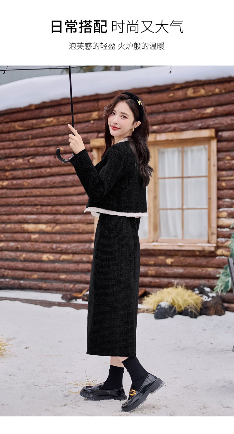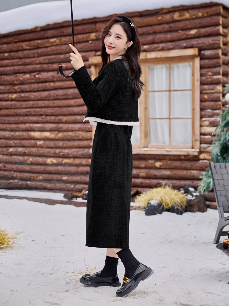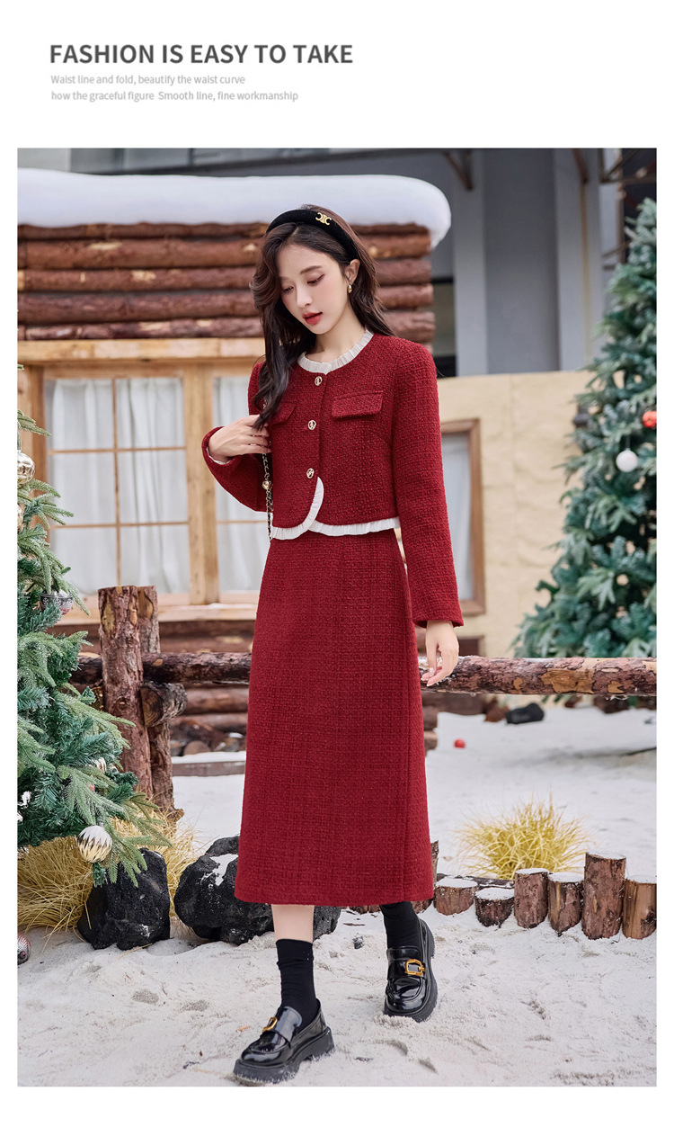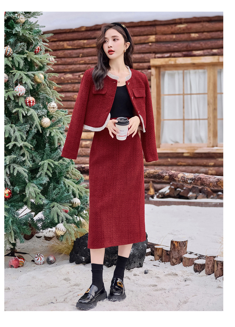 Bộ trang phục hai mảnh này gồm áo khoác ngắn và chân váy, phù hợp cho thời tiết mùa thu và mùa xuân. Áo khoác được lót lớp mỏng giữ ấm nhẹ nhàng, mặc cùng chân váy dáng ôm tạo nên vẻ thanh lịch. Kiểu dáng mang phong cách trẻ trung, dễ phối đồ. Bạn có thể mặc nguyên bộ để đi làm hoặc dạo phố, cũng có thể tách riêng từng món để kết hợp với các trang phục khác. | Tên sản phẩm: Áo Khoác Nữ Cả Bộ 2 Món Hàng Mùa Xuân Thu Đông Phong Cách Hàn Quốc - Thời Trang Nữ | Mã sản phẩm: B7031 - Giá: 2.780.000đ | Mã nhà sản xuất: HADG-G06Hình ảnh sản phẩm