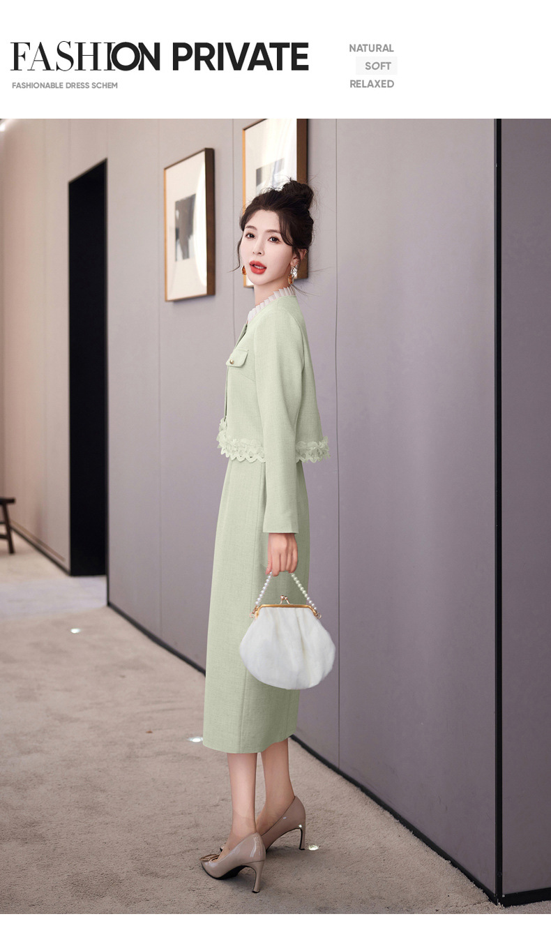 Bộ trang phục này gồm áo khoác kiểu dáng thanh lịch và chân váy ngắn, mang đến vẻ ngoại hình gọn gàng và cân đối. Chất liệu vải mềm mại, thoáng mát, phù hợp cho những dịp gặp gỡ bạn bè hoặc dạo phố vào mùa thu. Bạn có thể mặc nguyên bộ để tạo sự đồng bộ, hoặc phối áo với quần jeans, chân váy với áo thun để đa dạng phong cách. Kiểu dáng dễ mặc, dễ phối đồ, giúp bạn luôn tự tin và thoải mái trong mọi hoạt động thường ngày. | Tên sản phẩm: Áo Khoác Nữ Cả Bộ 2 Món Hàng Mùa Xuân Thu Đông - Thời Trang Nữ | Mã sản phẩm: B7038 - Giá: 1.910.000đ | Mã nhà sản xuất: HADG-G05Hình ảnh sản phẩm