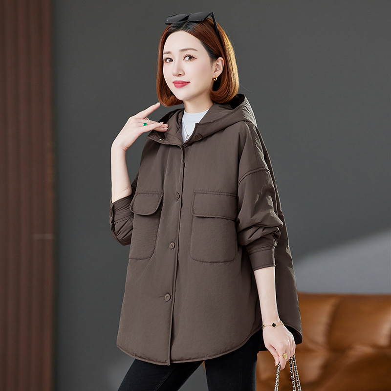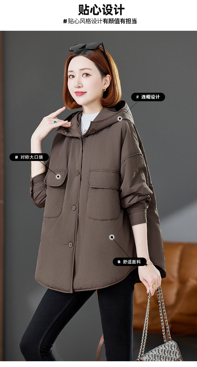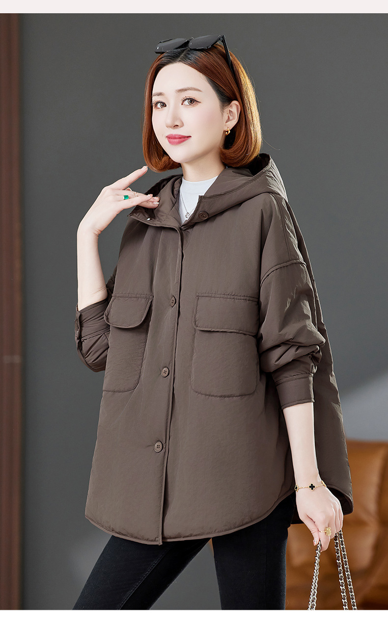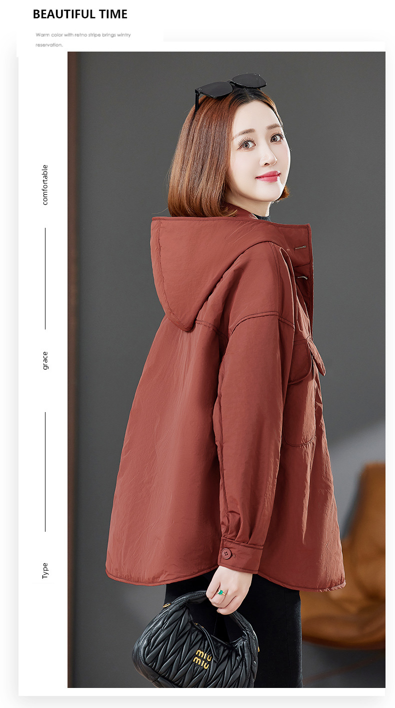 Áo khoác nữ dáng rộng có mũ, thiết kế cho mùa lạnh. Chất liệu bên trong được lót lớp bông giữ nhiệt nhẹ, giúp giữ ấm cơ thể tốt. Kiểu dáng thời trang, phù hợp cho các hoạt động hằng ngày hoặc lúc thư giãn. Bạn có thể mặc cùng áo thun và quần jeans để tạo vẻ ngoài năng động. Sản phẩm dễ dàng kết hợp với nhiều trang phục khác nhau trong tủ đồ. | Tên sản phẩm: Áo Khoác Nữ Chất Liệu Vải Bông Áo Khoác Bông Mũ Liền Hàng Mùa Xuân Thu Đông - Thời Trang Nữ | Mã sản phẩm: B7089 - Giá: 1.750.000đ | Mã nhà sản xuất: HADG-G05Hình ảnh sản phẩm