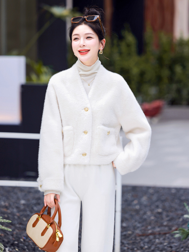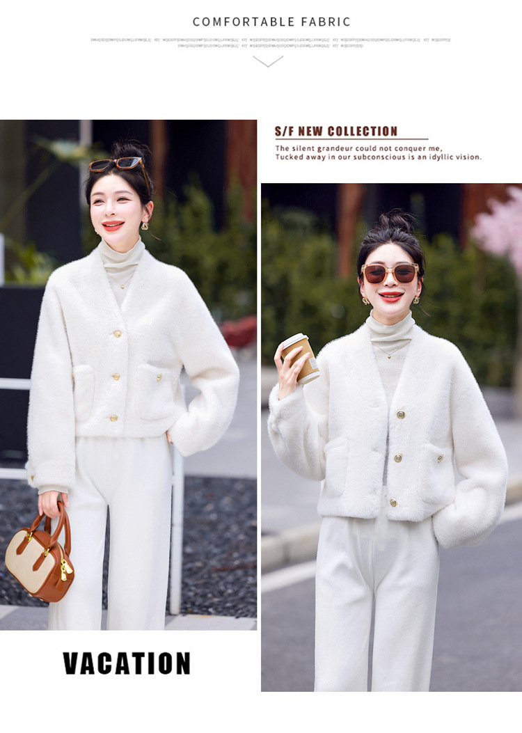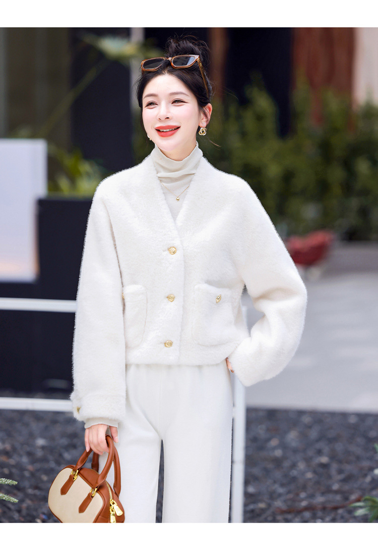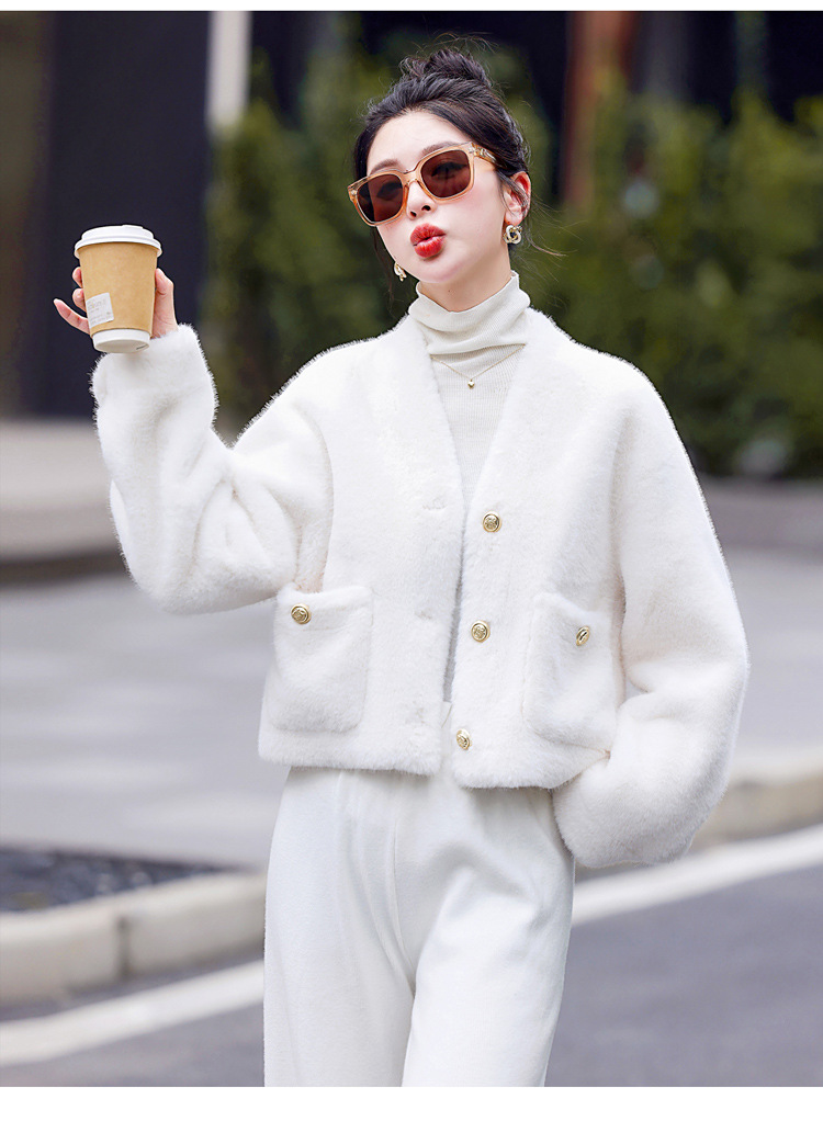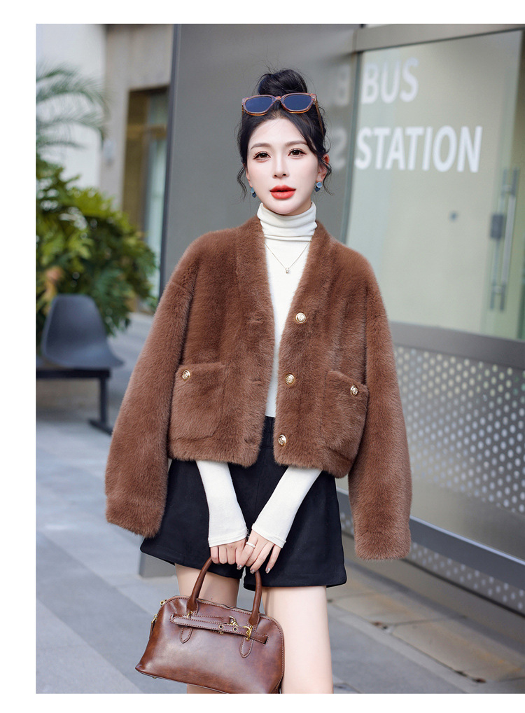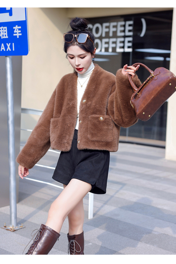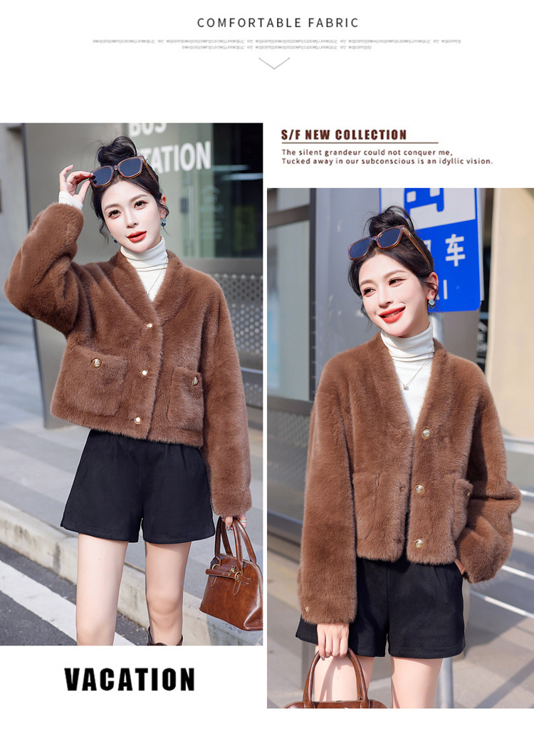 Áo khoác ngắn dáng ôm, thiết kế dành riêng cho những bạn có chiều cao khiêm tốn. Chất liệu lông mềm mại, bên trong có lớp lót ấm áp như da lông thật, giữ nhiệt tốt cho những ngày trời lạnh. Form áo ngắn gọn phối cùng cổ chữ V tạo cảm giác thanh thoát, dễ dàng phối với nhiều loại trang phục khác nhau. Mặc áo trực tiếp, phù hợp khi đi làm, đi chơi hay dạo phố. | Tên sản phẩm: Áo Khoác Nữ Dày Ấm Hàng Mùa Xuân Thu Đông - Thời Trang Nữ | Mã sản phẩm: B7117 - Giá: 1.650.000đ | Mã nhà sản xuất: HADG-G05Hình ảnh sản phẩm