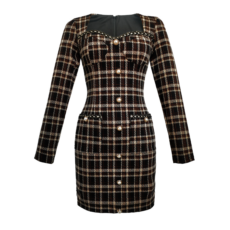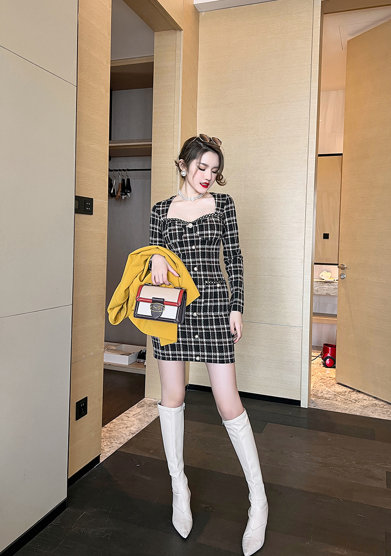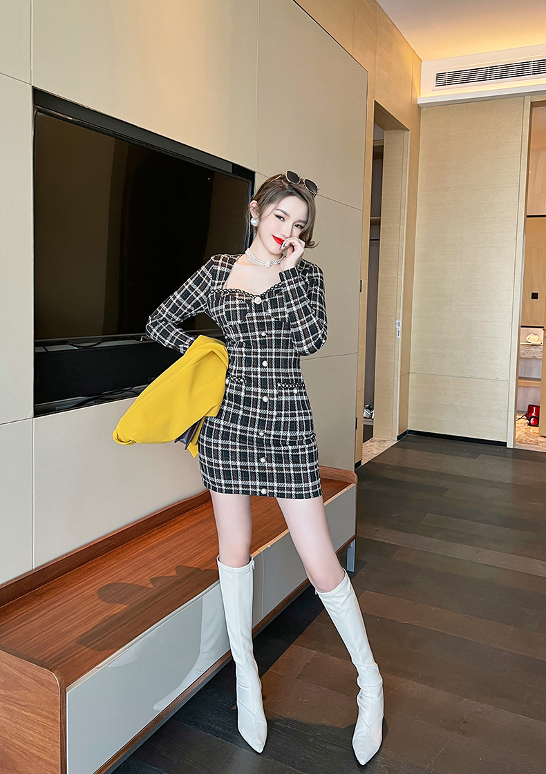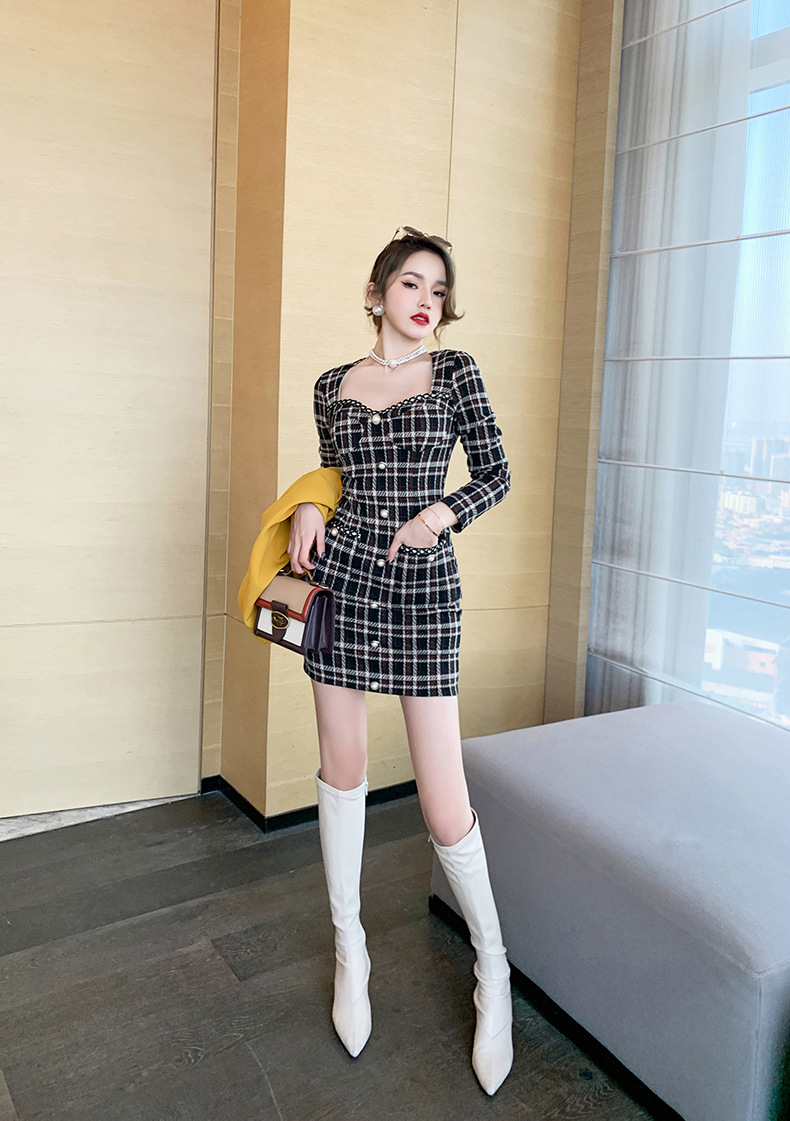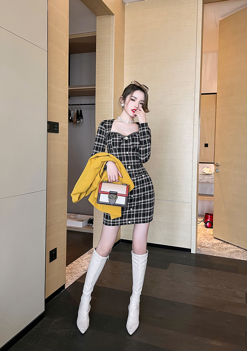 Chiếc váy này có cổ vuông và họa tiết ô kẻ mang phong cách cổ điển. Thiết kế ôm dáng với eo thắt và phần váy bó mông, giúp tôn lên đường nét cơ thể. Đây là mẫu thiết kế mới cho mùa thu, phù hợp với các bạn có vóc dáng nhỏ nhắn. Bạn có thể mặc váy đi làm, dự tiệc hoặc gặp mặt bạn bè. Sản phẩm dễ dàng phối với giày cao gót hoặc giày đế bằng để tạo nên những vẻ ngoài khác nhau. | Tên sản phẩm: Váy Đầm Liền Thân Nữ Kẻ Caro Kẻ Caro Hàng Mùa Xuân Thu Đông Phục Cổ Cổ Điển - Thời Trang Nữ | Mã sản phẩm: B7131 - Giá: 1.190.000đ | Mã nhà sản xuất: CHDG-G04Hình ảnh sản phẩm