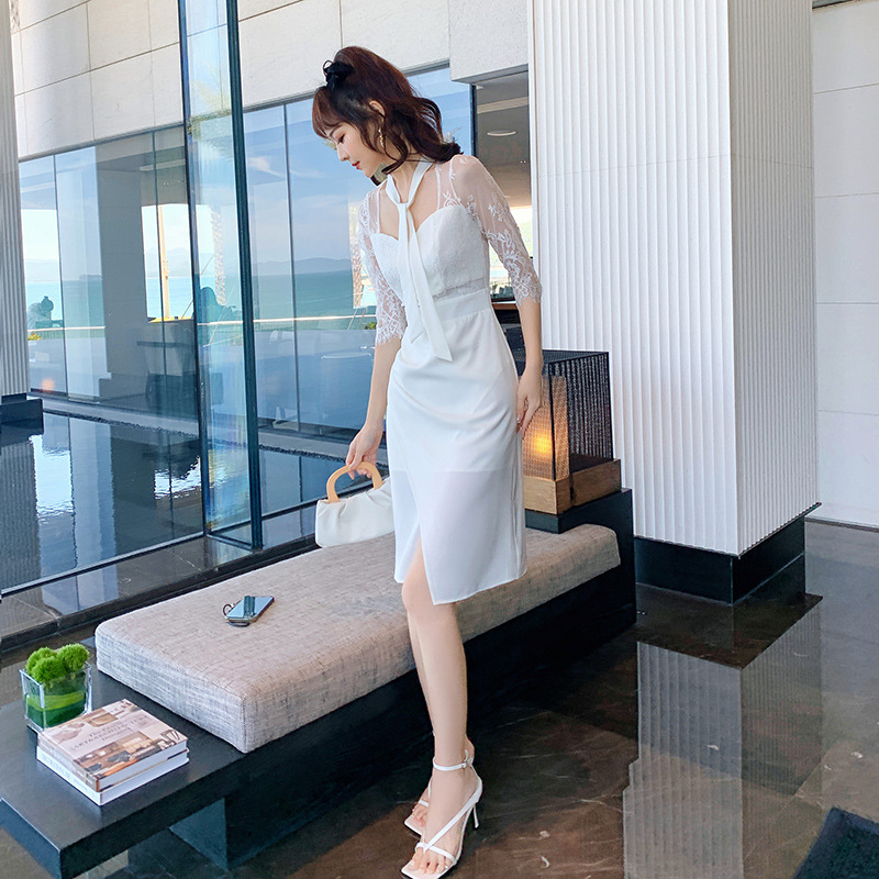 Đầm nữ dáng ôm với điểm nhấn là phần tay áo dài bảy phần, tạo cảm giác thanh thoát. Chất liệu có phối kết ren mỏng nhẹ ở một số chi tiết, mang đến vẻ đẹp quyến rũ và hiện đại. Kiểu dáng này giúp tôn lên các đường nét cơ thể một cách tinh tế. Sản phẩm phù hợp để mặc trong nhiều dịp khác nhau, từ dạo phố đến các buổi gặp mặt. Bạn có thể phối cùng giày cao gót và túi xách nhỏ để hoàn thiện bộ trang phục. | Tên sản phẩm: Váy Đầm Liền Thân Nữ Chất Liệu Ren Dáng Ôm Hàng Mùa Xuân Thu Đông - Thời Trang Nữ | Mã sản phẩm: B7157 - Giá: 1.050.000đ | Mã nhà sản xuất: CHDG-G03Hình ảnh sản phẩm