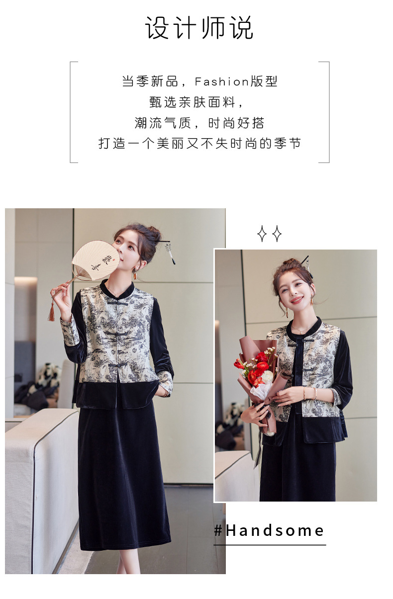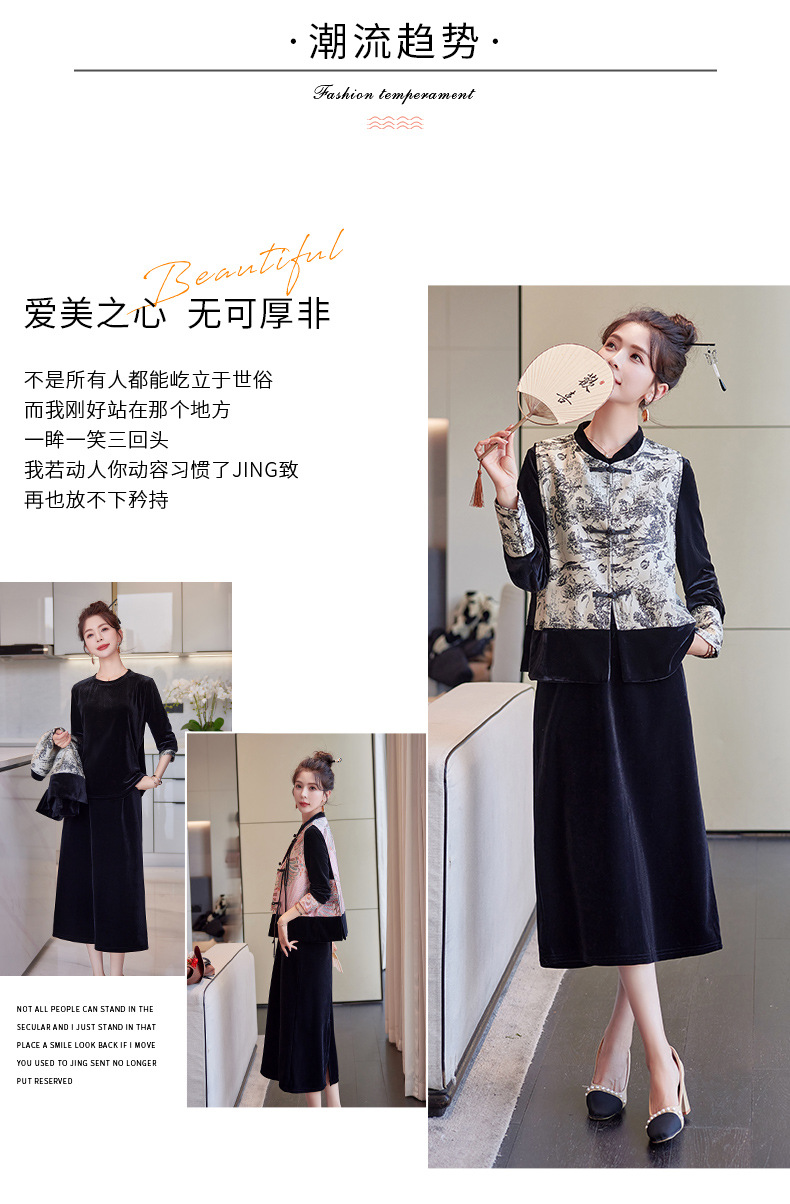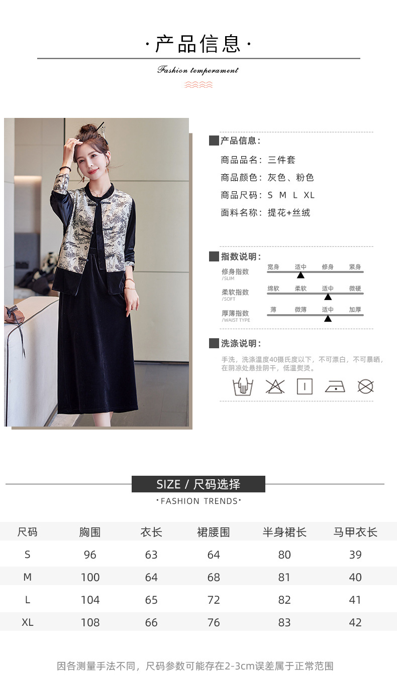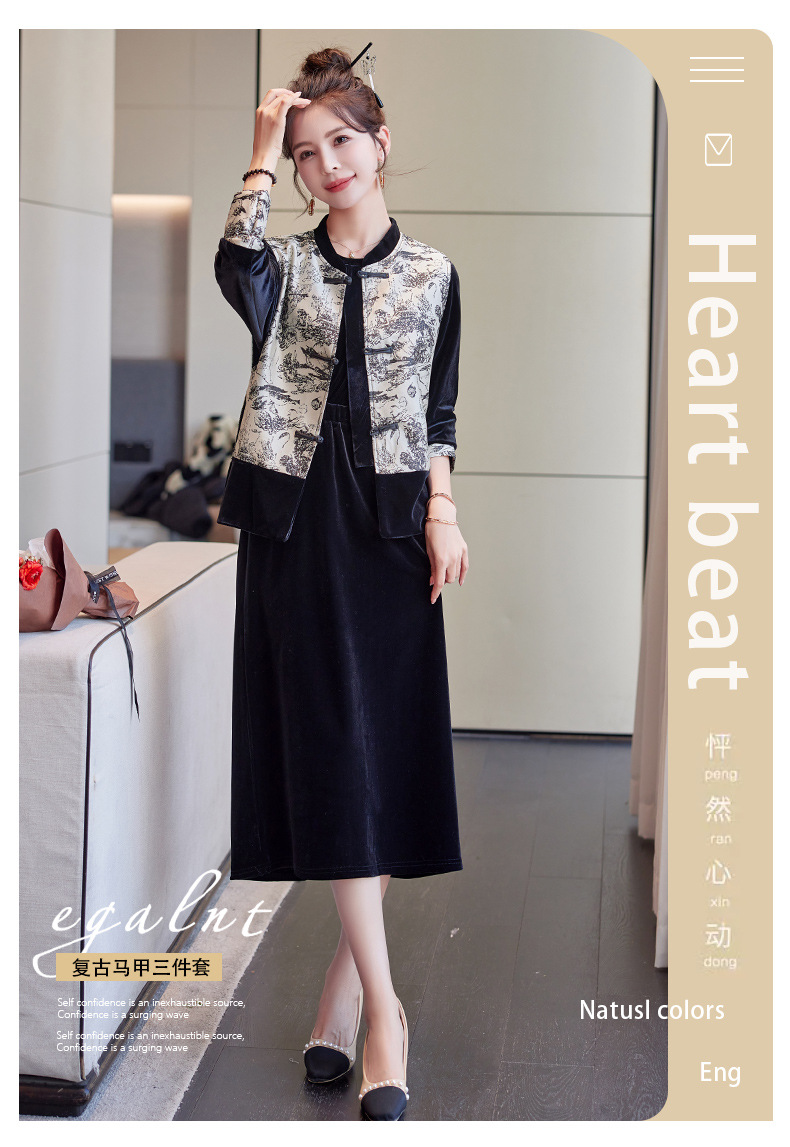 Bộ trang phục mới cho mùa xuân và thu, gồm ba món: áo khoác dạng vét không tay, áo dài tay và váy dài. Kiểu dáng mang nét đẹp truyền thống nhưng vẫn rất hợp thời. Chất vải mềm mại, tạo cảm giác dễ chịu khi mặc. Phù hợp cho nhiều dịp khác nhau. Cách phối đồ đơn giản, mặc nguyên bộ hoặc kết hợp với các trang phục khác đều phù hợp. | Tên sản phẩm: Đồ Bộ Nữ Dài Tay Cả Bộ 3 Món Hàng Mùa Xuân Thu Đông - Thời Trang Nữ | Mã sản phẩm: B7167 - Giá: 1.810.000đ | Mã nhà sản xuất: HADG-G05Hình ảnh sản phẩm