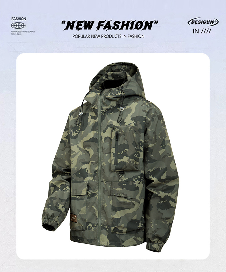 Áo khoác nam có mũ trùm, kiểu dáng rộng rãi thoải mái, phù hợp cho tiết trời mùa xuân và mùa thu. Chất liệu bền chắc, được thiết kế theo dáng áo lao động tiện lợi với nhiều túi. Họa tiết ngụy trang mang đến vẻ ngoại hình khỏe khoắn, năng động. Sản phẩm dễ dàng phối cùng nhiều loại trang phục như quần jean hay quần kaki. Mặc hằng ngày hoặc khi tham gia các hoạt động ngoài trời đều rất phù hợp. | Tên sản phẩm: Áo Khoác Nam Mũ Liền Hàng Mùa Xuân Thu Đông - Thời Trang Nam | Mã sản phẩm: B7173 - Giá: 780.000đ | Mã nhà sản xuất: SHDLO-G02Hình ảnh sản phẩm