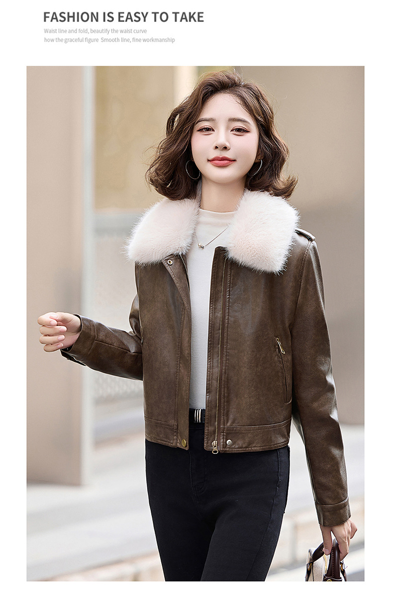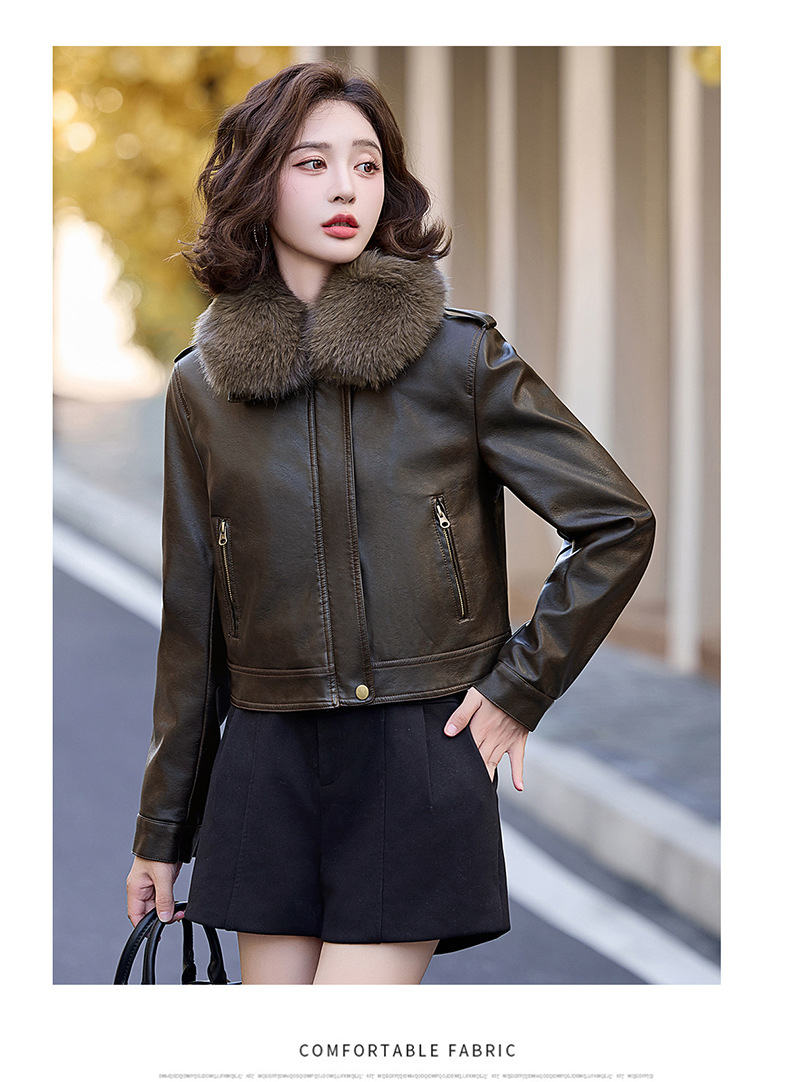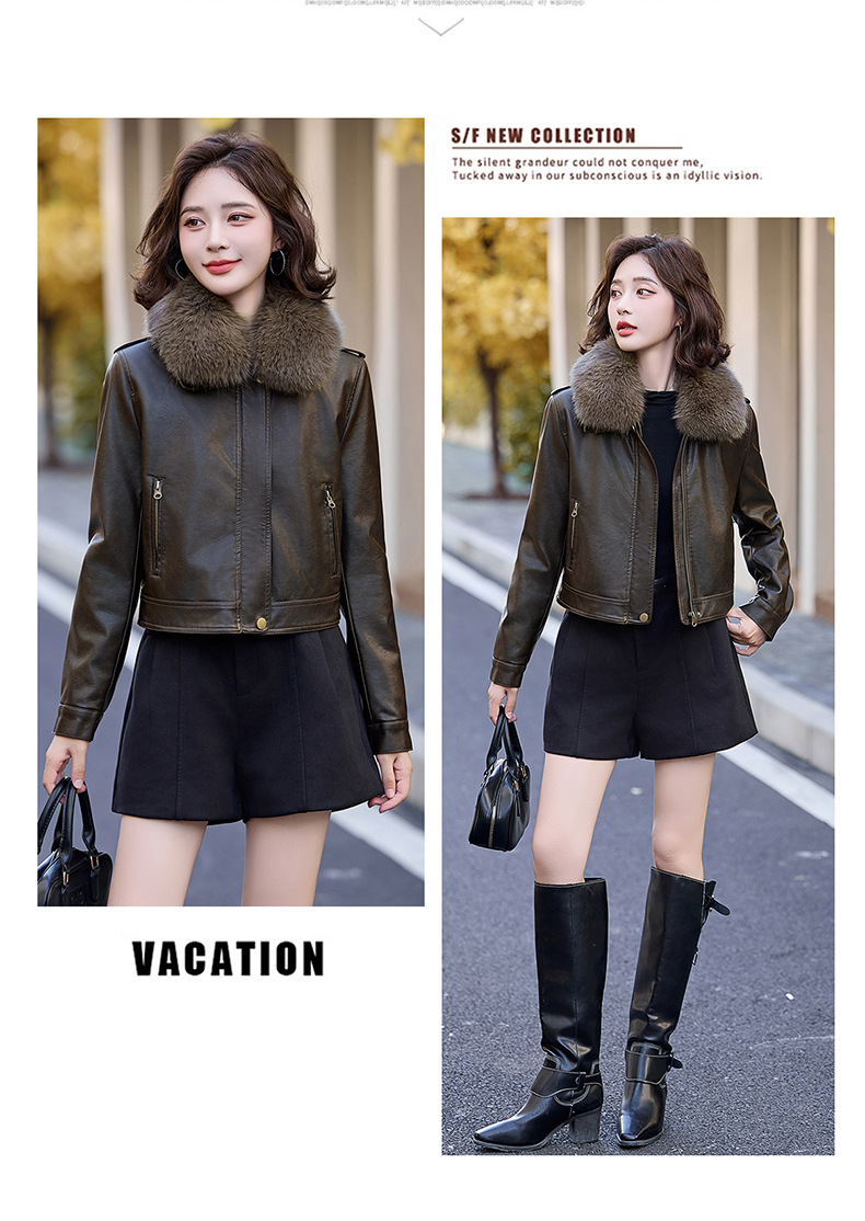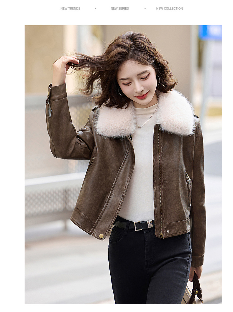 Áo khoác nữ dáng ngắn, thiết kế phù hợp cho người có vóc dáng nhỏ nhắn. Chất liệu da tổng hợp mềm mại, bên trong được lót một lớp lông ấm áp, giúp giữ nhiệt tốt trong tiết trời lạnh. Phần cổ áo có diềm lông lớn, vừa tạo điểm nhấn lại càng thêm phần ấm áp. Kiểu dáng gọn gàng, dễ dàng phối cùng nhiều trang phục khác nhau. Sản phẩm thích hợp mặc trong mùa thu và đông. | Tên sản phẩm: Áo Da Nữ Dày Ấm Hàng Mùa Xuân Thu Đông - Thời Trang Nữ | Mã sản phẩm: B7189 - Giá: 1.830.000đ | Mã nhà sản xuất: HADG-G05Hình ảnh sản phẩm