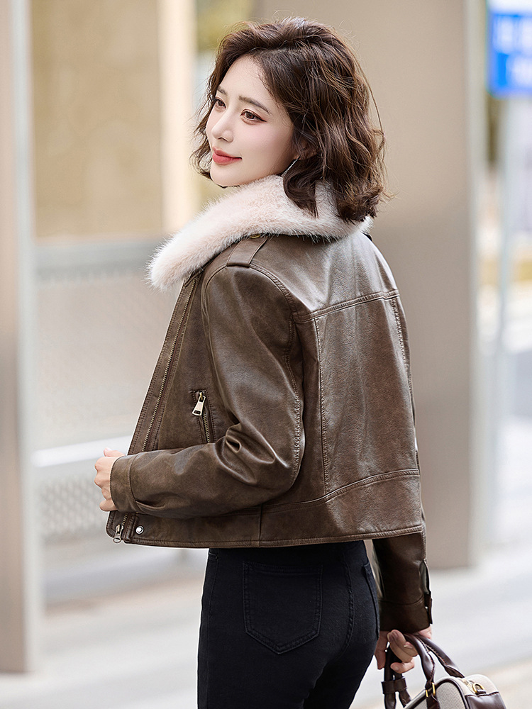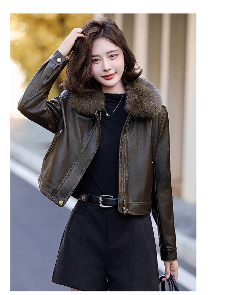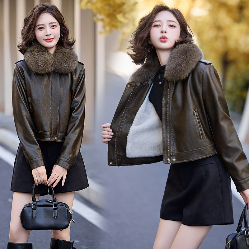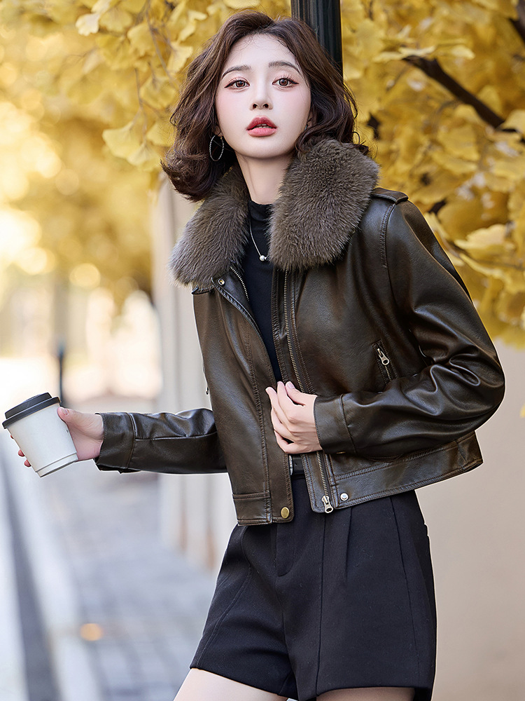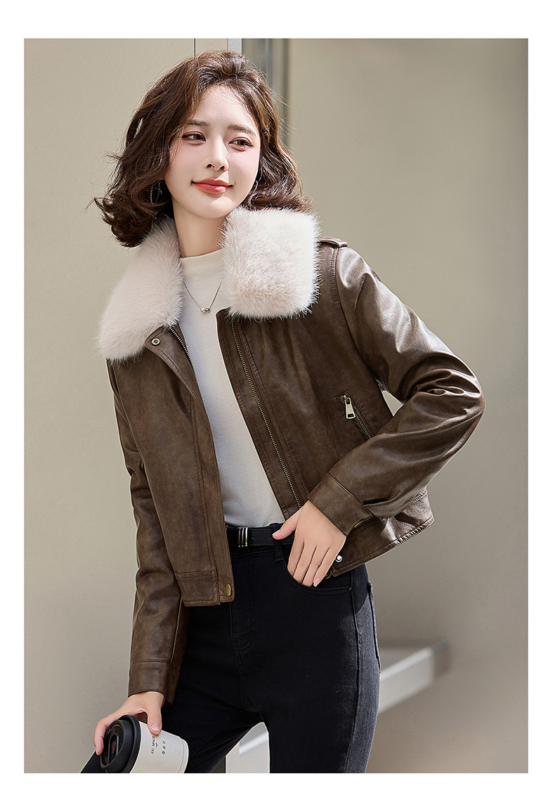 Áo khoác nữ dáng ngắn, thiết kế phù hợp cho người có vóc dáng nhỏ nhắn. Chất liệu da tổng hợp mềm mại, bên trong được lót một lớp lông ấm áp, giúp giữ nhiệt tốt trong tiết trời lạnh. Phần cổ áo có diềm lông lớn, vừa tạo điểm nhấn lại càng thêm phần ấm áp. Kiểu dáng gọn gàng, dễ dàng phối cùng nhiều trang phục khác nhau. Sản phẩm thích hợp mặc trong mùa thu và đông. | Tên sản phẩm: Áo Da Nữ Dày Ấm Hàng Mùa Xuân Thu Đông - Thời Trang Nữ | Mã sản phẩm: B7189 - Giá: 1.830.000đ | Mã nhà sản xuất: HADG-G05Hình ảnh sản phẩm