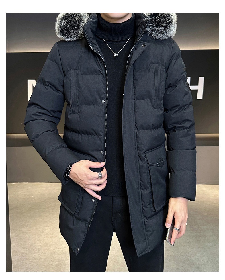 Áo khoác mùa đông dành cho nam với kiểu dáng dài vừa phải, phù hợp cho người có thân hình to cao. Sản phẩm có phần mũ trùm đầu có thể tháo rời một cách tiện lợi. Chất liệu bông dày dặn cùng phần cổ áo được viền lông lớn giúp giữ ấm hiệu quả trong thời tiết lạnh giá. Bạn có thể mặc trực tiếp như một áo khoác ngoài để gió lạnh không thể xuyên vào bên trong. | Tên sản phẩm: Áo Khoác Nam Chất Liệu Vải Bông Big Size Ngoại Cỡ Mũ Liền Dày Ấm Hàng Mùa Xuân Thu Đông - Thời Trang Nam | Mã sản phẩm: B7199 - Giá: 1.140.000đ | Mã nhà sản xuất: SHDLO-G04Hình ảnh sản phẩm