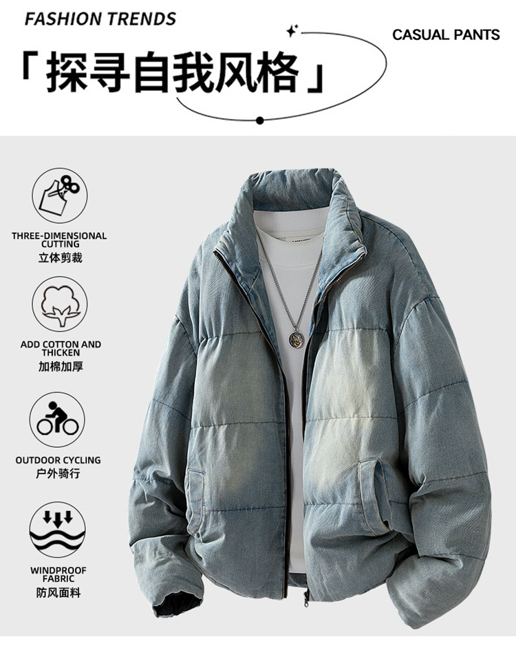 Áo khoác nam dáng rộng, cổ đứng thời trang, chất liệu vải bông dệt denim mềm mại. Sản phẩm có lớp bông giữ ấm bên trong, phù hợp mặc trong tiết trời lạnh. Kiểu dáng trẻ trung, năng động, đã qua xử lý làm mềm vải nên mang cảm giác thoải mái. Dễ dàng phối cùng nhiều loại trang phục như quần jeans hay quần kaki để tạo nên vẻ ngoài cá tính. | Tên sản phẩm: Áo Khoác Nam Chất Liệu Vải Bông Áo Khoác Bông Hàng Mùa Xuân Thu Đông - Thời Trang Nam | Mã sản phẩm: B7201 - Giá: 1.240.000đ | Mã nhà sản xuất: SHDLO-G04Hình ảnh sản phẩm