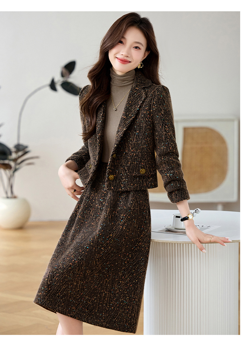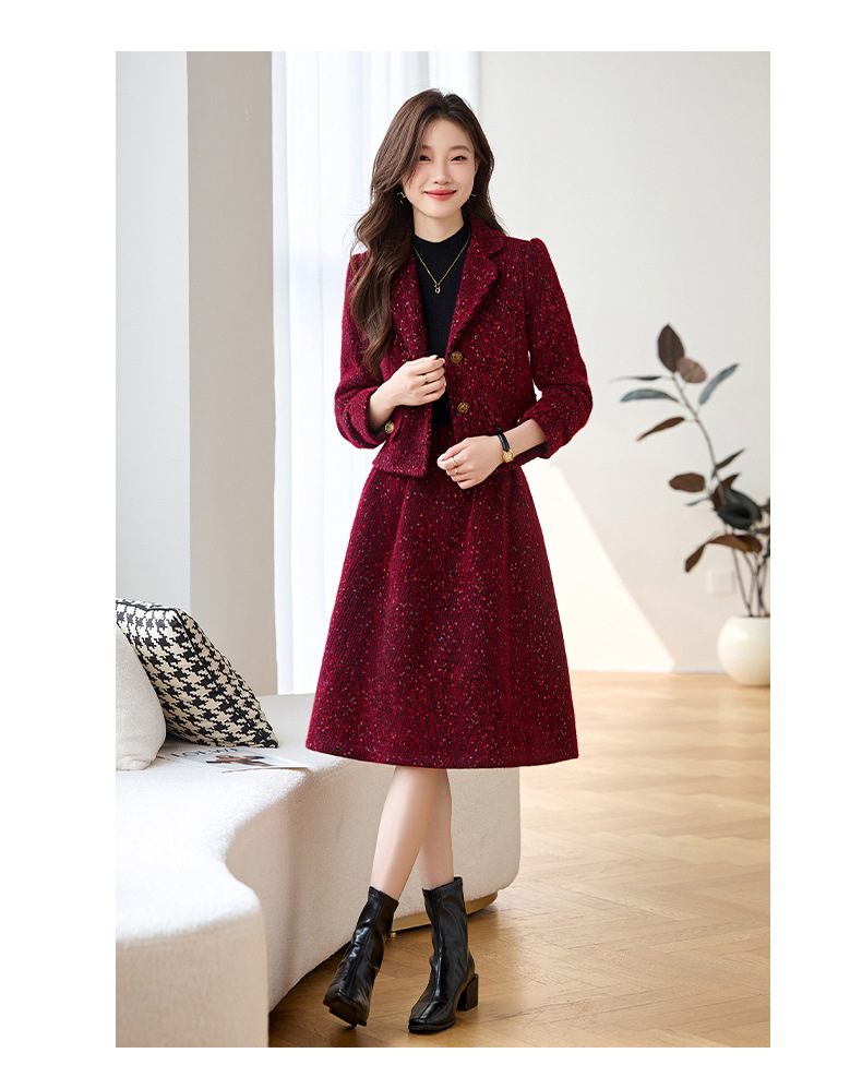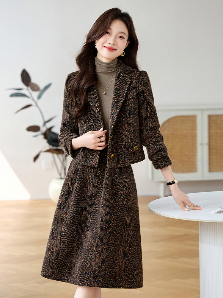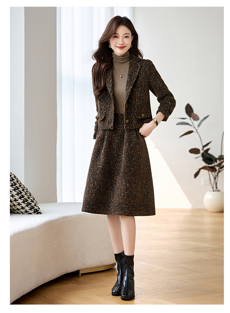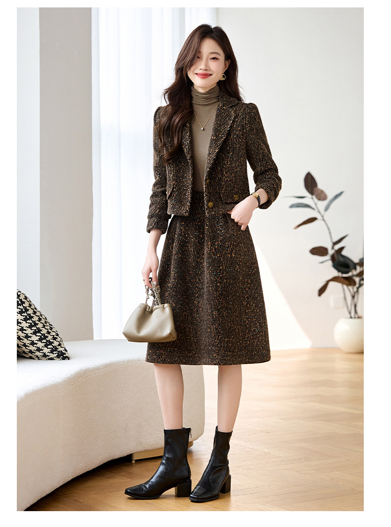 Bộ trang phục mùa thu đông này gồm áo khoác và chân váy, thiết kế tinh tế với cổ bẻ và hàng cúc đơn. Áo được may thêm lớp bông bên trong giữ ấm tốt, kết hợp cùng chân váy đồng bộ tạo vẻ thanh lịch. Chất vải mềm mại, mang lại sự dễ chịu khi mặc. Sản phẩm phù hợp cho nhiều dịp như đi làm, dạo phố hay gặp gỡ bạn bè. Có thể phối cùng áo thun bên trong và giày thể thao để tạo phong cách trẻ trung. | Tên sản phẩm: Áo Khoác Nữ Chất Liệu Vải Bông Cả Bộ 2 Món Dày Ấm Hàng Mùa Xuân Thu Đông - Thời Trang Nữ | Mã sản phẩm: B7224 - Giá: 2.130.000đ | Mã nhà sản xuất: HADG-G05Hình ảnh sản phẩm
