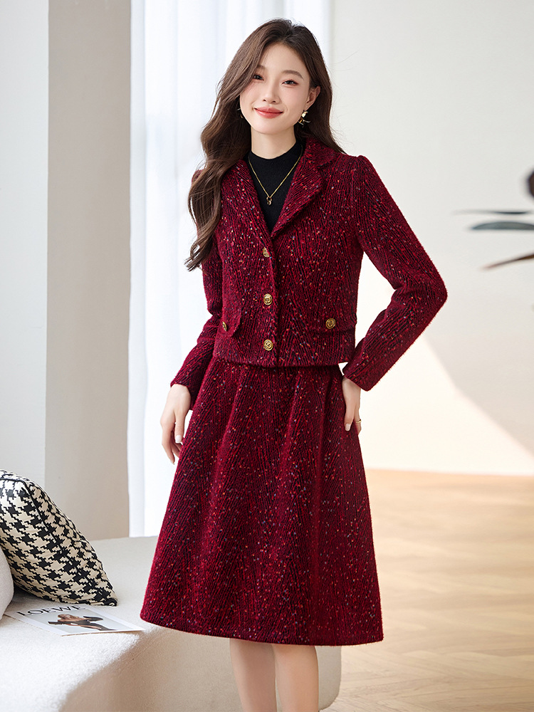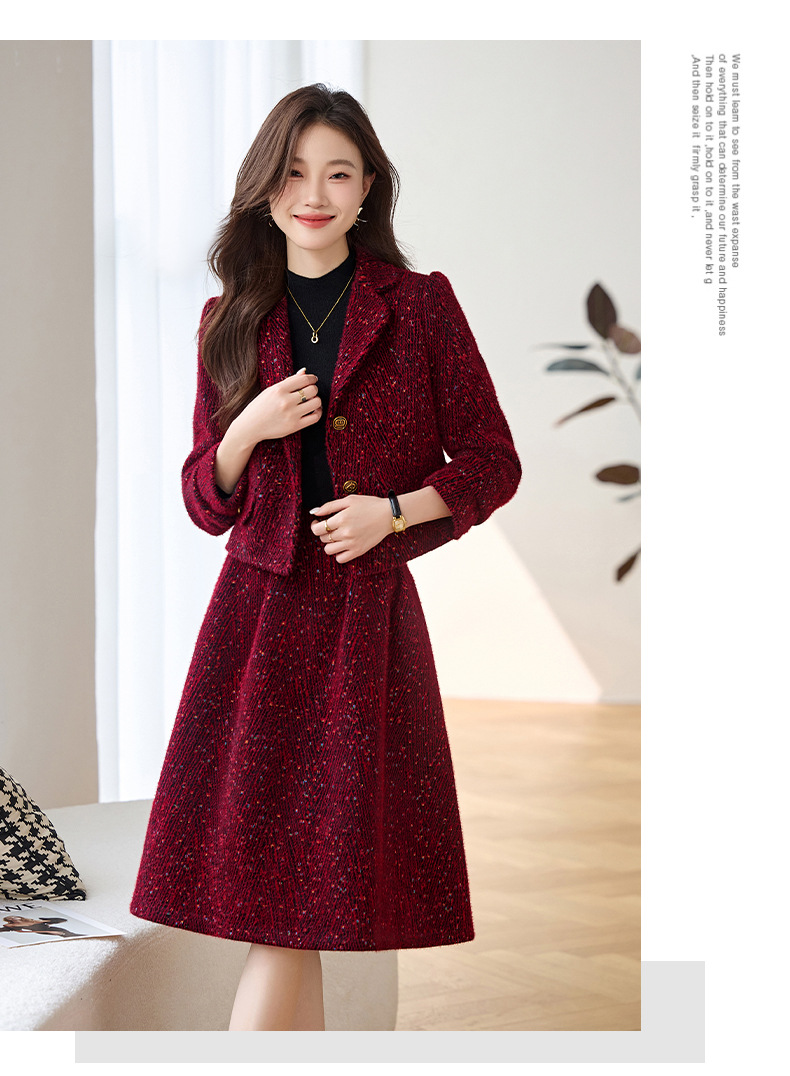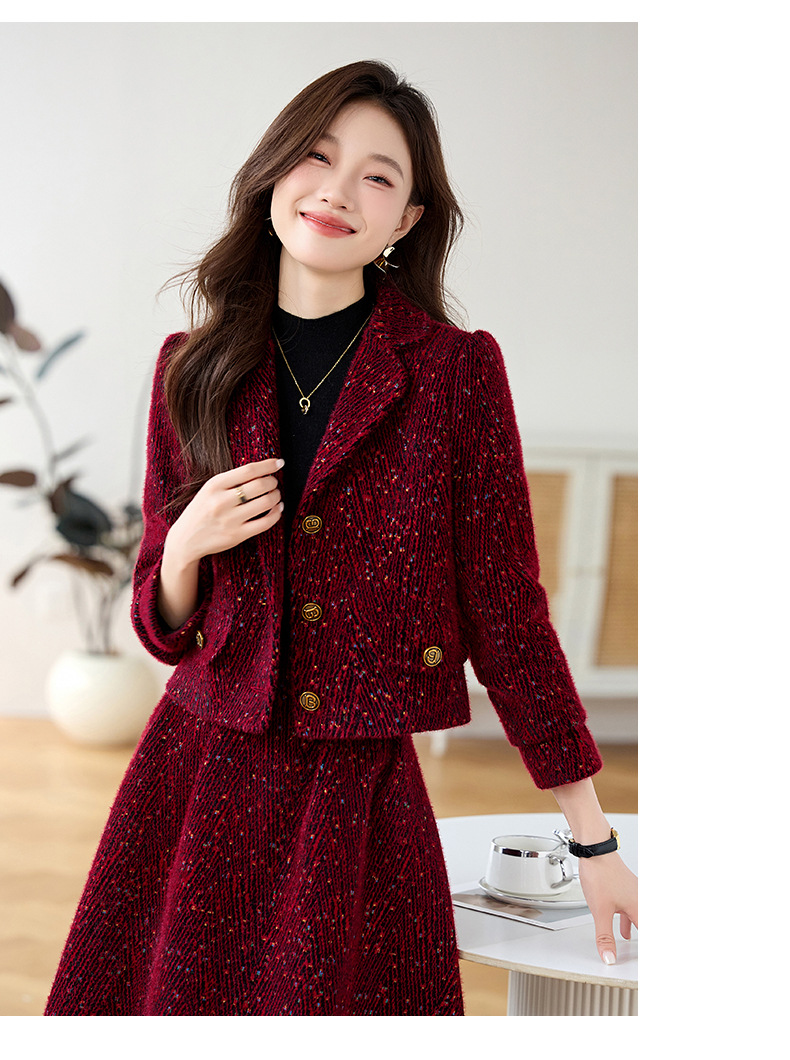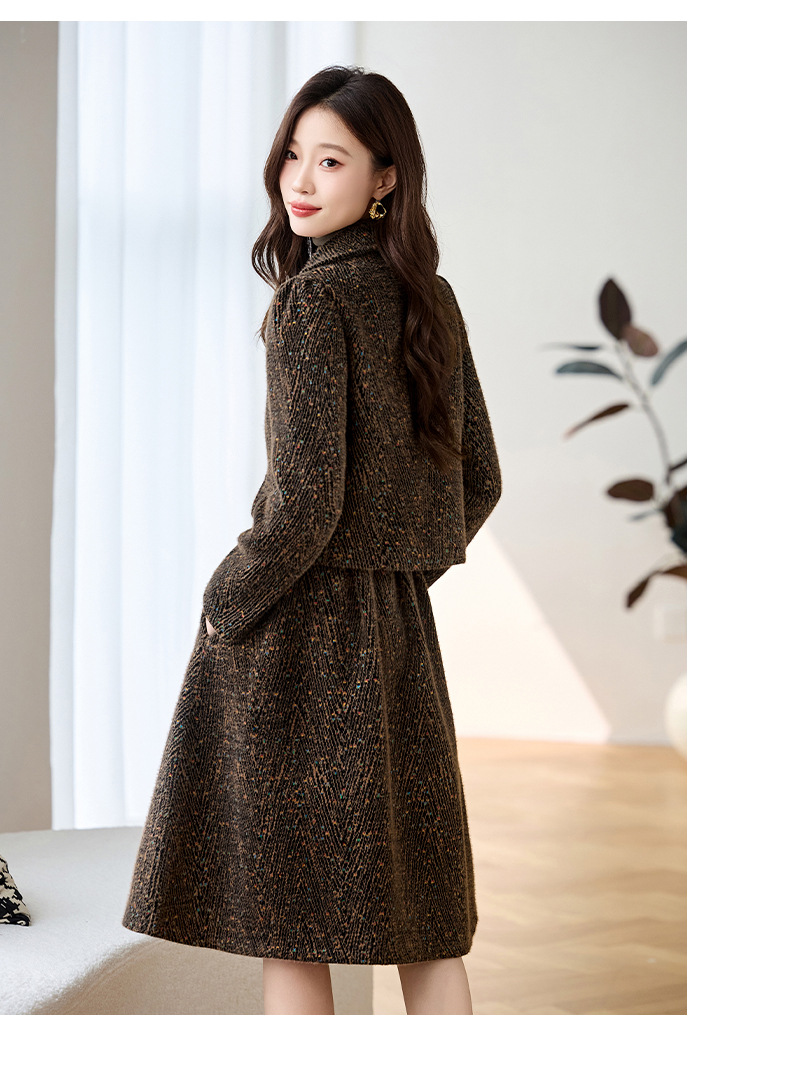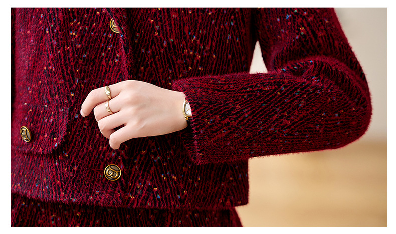 Bộ trang phục mùa thu đông này gồm áo khoác và chân váy, thiết kế tinh tế với cổ bẻ và hàng cúc đơn. Áo được may thêm lớp bông bên trong giữ ấm tốt, kết hợp cùng chân váy đồng bộ tạo vẻ thanh lịch. Chất vải mềm mại, mang lại sự dễ chịu khi mặc. Sản phẩm phù hợp cho nhiều dịp như đi làm, dạo phố hay gặp gỡ bạn bè. Có thể phối cùng áo thun bên trong và giày thể thao để tạo phong cách trẻ trung. | Tên sản phẩm: Áo Khoác Nữ Chất Liệu Vải Bông Cả Bộ 2 Món Dày Ấm Hàng Mùa Xuân Thu Đông - Thời Trang Nữ | Mã sản phẩm: B7224 - Giá: 2.130.000đ | Mã nhà sản xuất: HADG-G05Hình ảnh sản phẩm
