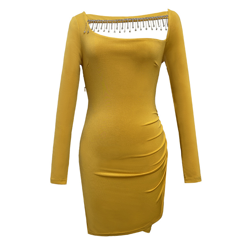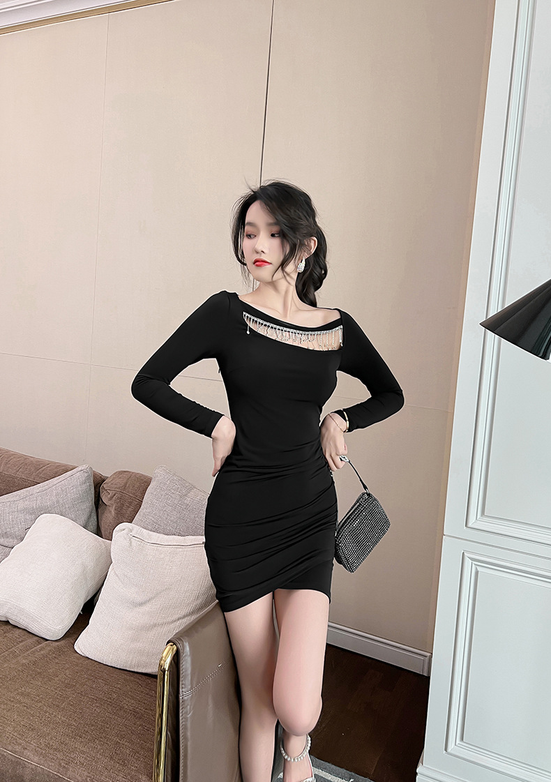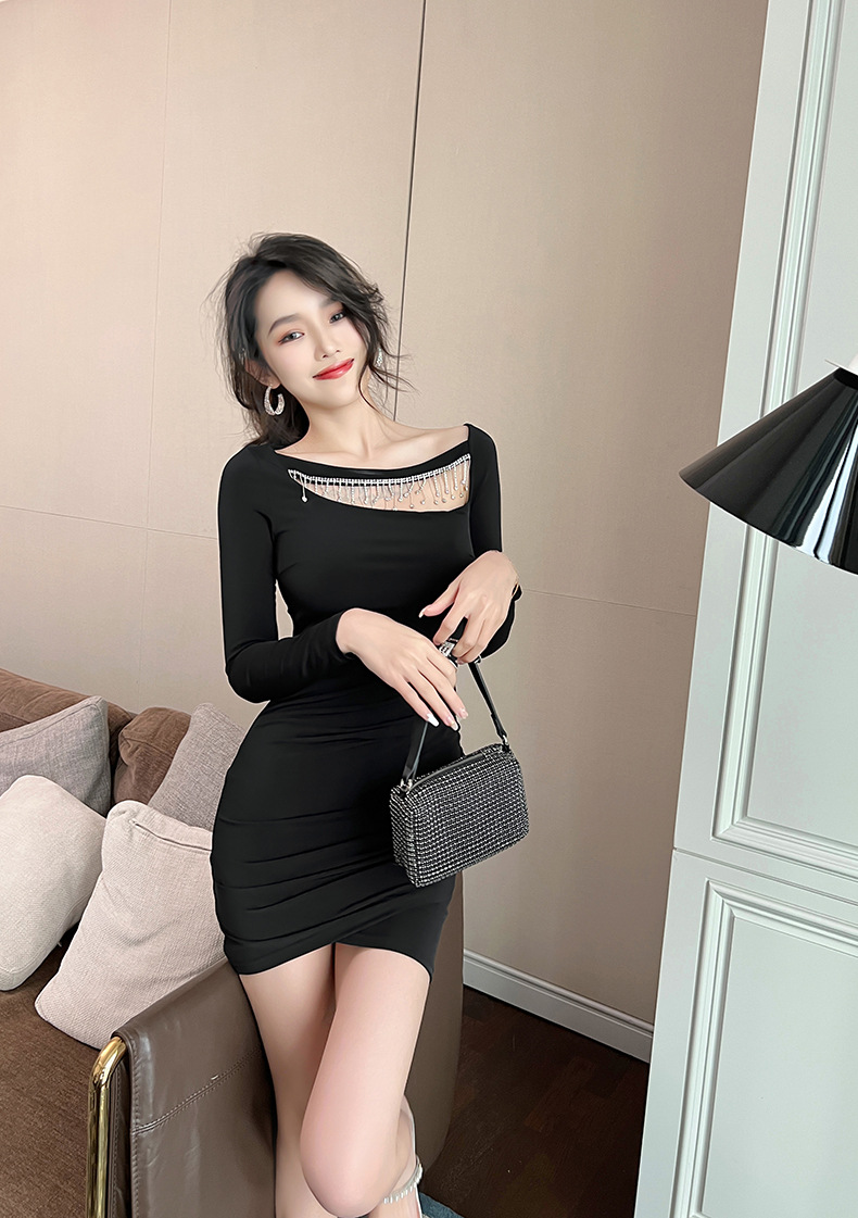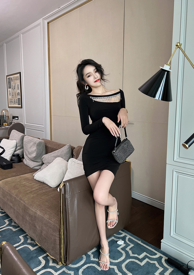 Chiếc đầm ôm sát tôn dáng với thiết kế cách điệu đầy ấn tượng. Chất vải mềm mại, thoáng mát nhờ các chi tiết xuyên thấu tinh tế. Điểm nhấn là phần viền tua rua mềm mại chuyển động theo mỗi bước chân. Kiểu dáng phù hợp cho những buổi gặp gỡ bạn bè hoặc dạo phố. Mặc cùng giày sandal hoặc bốt cổ thấp để tạo nên phong cách trẻ trung, năng động. | Tên sản phẩm: Váy Đầm Liền Thân Nữ Dáng Ôm Hàng Mùa Xuân Thu Đông - Thời Trang Nữ | Mã sản phẩm: B7267 - Giá: 1.050.000đ | Mã nhà sản xuất: CHDG-G03Hình ảnh sản phẩm