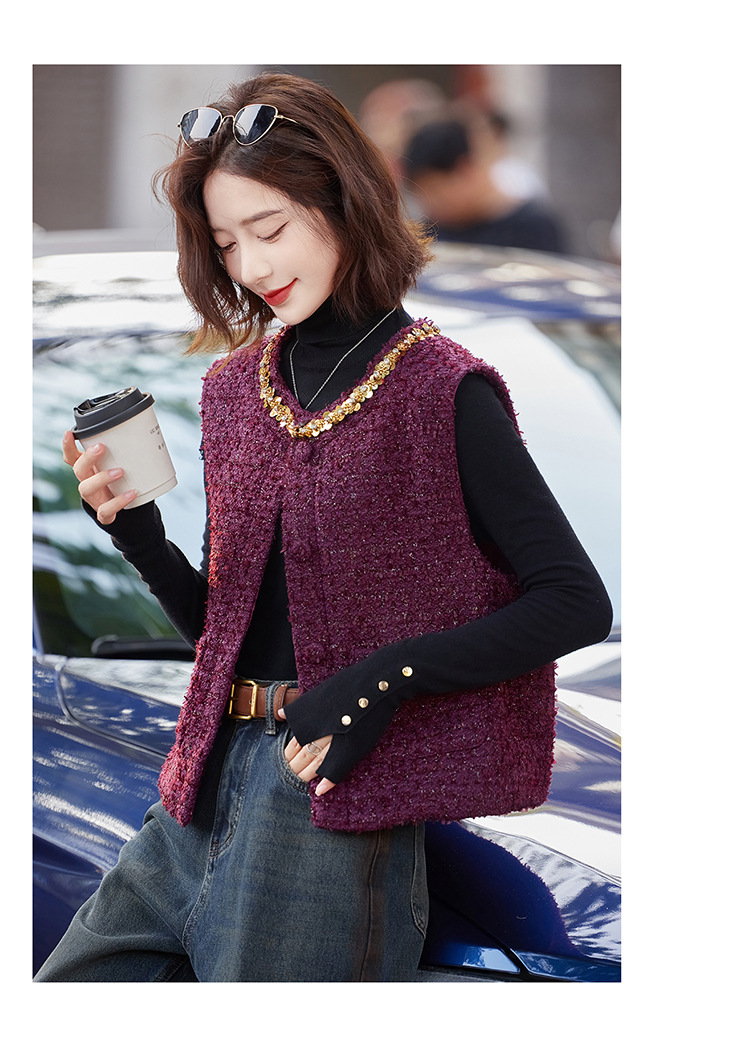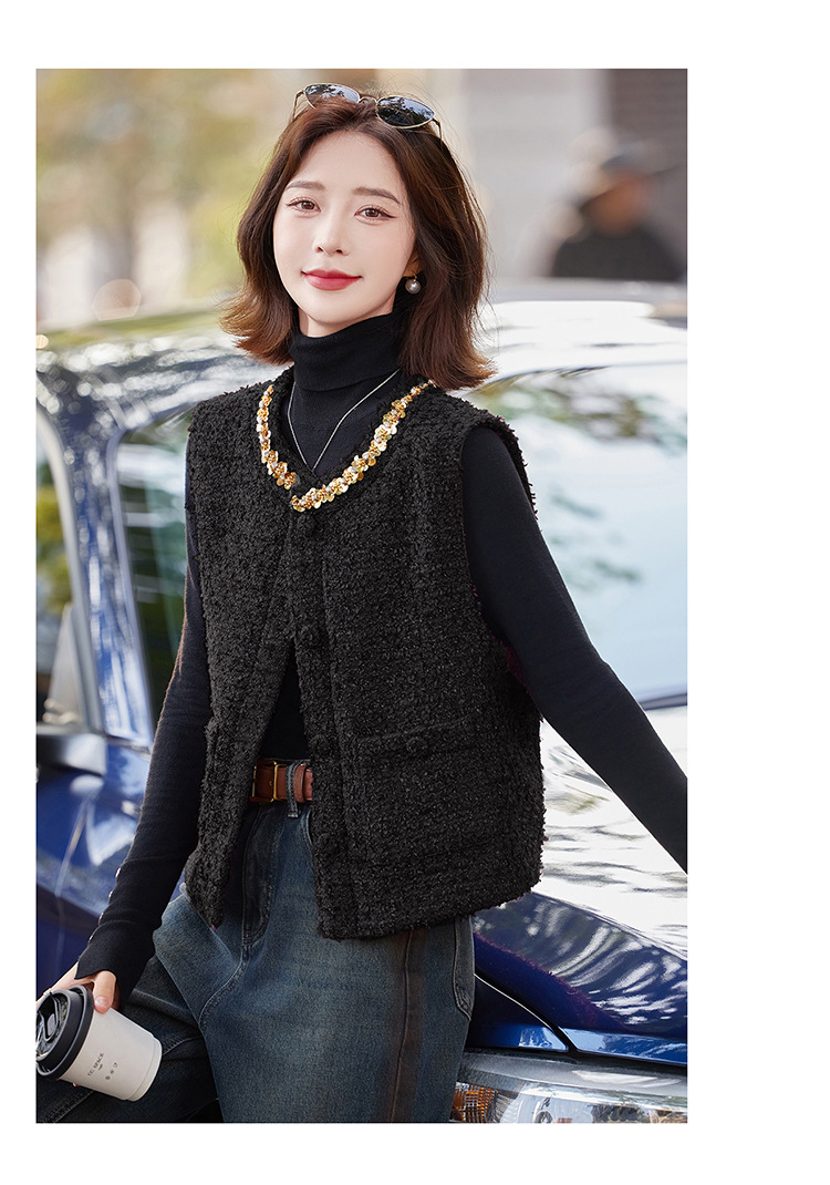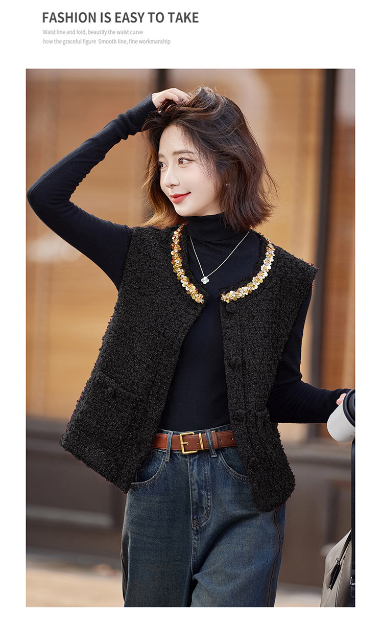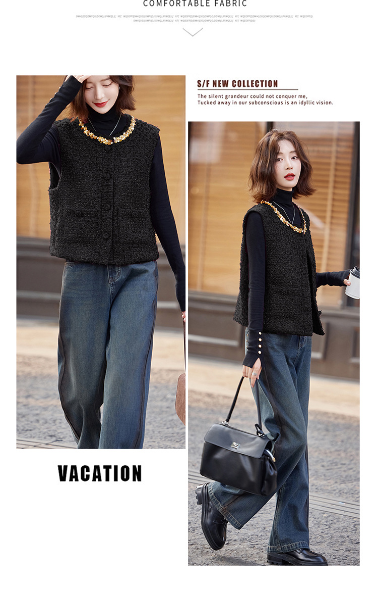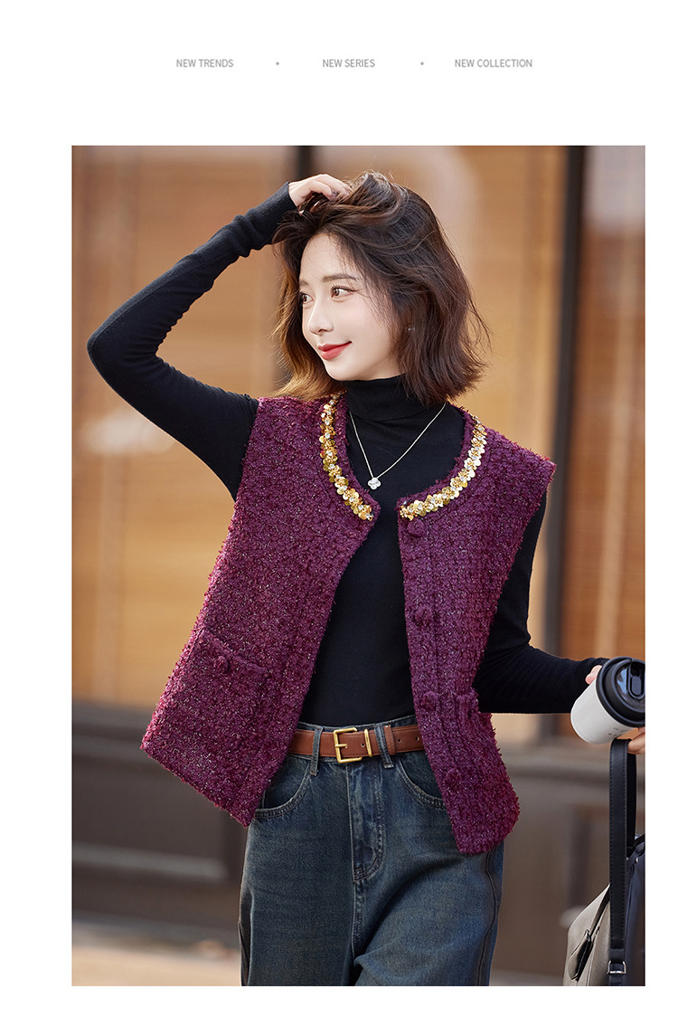 Áo thun không tay dáng áo gile, cổ tròn dễ mặc. Chất vải được điểm thêm nhiều hạt kim tuyến lấp lánh tinh tế. Kiểu dáng đơn giản, dễ dàng kết hợp với nhiều loại trang phục khác nhau. Bạn có thể mặc bên trong áo sơ mi dài tay hoặc mặc một mình khi thời tiết ấm áp. Phù hợp cho những dịp đi chơi, gặp gỡ bạn bè hàng ngày. | Tên sản phẩm: Áo Sơ Mi Nữ Hàng Mùa Xuân Thu Đông - Thời Trang Nữ | Mã sản phẩm: B7268 - Giá: 1.240.000đ | Mã nhà sản xuất: HADG-G04Hình ảnh sản phẩm