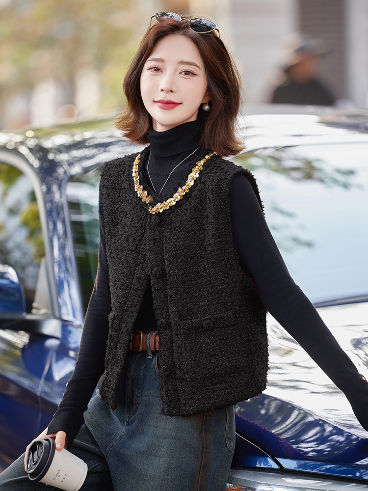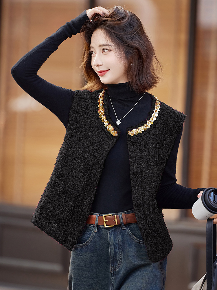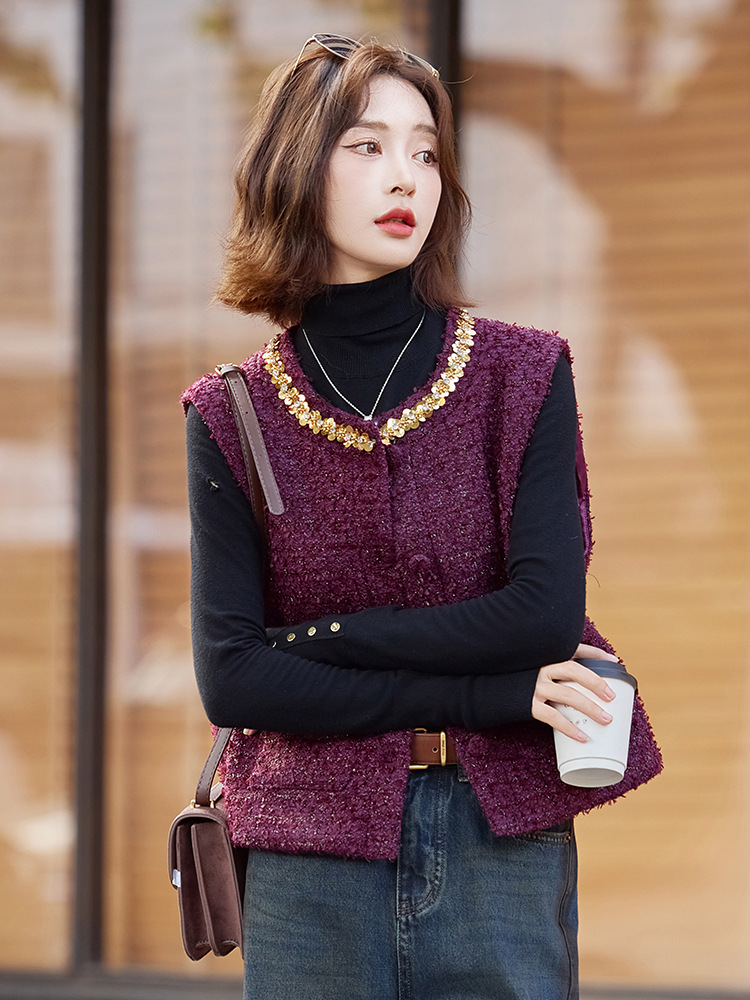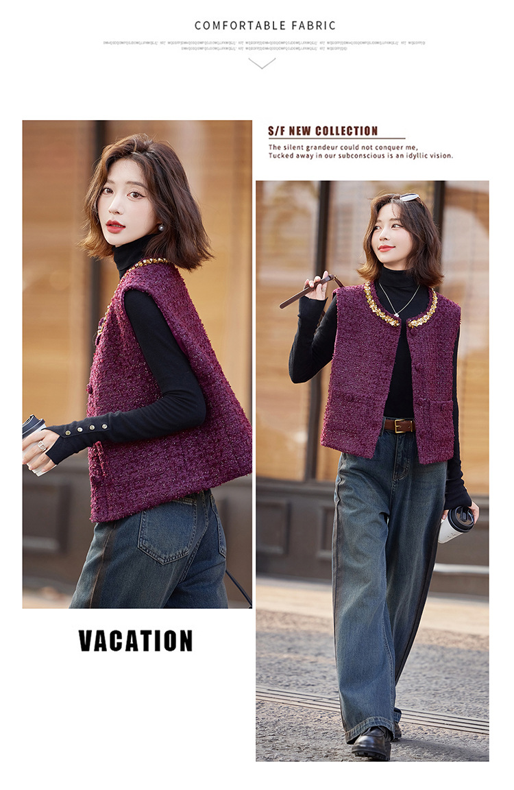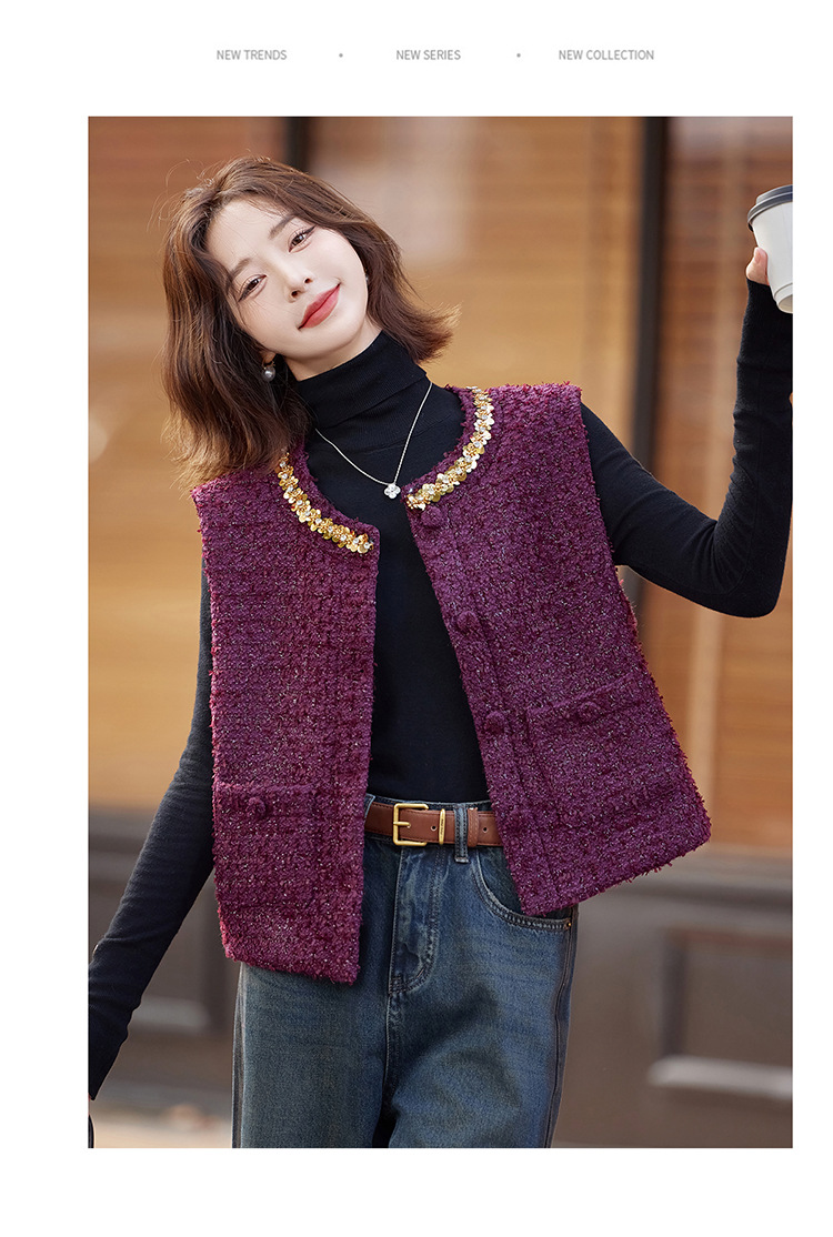Áo thun không tay dáng áo gile, cổ tròn dễ mặc. Chất vải được điểm thêm nhiều hạt kim tuyến lấp lánh tinh tế. Kiểu dáng đơn giản, dễ dàng kết hợp với nhiều loại trang phục khác nhau. Bạn có thể mặc bên trong áo sơ mi dài tay hoặc mặc một mình khi thời tiết ấm áp. Phù hợp cho những dịp đi chơi, gặp gỡ bạn bè hàng ngày. | Tên sản phẩm: Áo Sơ Mi Nữ Hàng Mùa Xuân Thu Đông - Thời Trang Nữ | Mã sản phẩm: B7268 - Giá: 1.240.000đ | Mã nhà sản xuất: HADG-G04Hình ảnh sản phẩm
